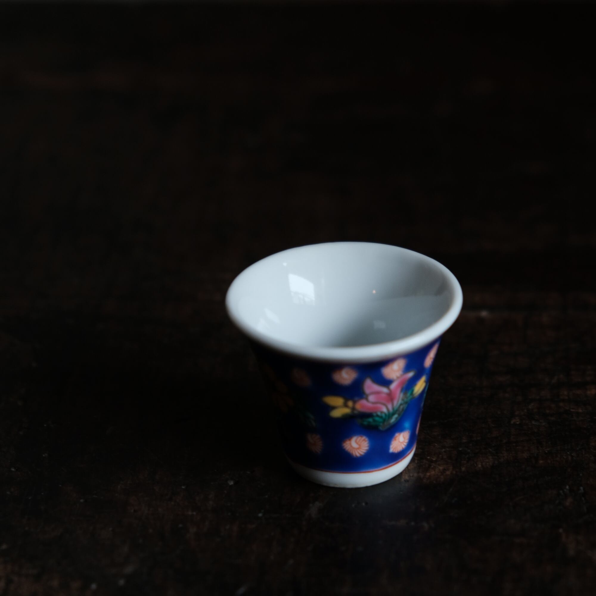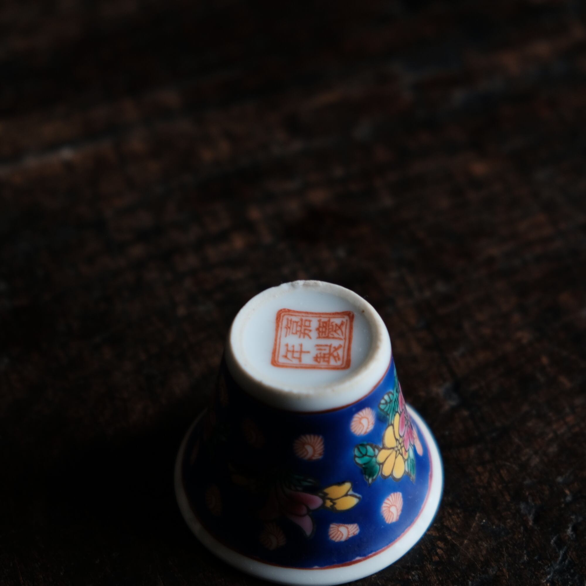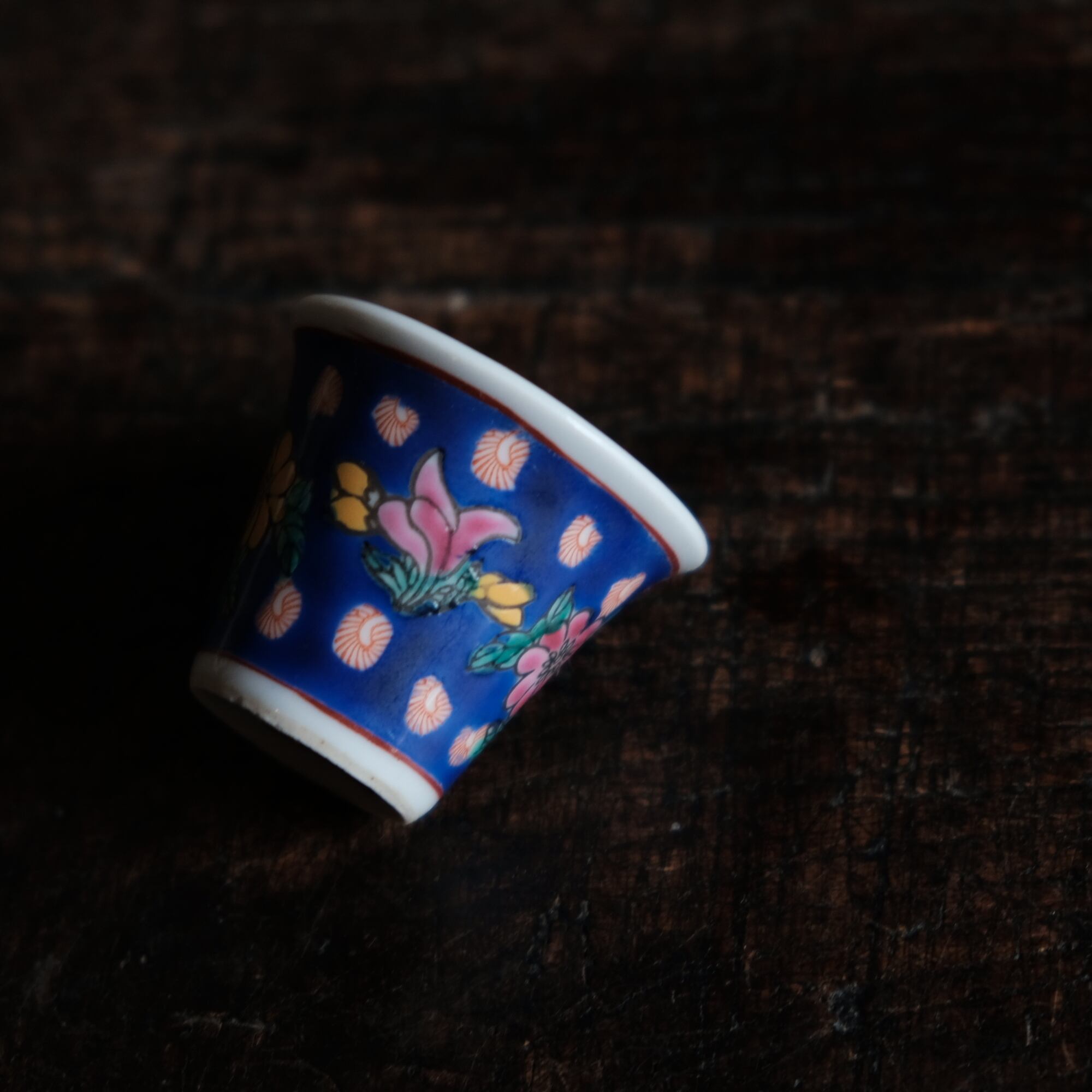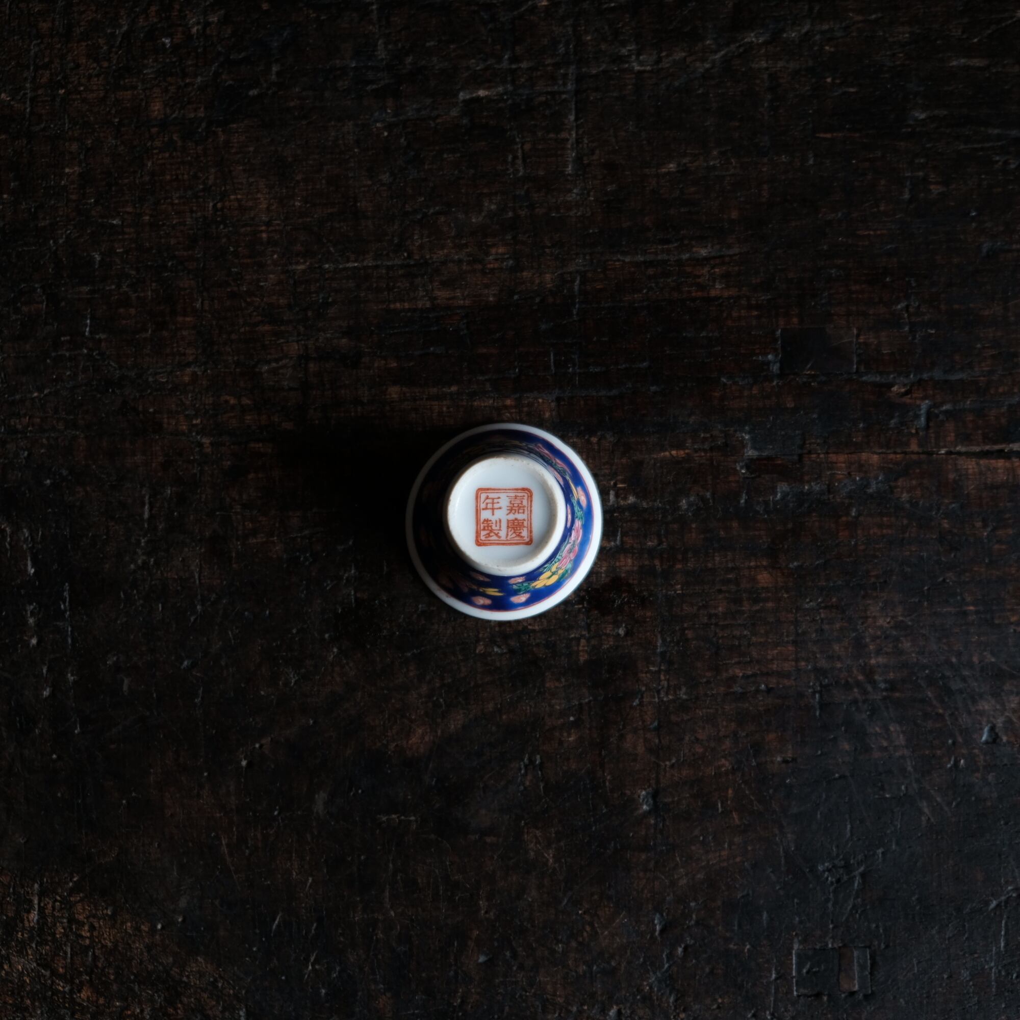 嘉慶年製◆花の文様。中国景徳鎮 色絵小ぶり猪口 茶杯 茶器 チャイナレトロ オブジェ