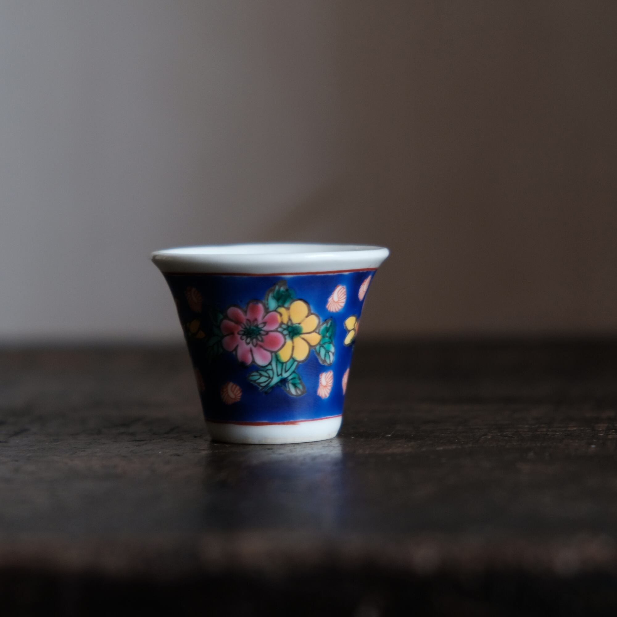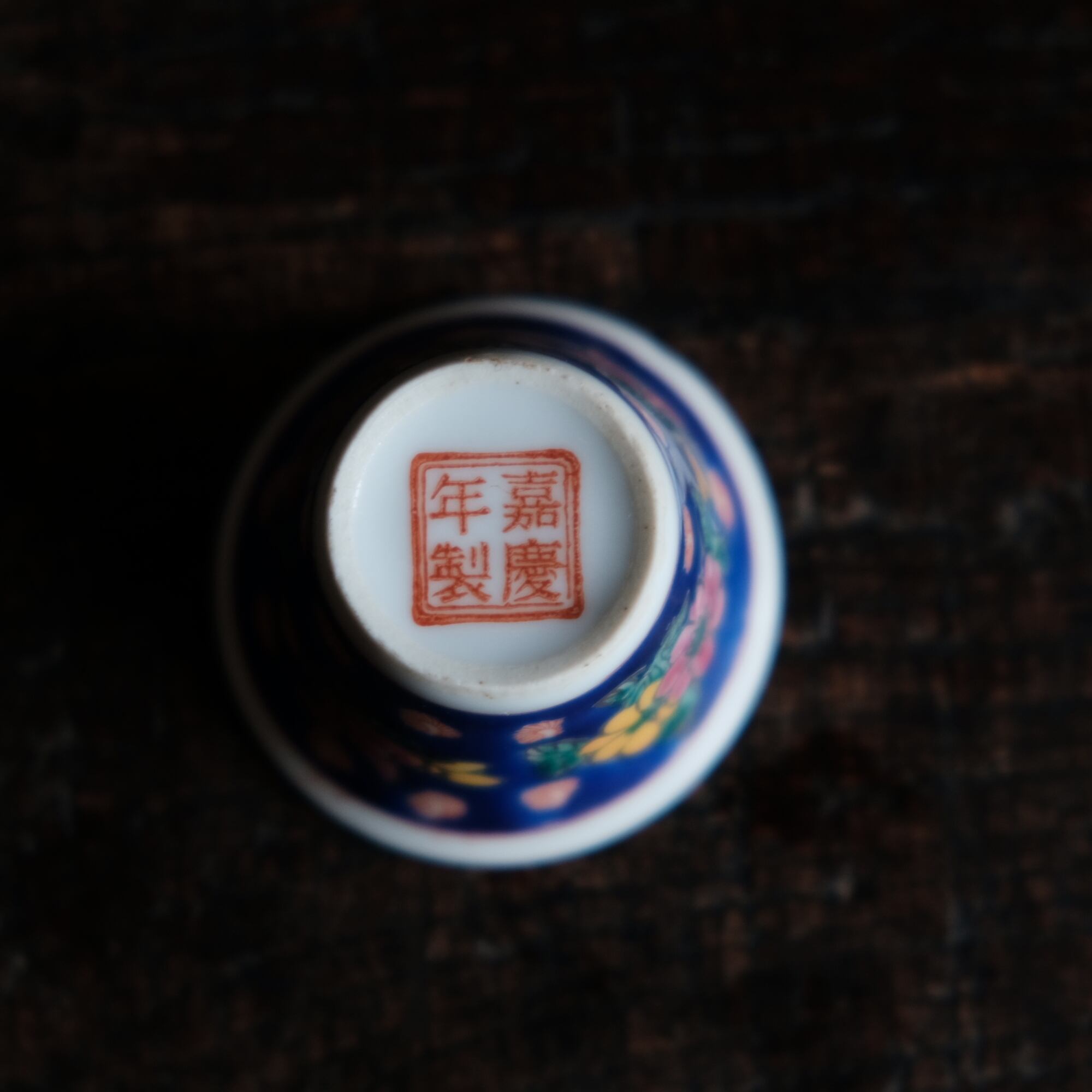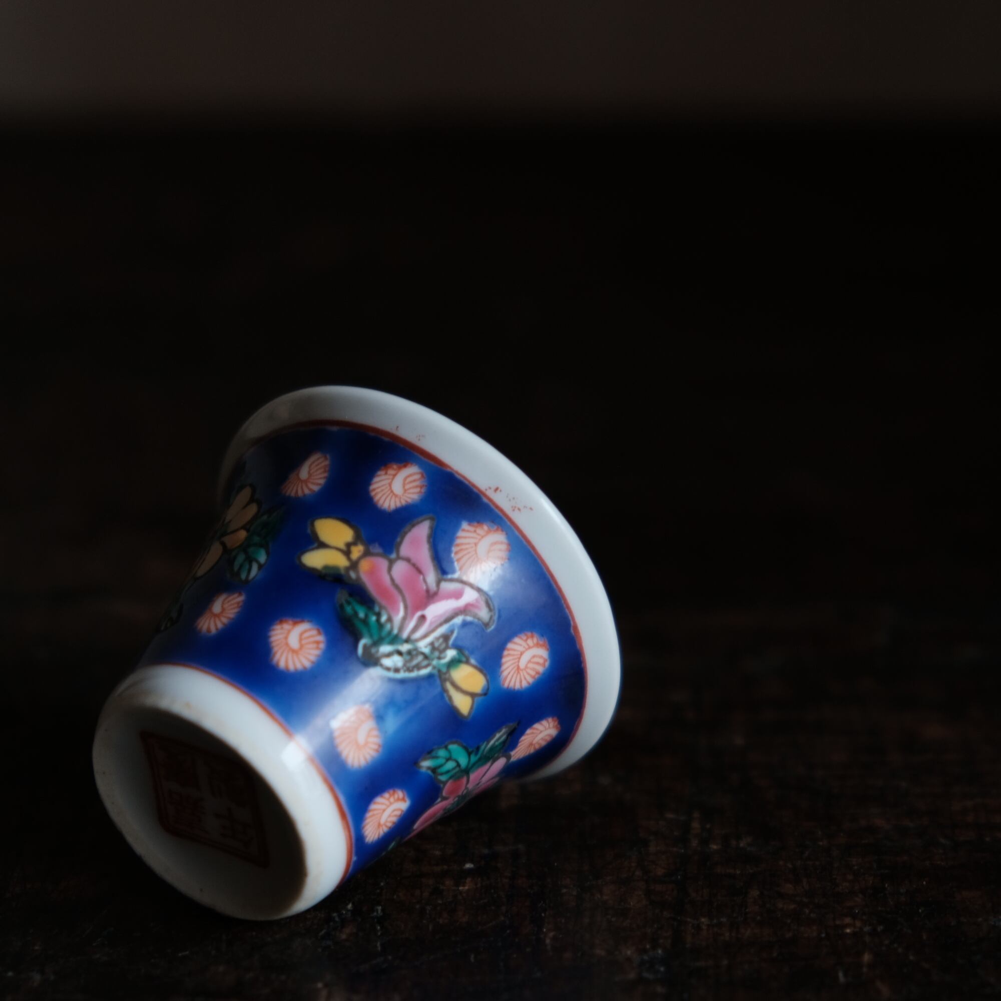 嘉慶年製◆花の文様。中国景徳鎮 色絵小ぶり猪口 茶杯 茶器 チャイナレトロ オブジェ