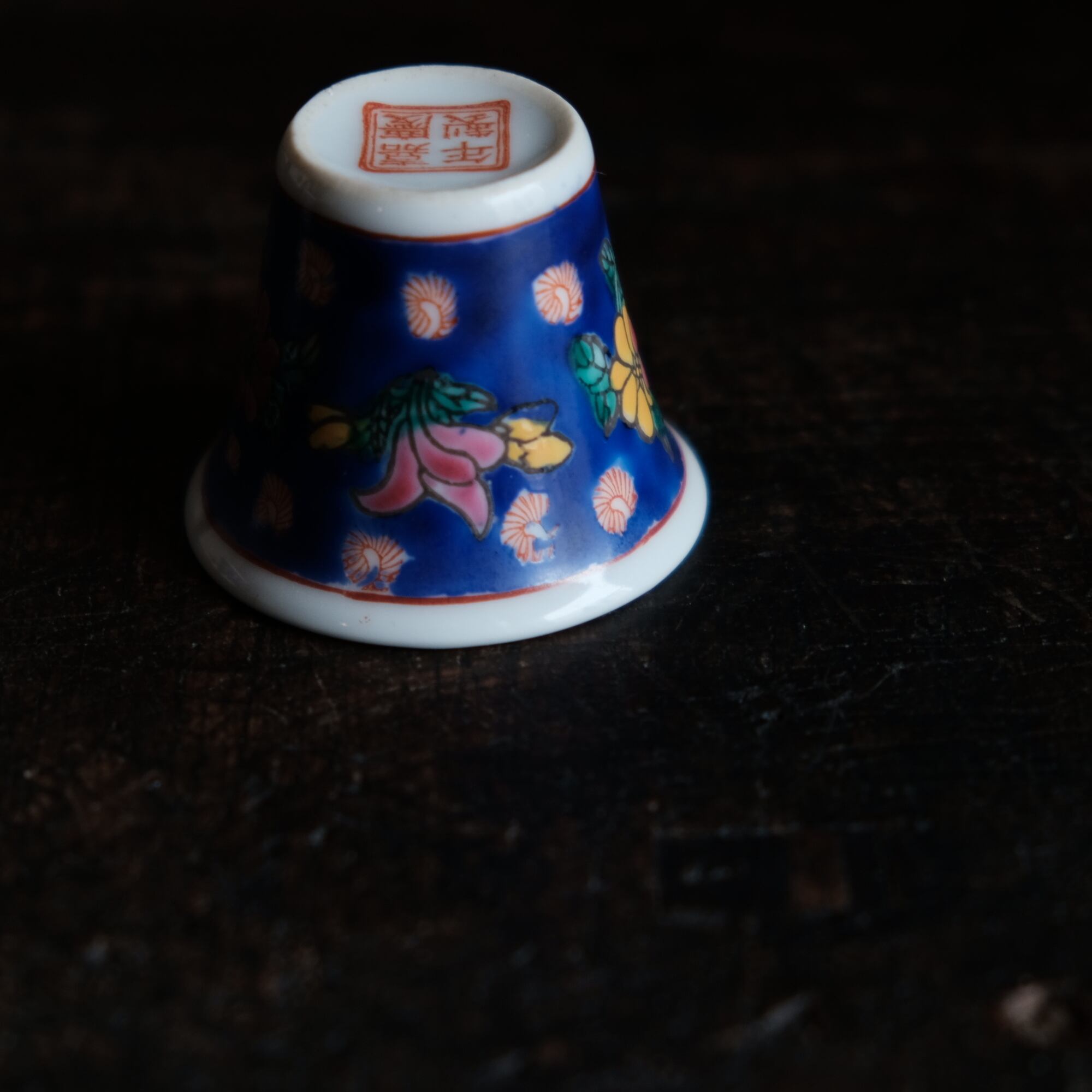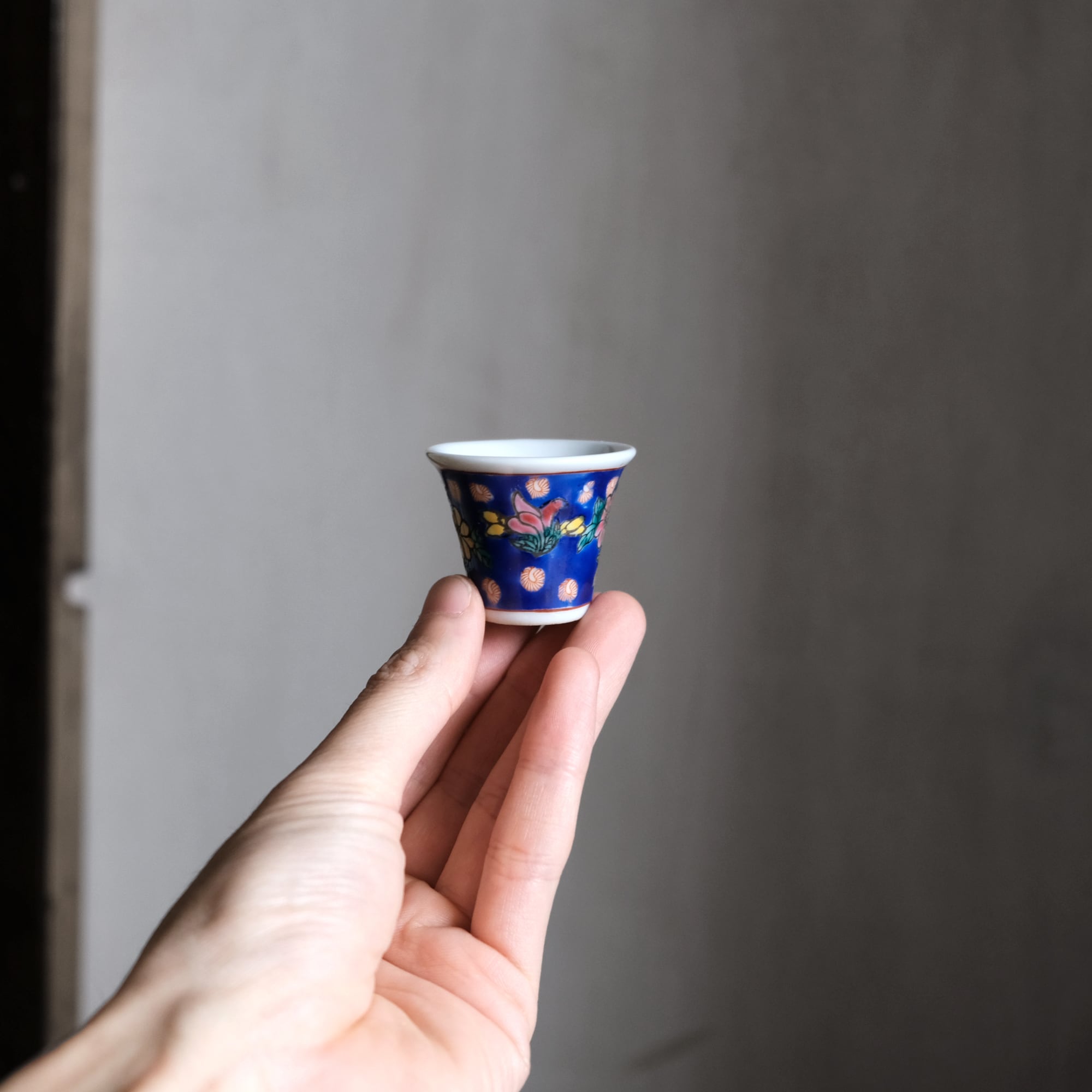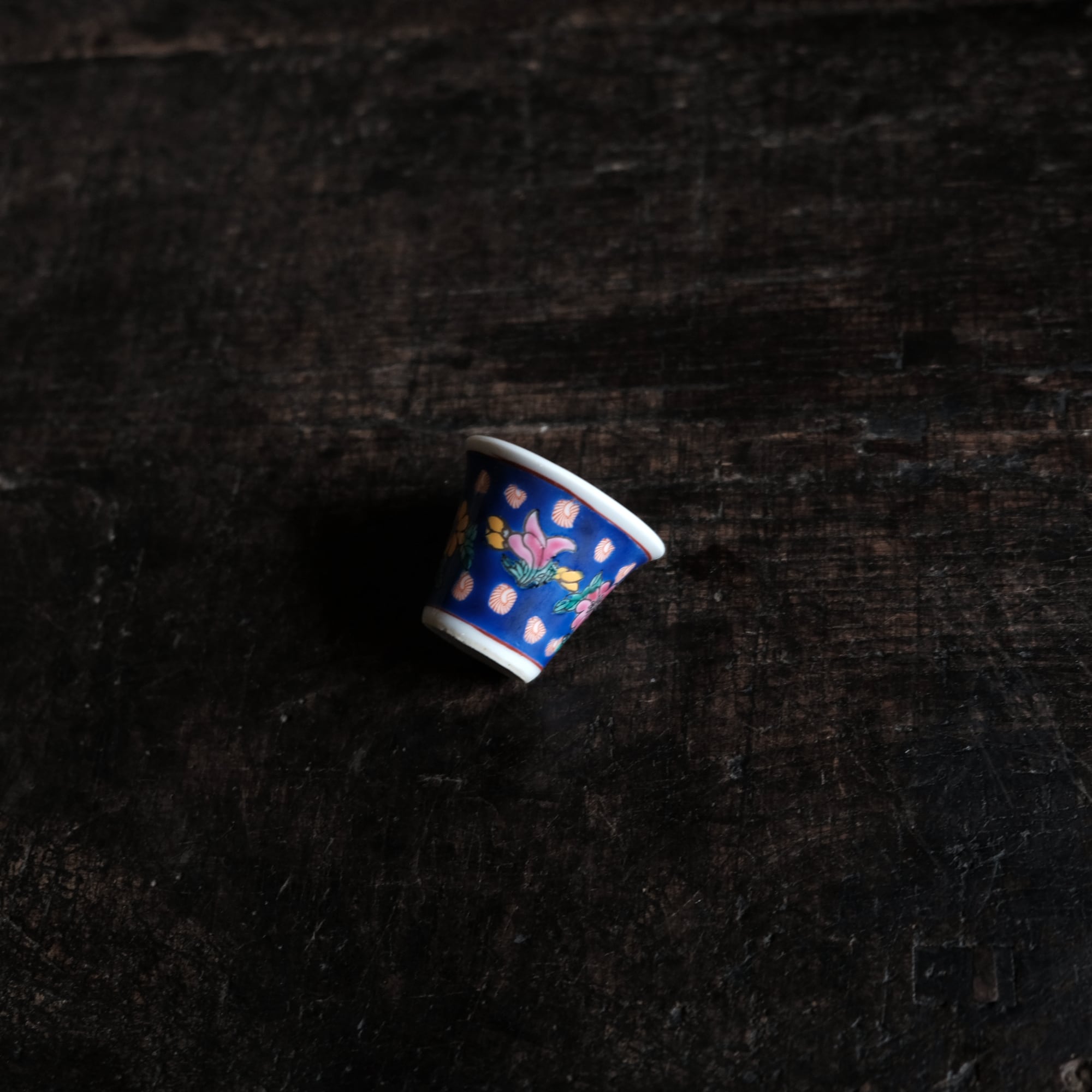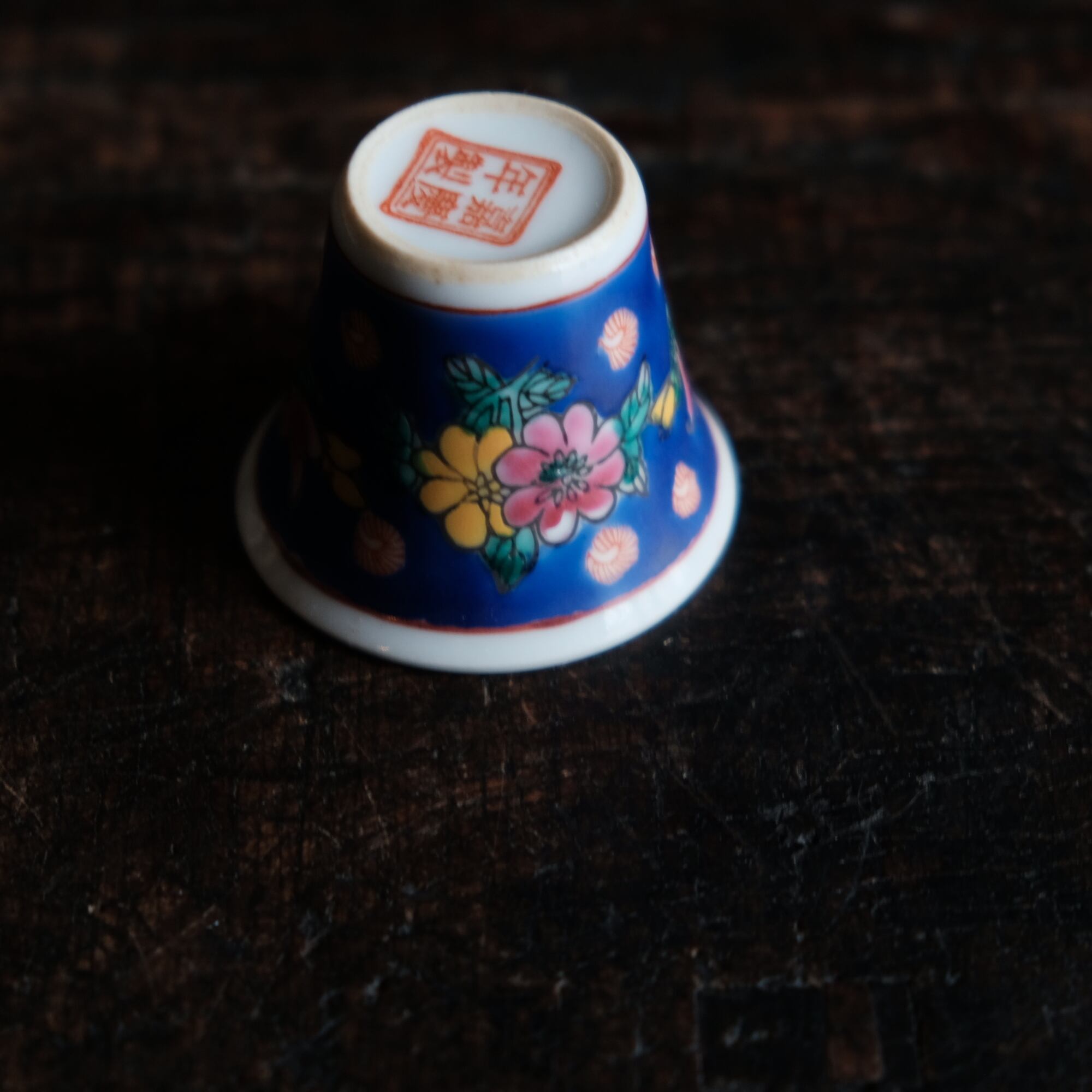 嘉慶年製◆花の文様。中国景徳鎮 色絵小ぶり猪口 茶杯 茶器 チャイナレトロ オブジェ