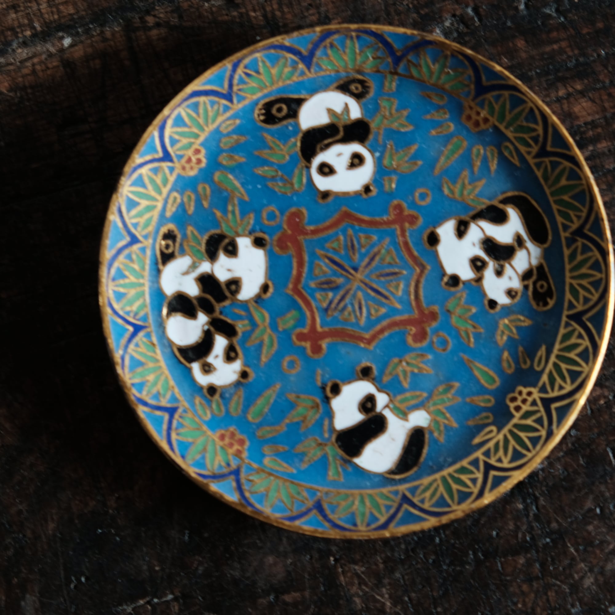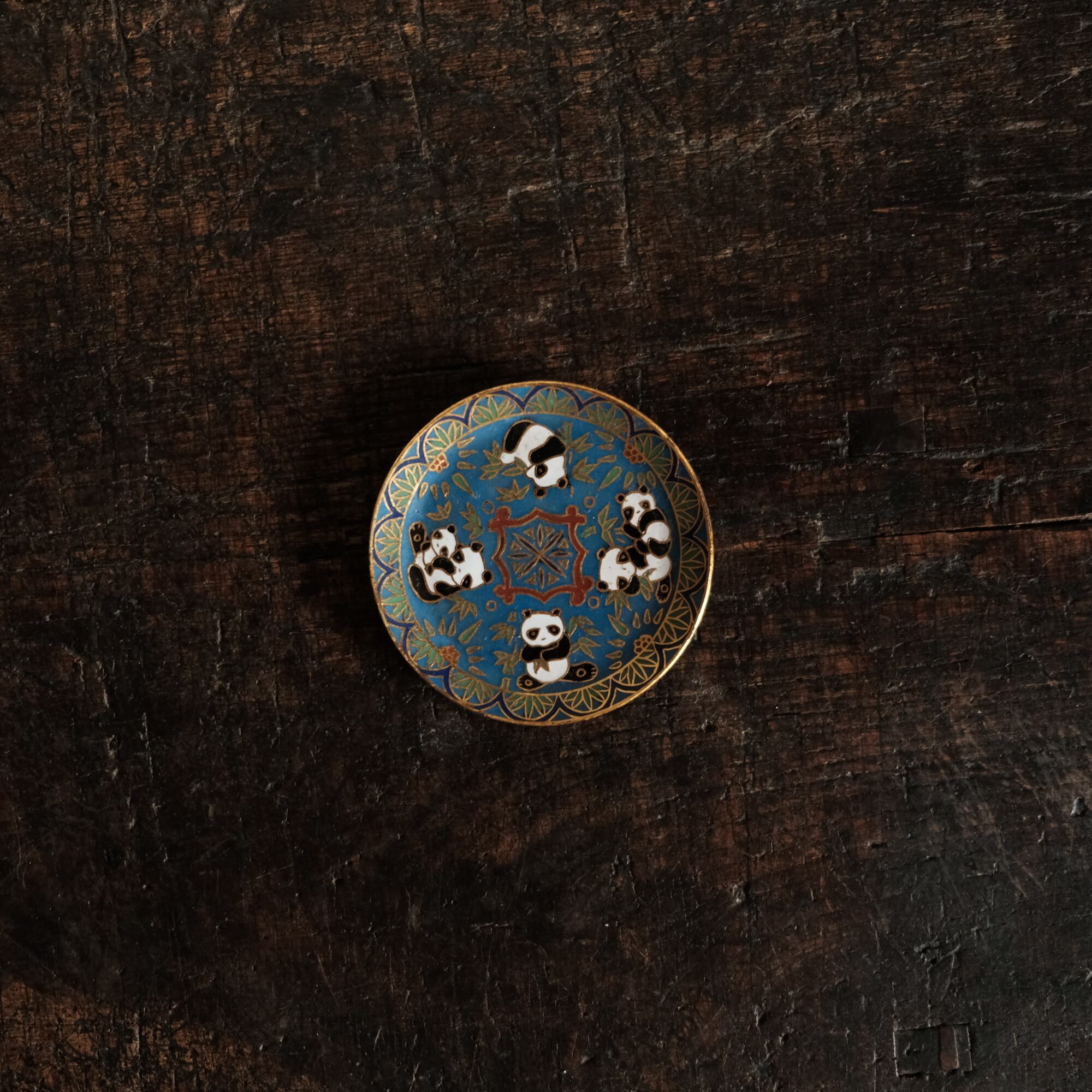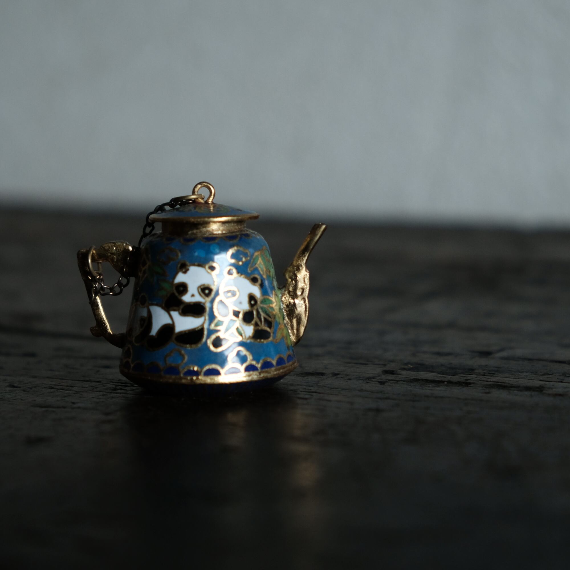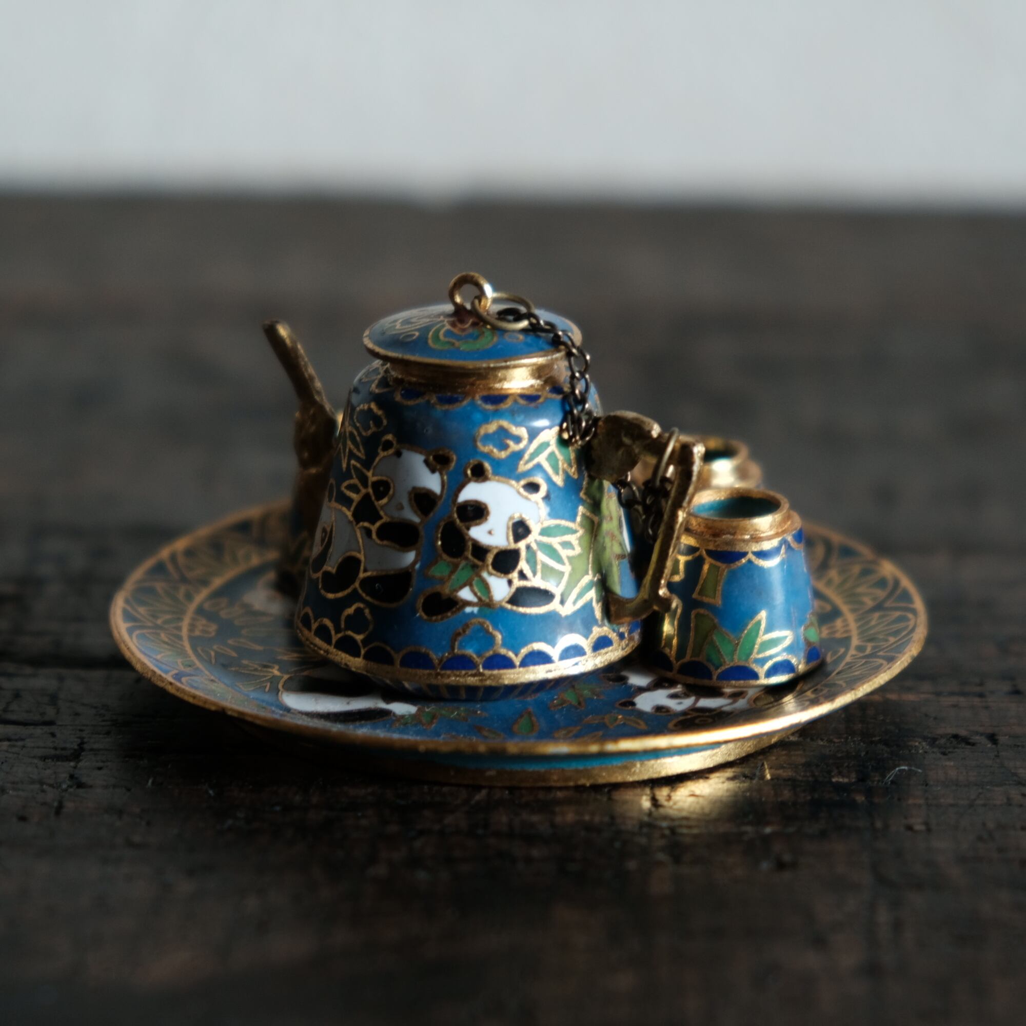 パンダが可愛い◆中国産 七宝焼ミニチュア茶器セット 小ぶり チャイナレトロ インテリアオブジェ
