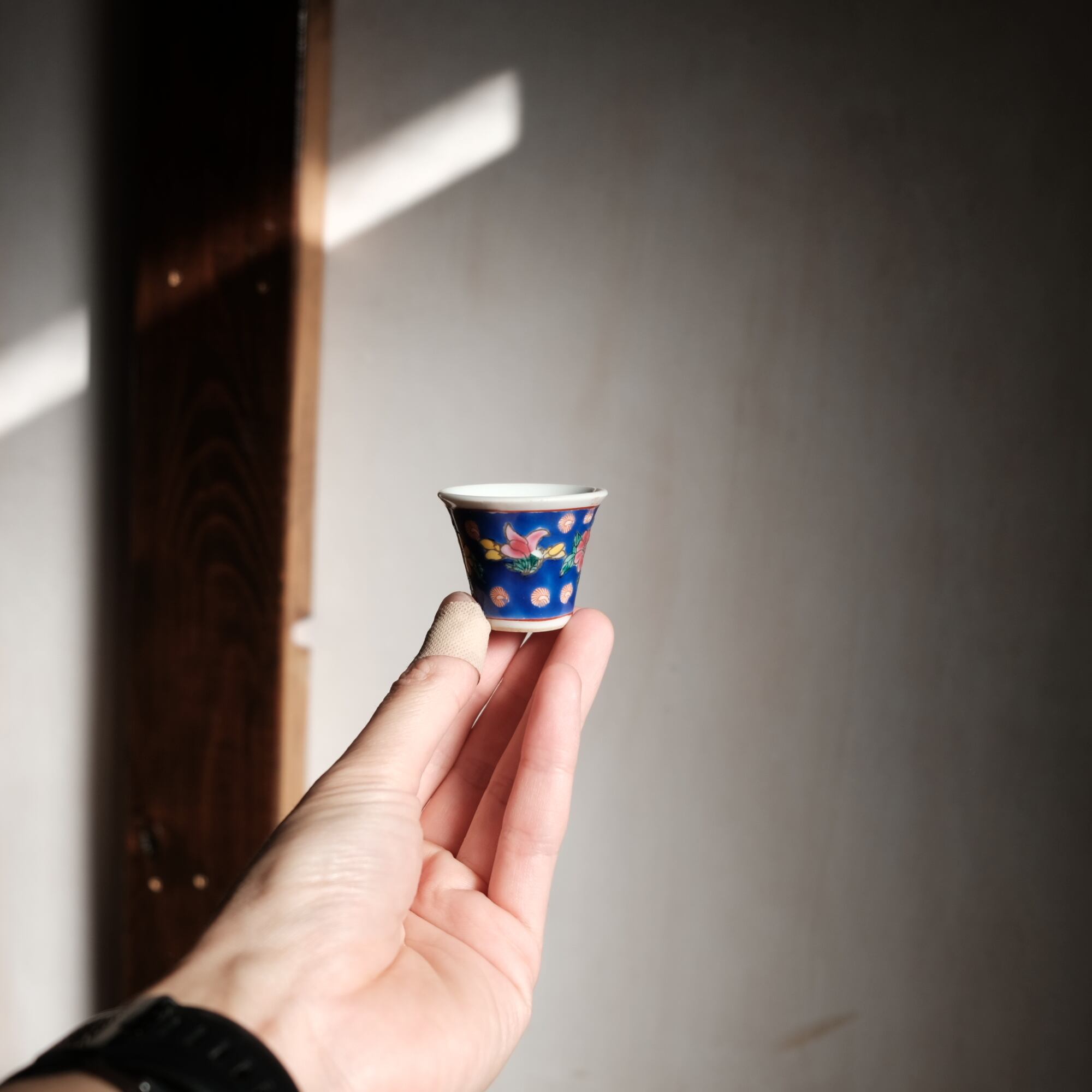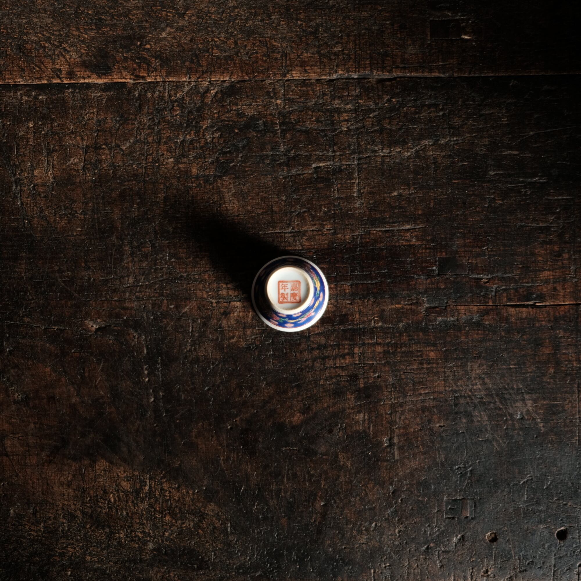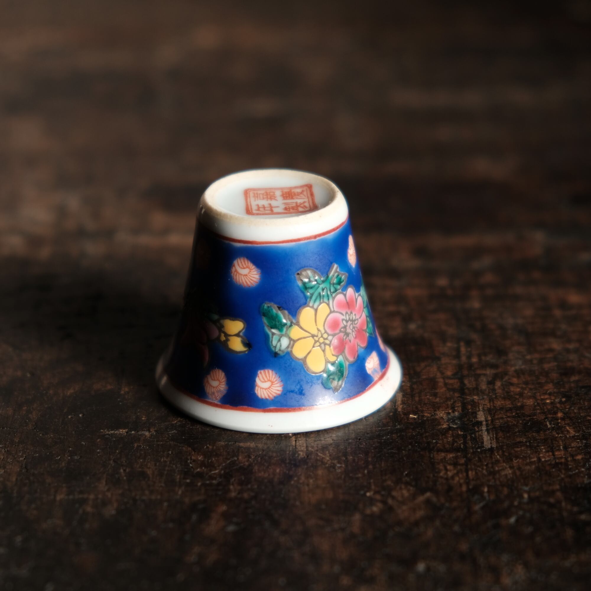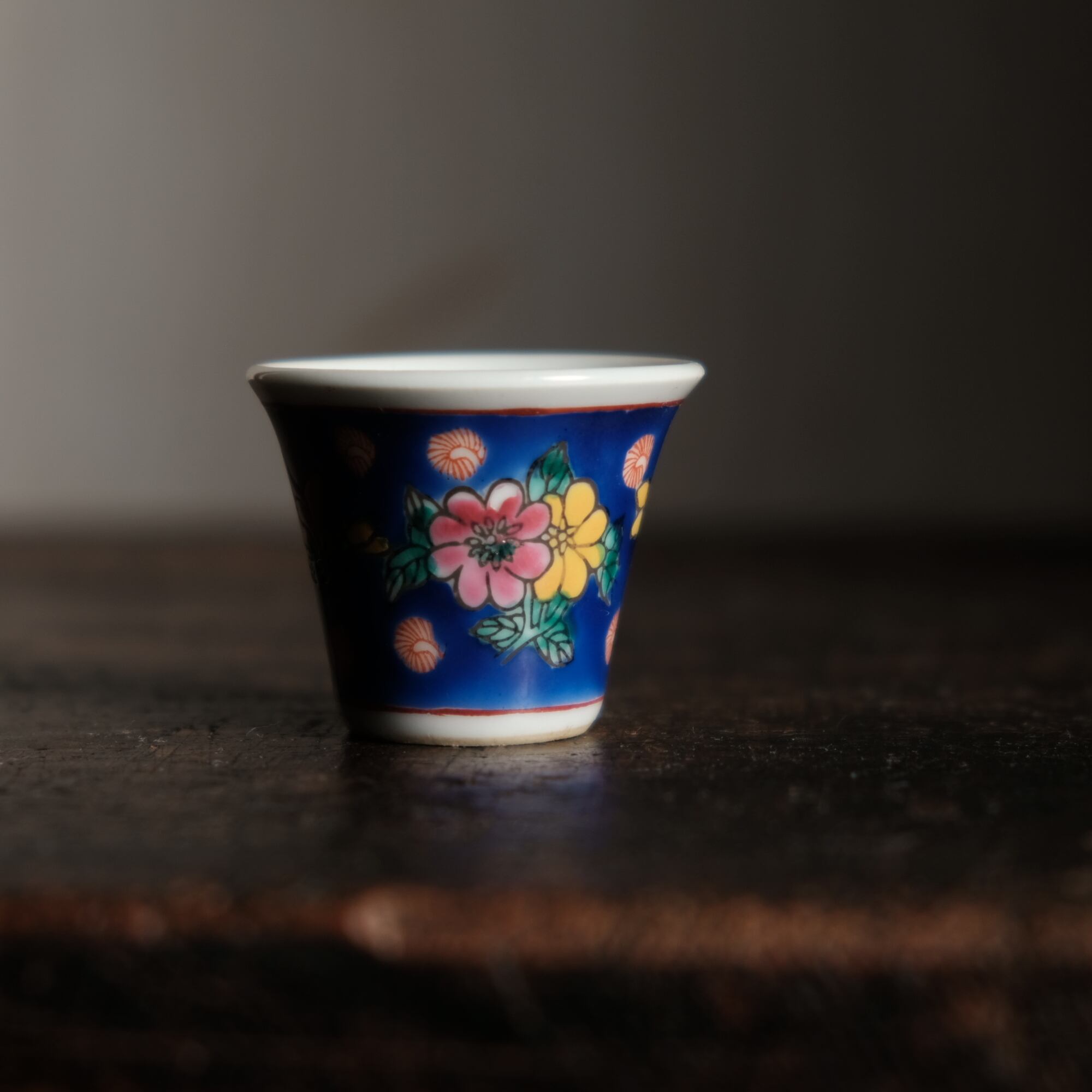嘉慶年製◆花の文様。中国景徳鎮 色絵小ぶり猪口 茶杯 茶器 チャイナレトロ オブジェ【剥がれ多め】