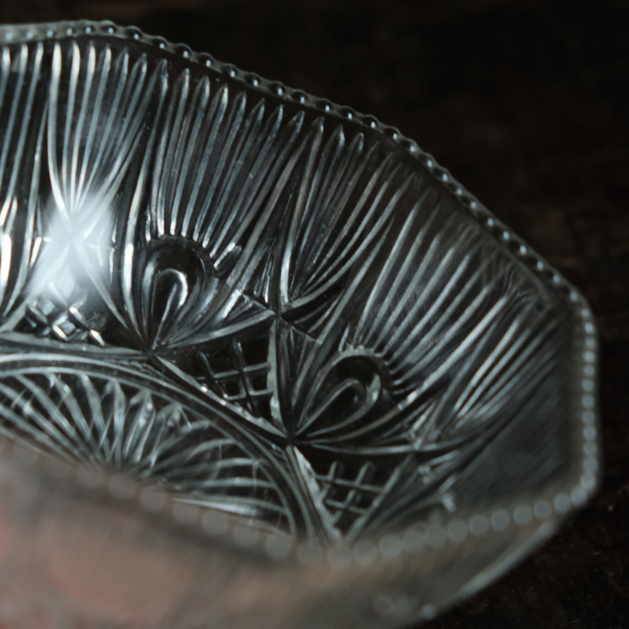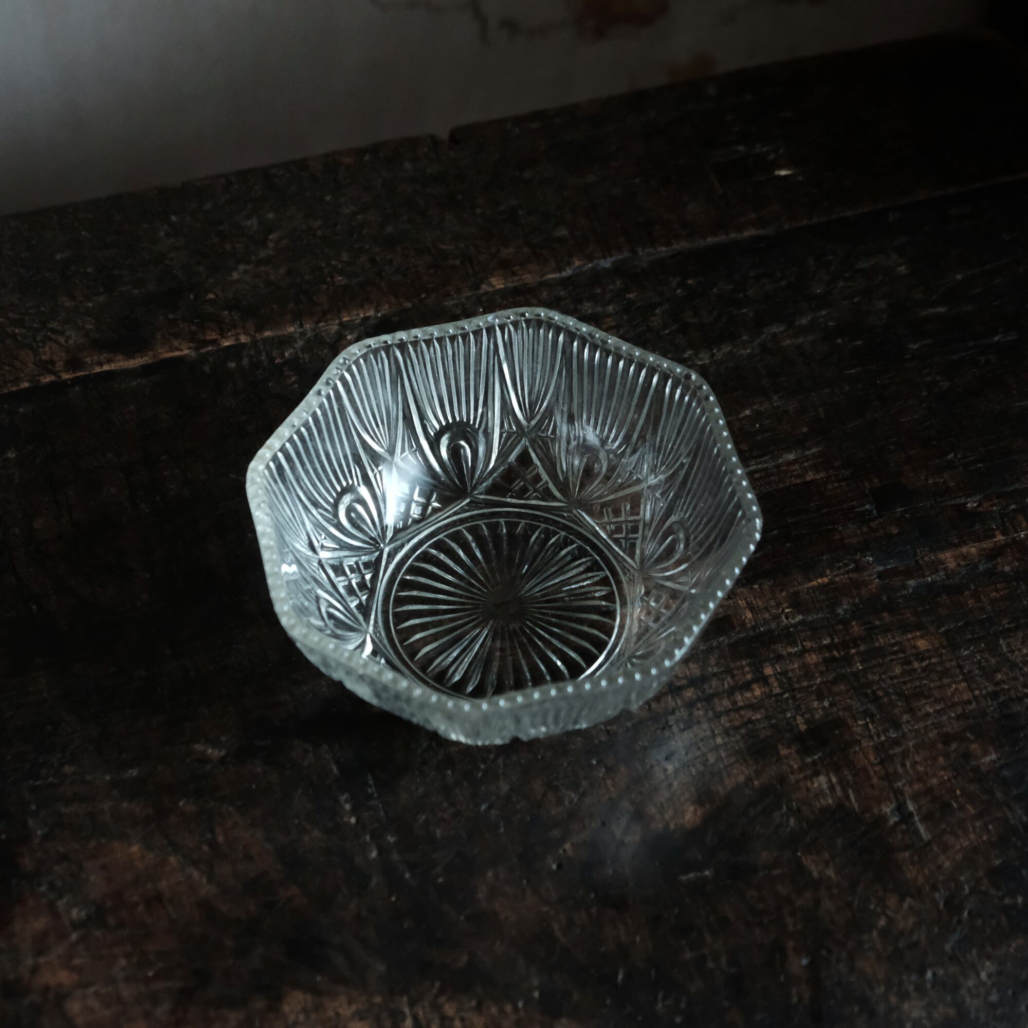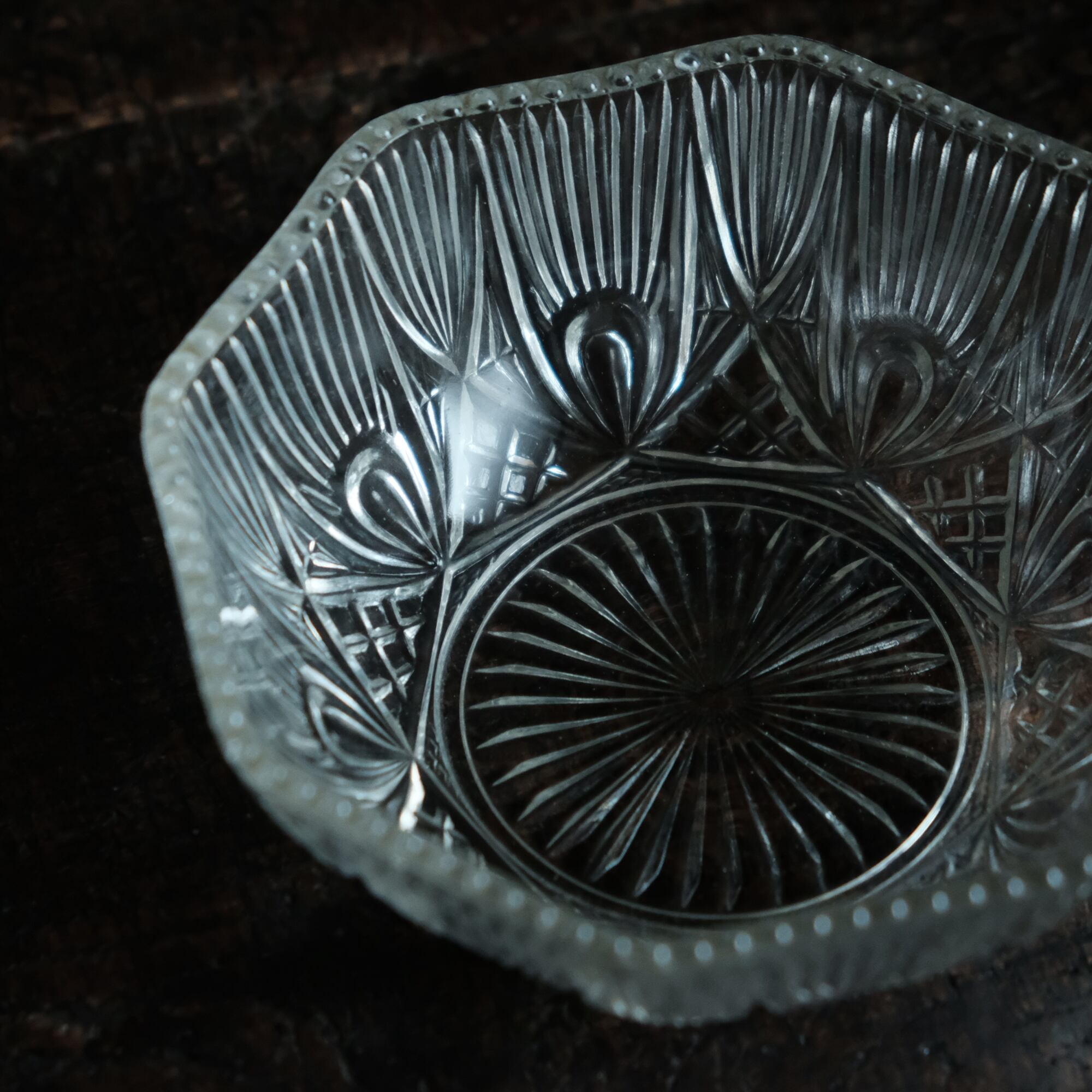 素敵な文様◆昭和初〜中期 プレスガラス粒縁小鉢 古民家 古道具 骨董/antiques 暮らしに。b1