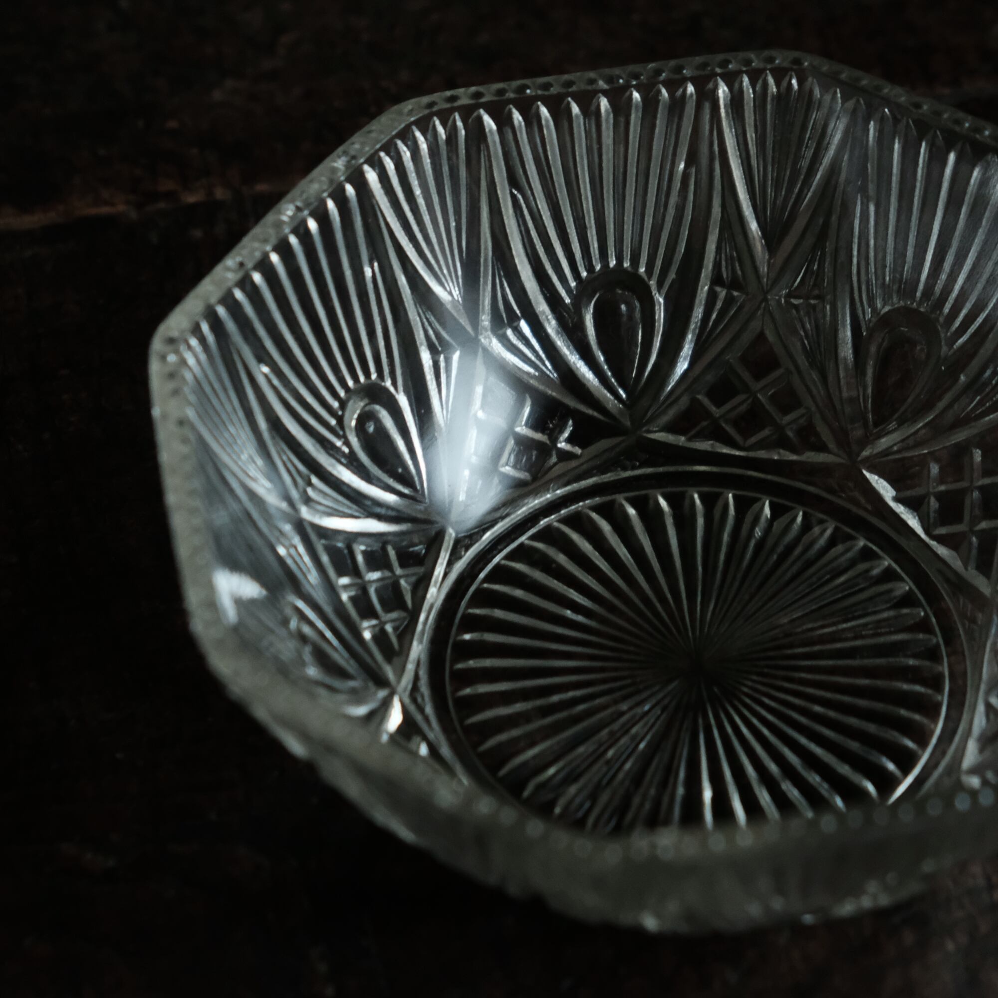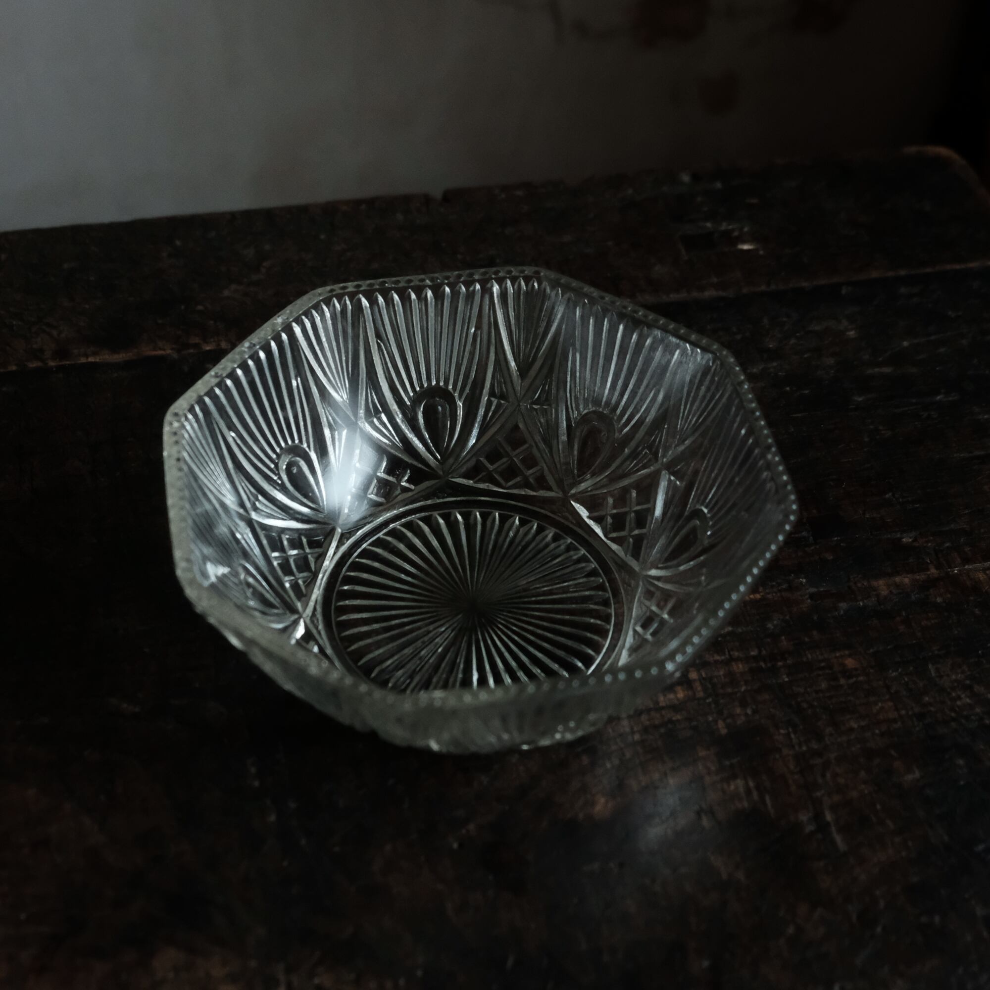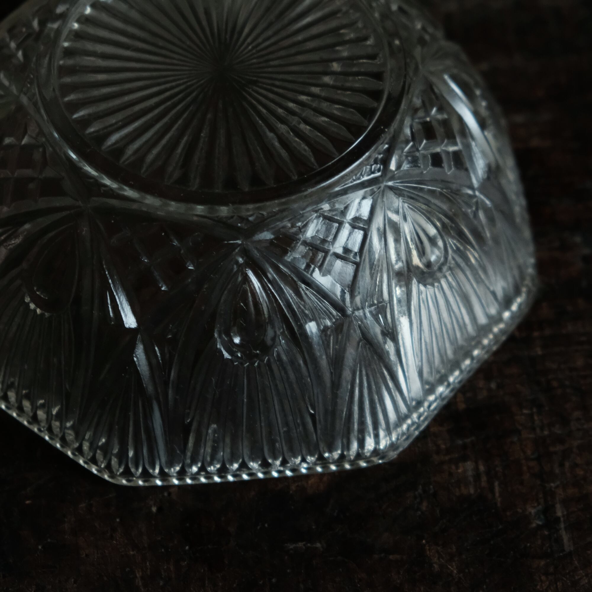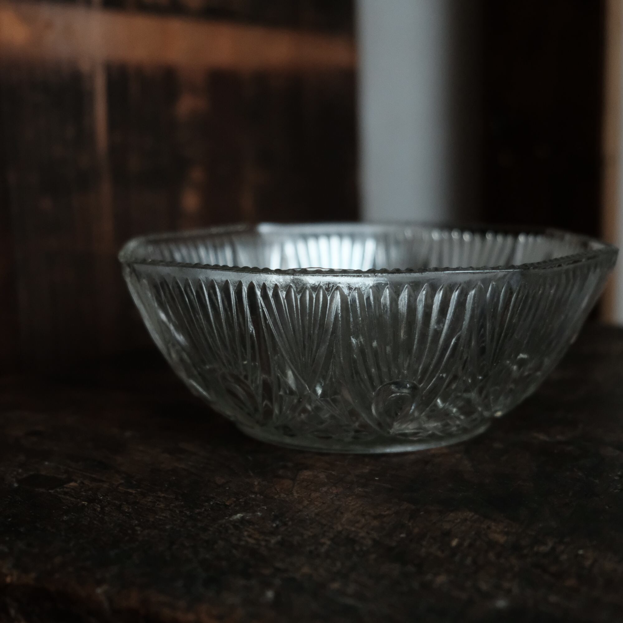 素敵な文様◆昭和初〜中期 プレスガラス粒縁小鉢 古民家 古道具 骨董/antiques 【縁にアタリ】b2
