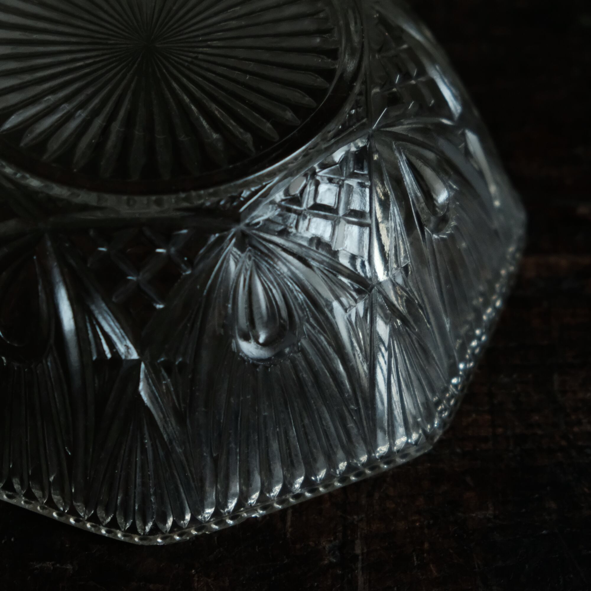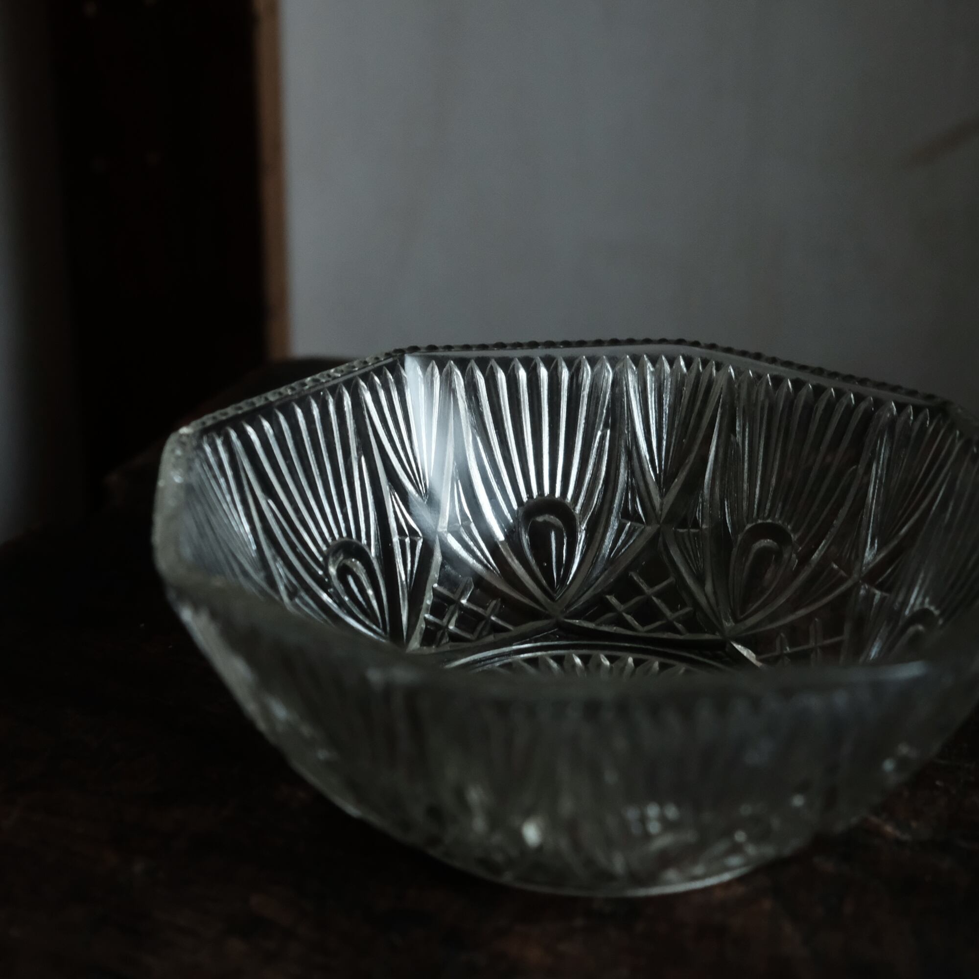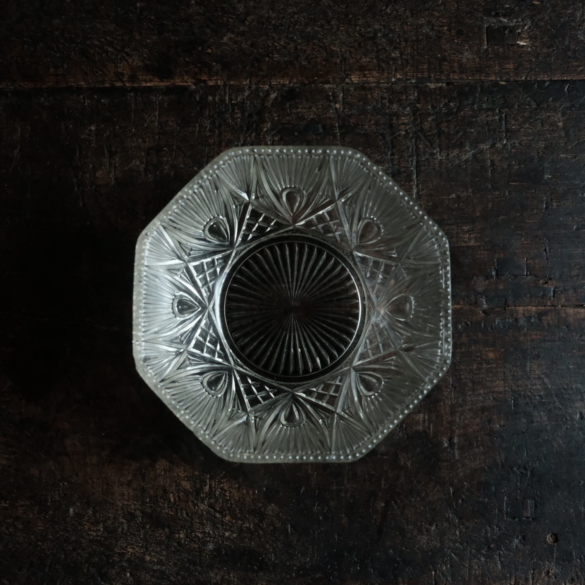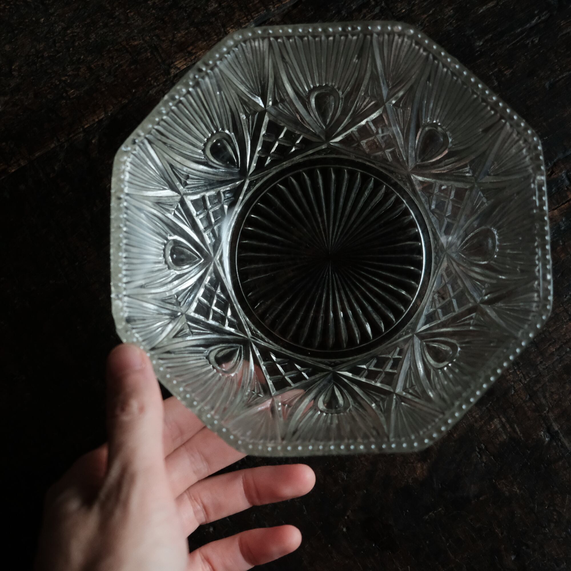 素敵な文様◆昭和初〜中期 プレスガラス粒縁小鉢 古民家 古道具 骨董/antiques 【縁にアタリ】b2