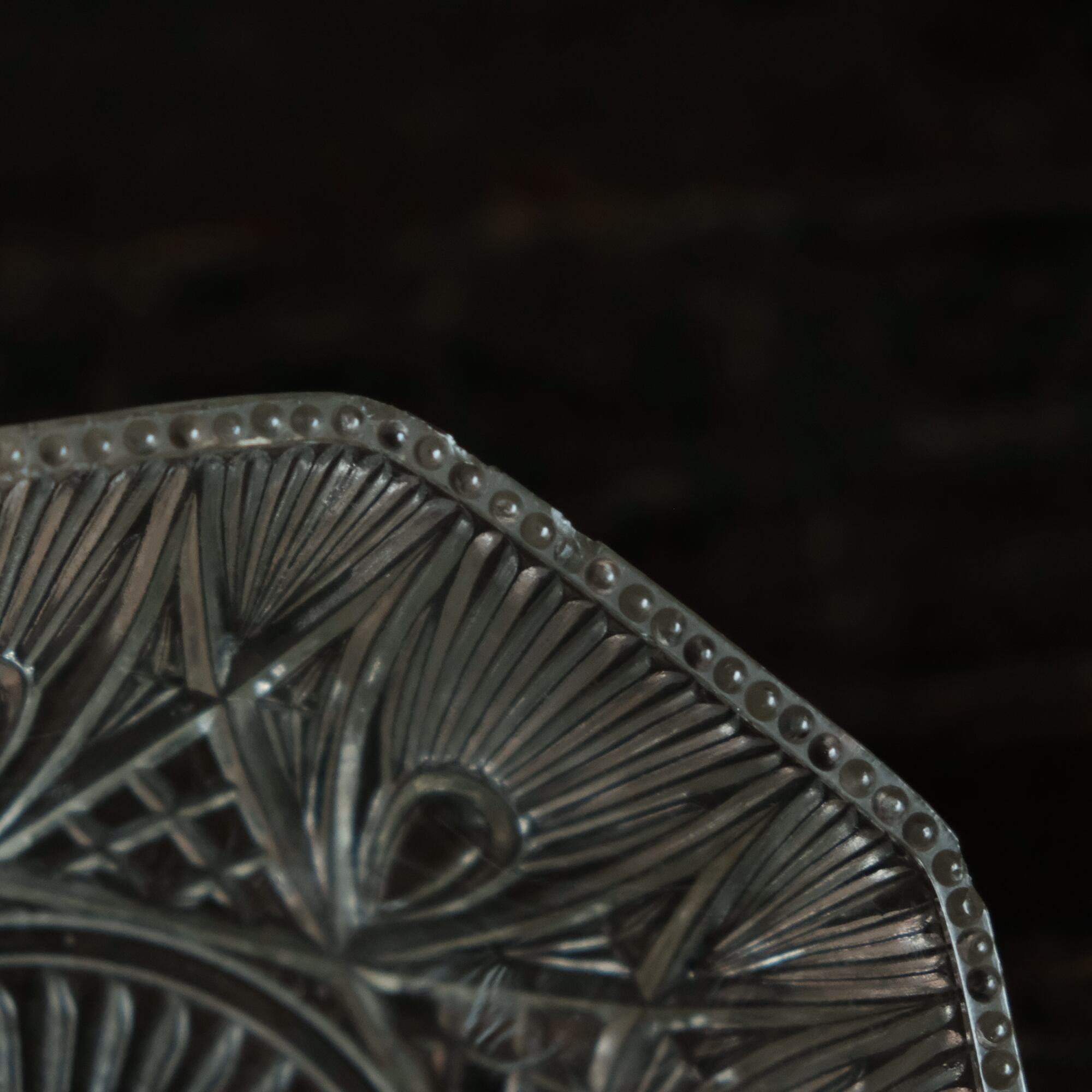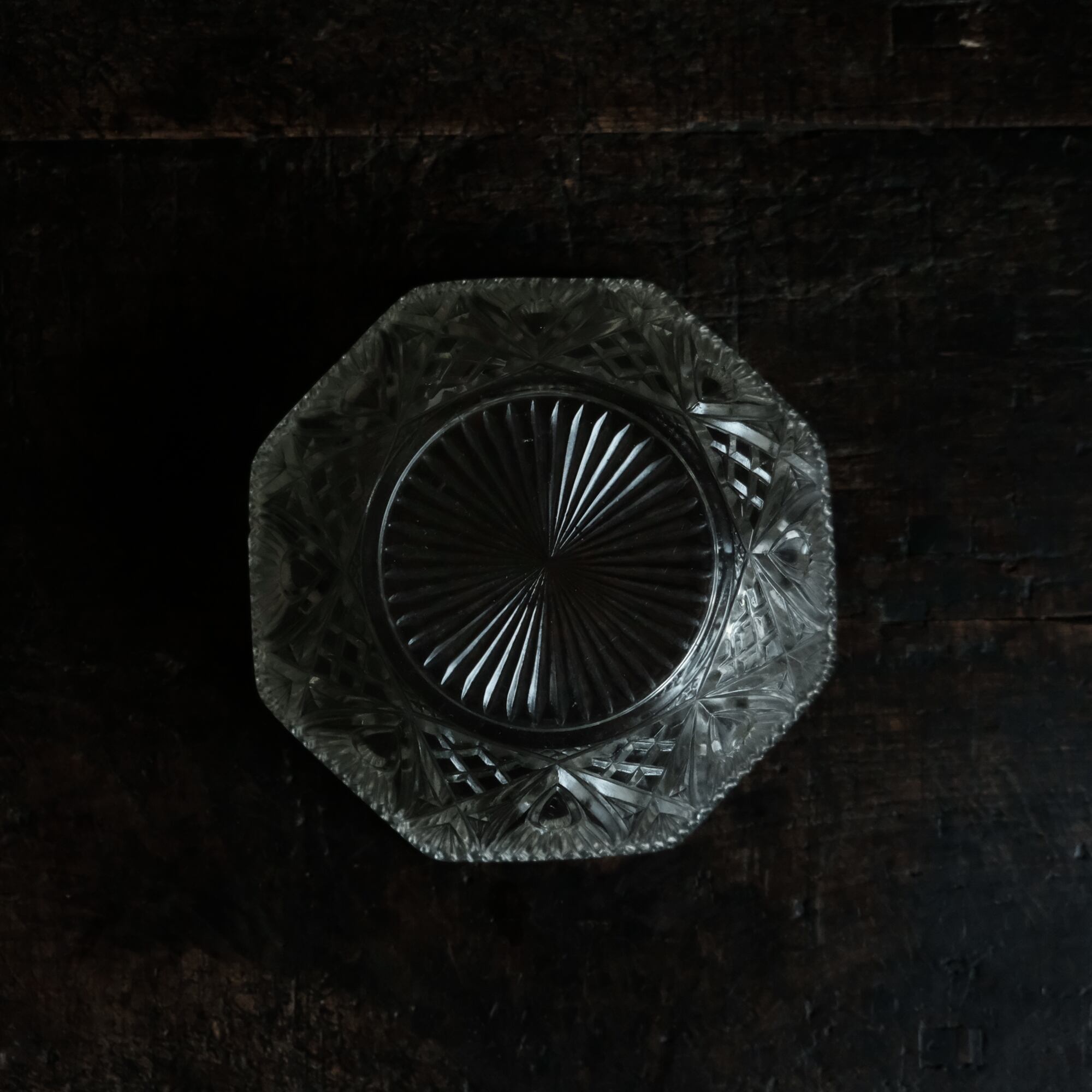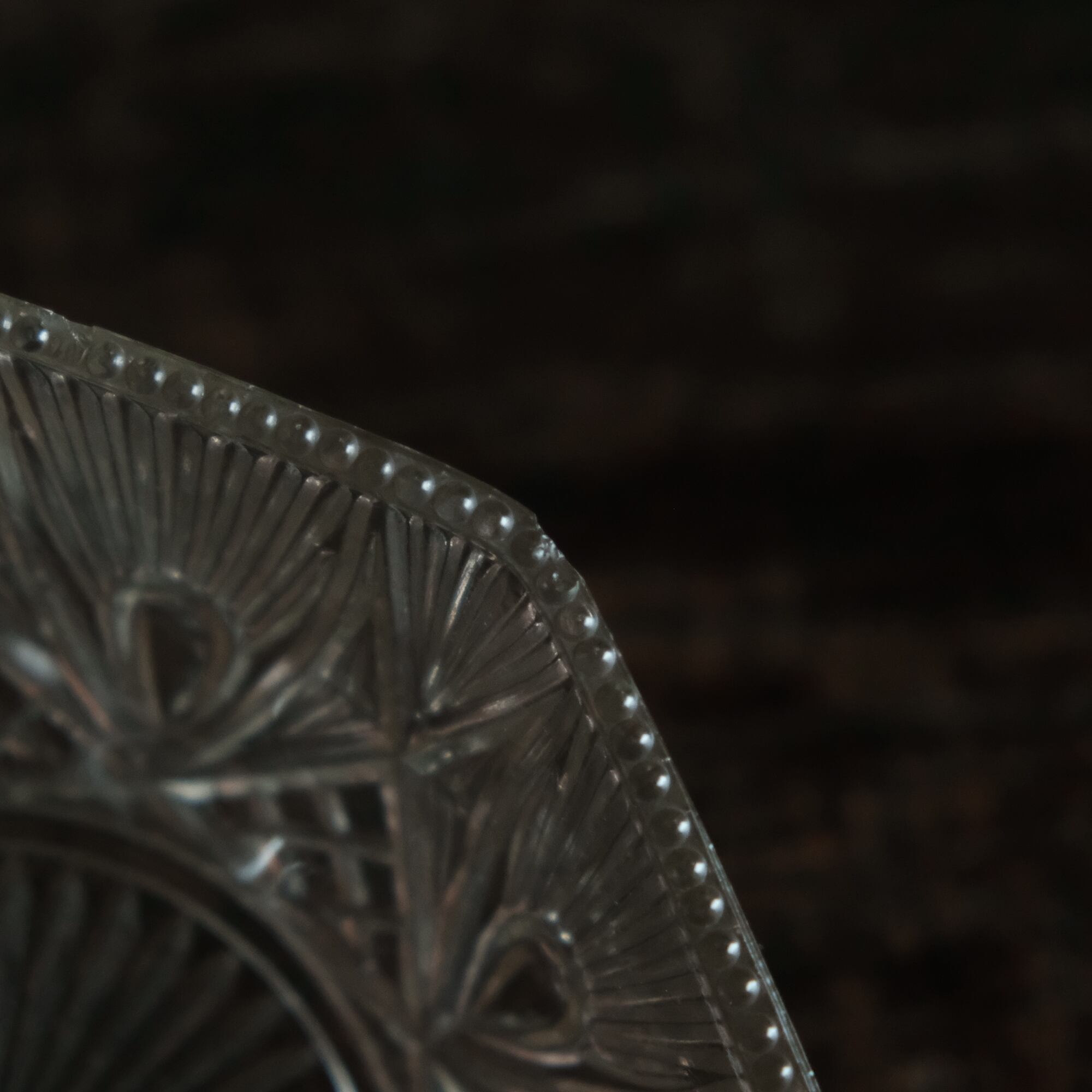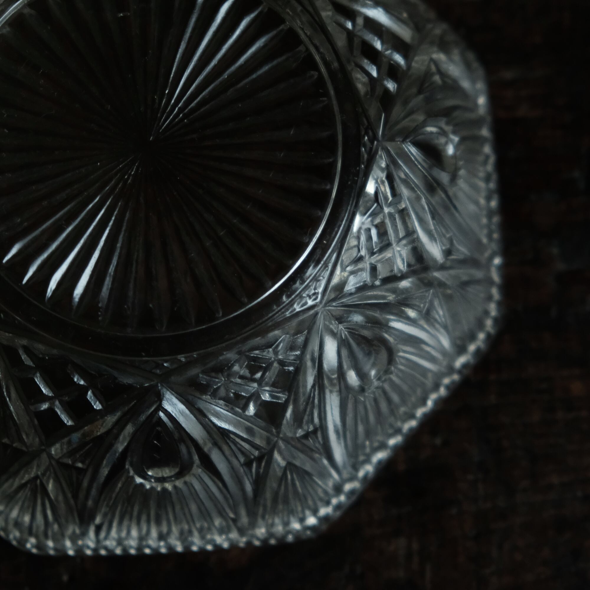 素敵な文様◆昭和初〜中期 プレスガラス粒縁小鉢 古民家 古道具 骨董/antiques 【縁にアタリ】b2