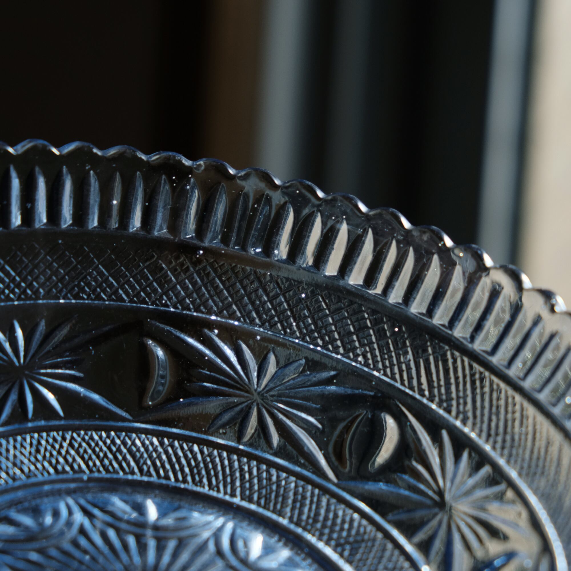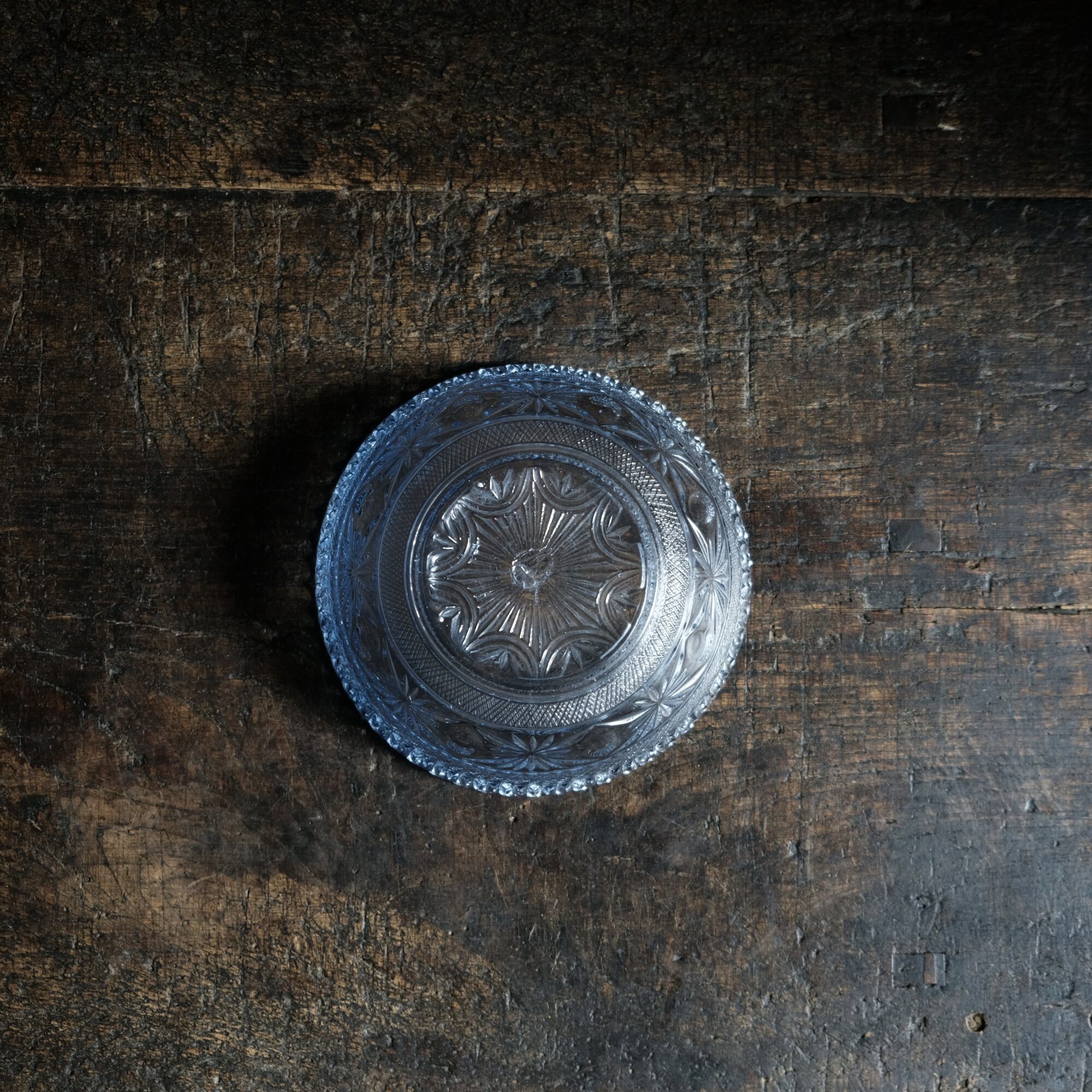 クッキリとしたプレスガラス特有の文様が素敵なガラス鉢になります。