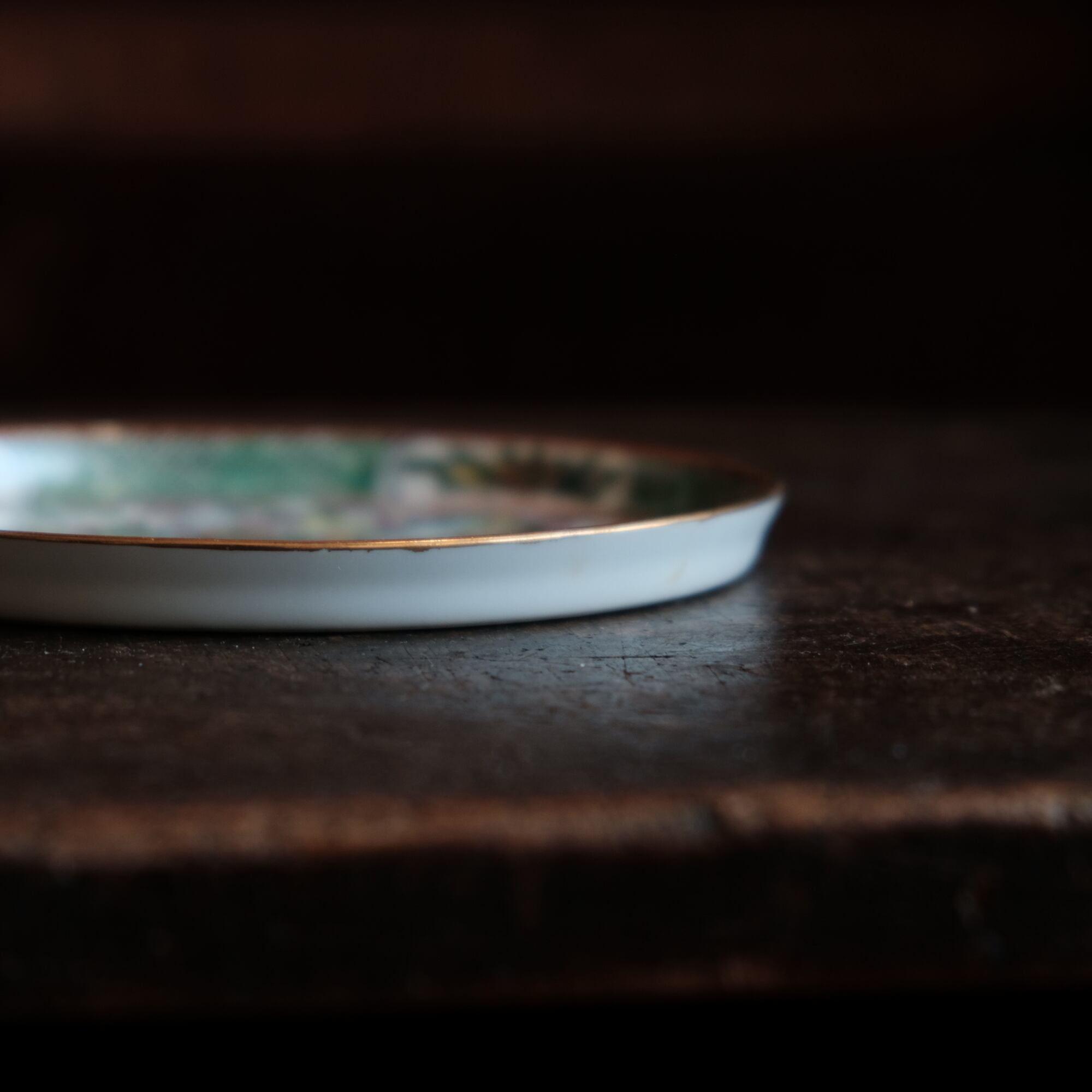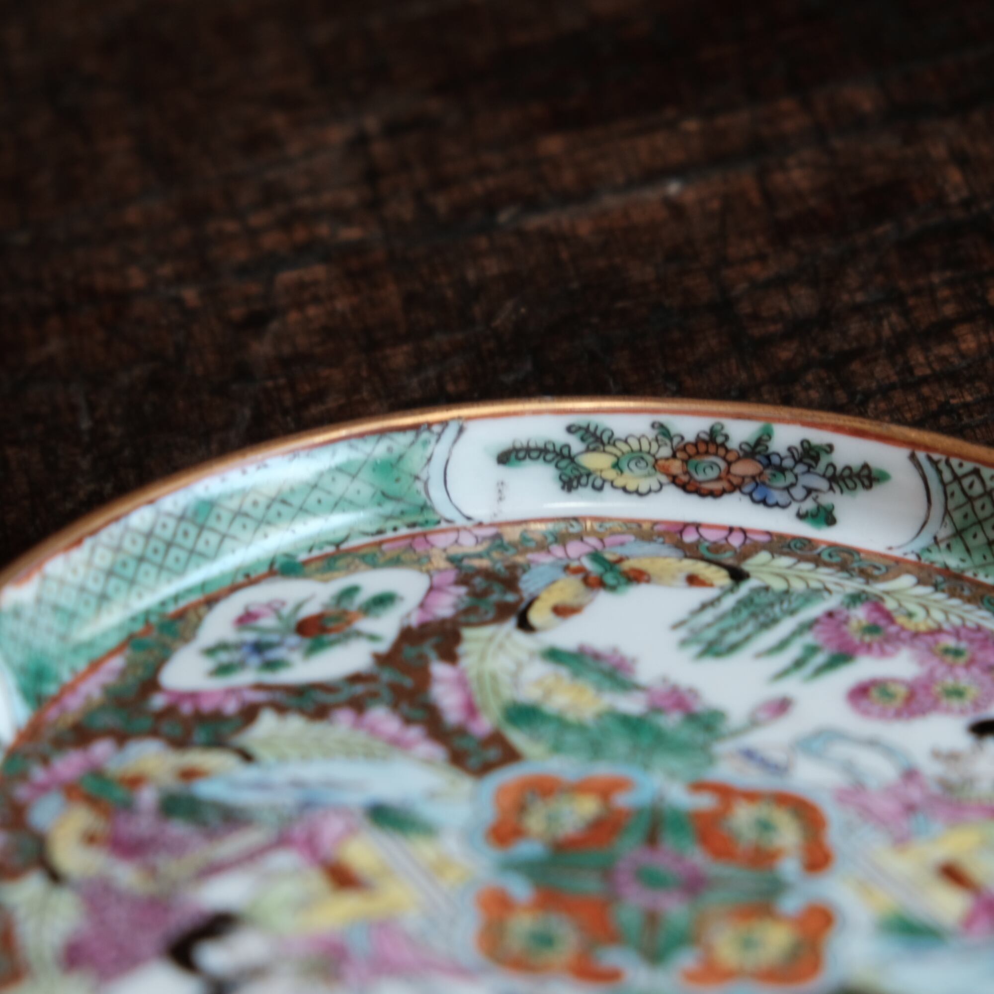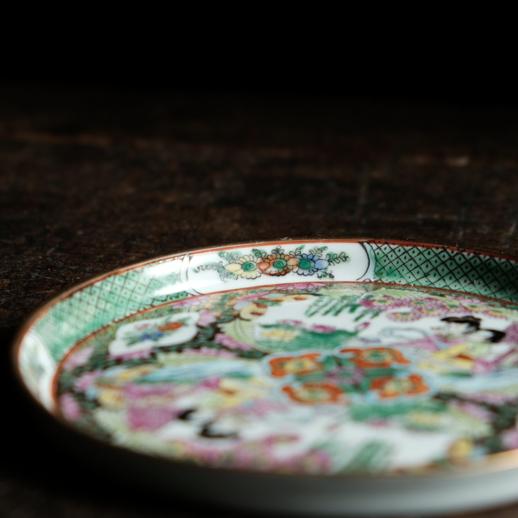 花と蝶と天女◆カラフルで素敵。中国産 色絵金彩中皿プレート 茶杯 煎茶茶器 シノワズリ チャイナレトロ インテリア b1