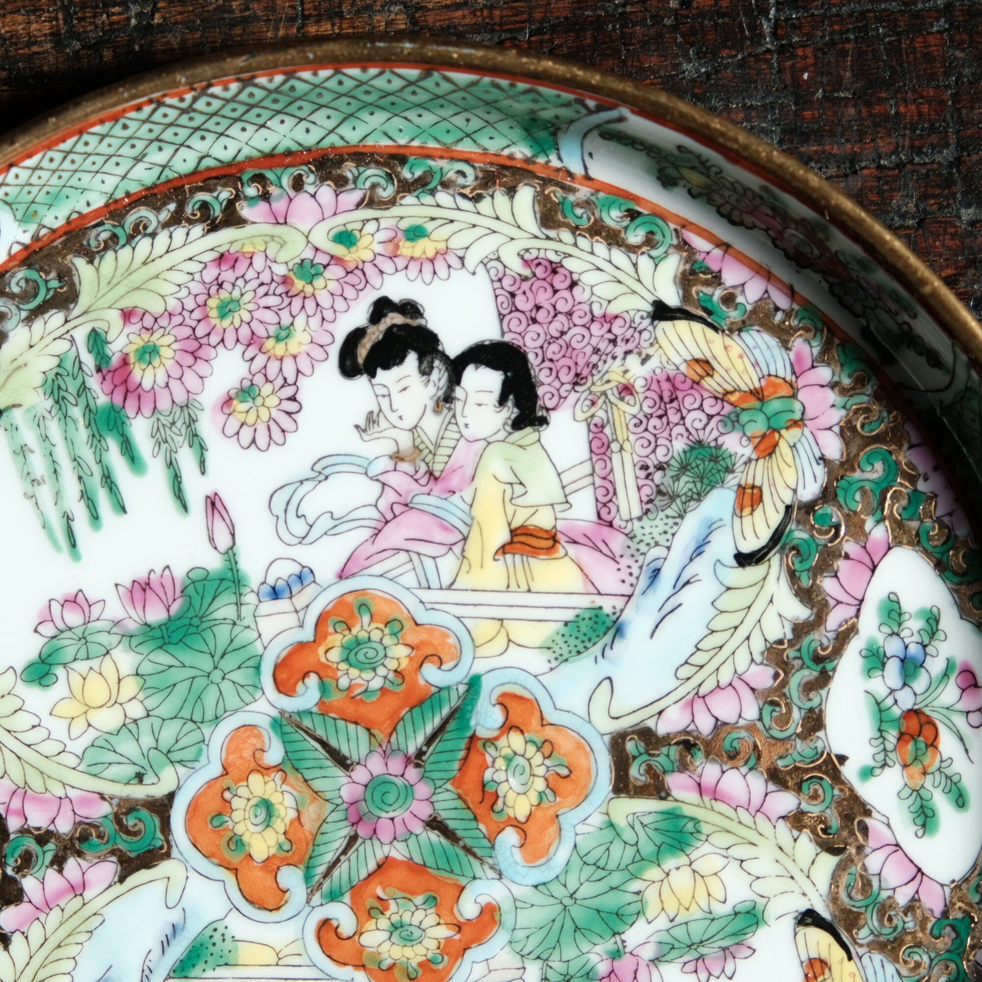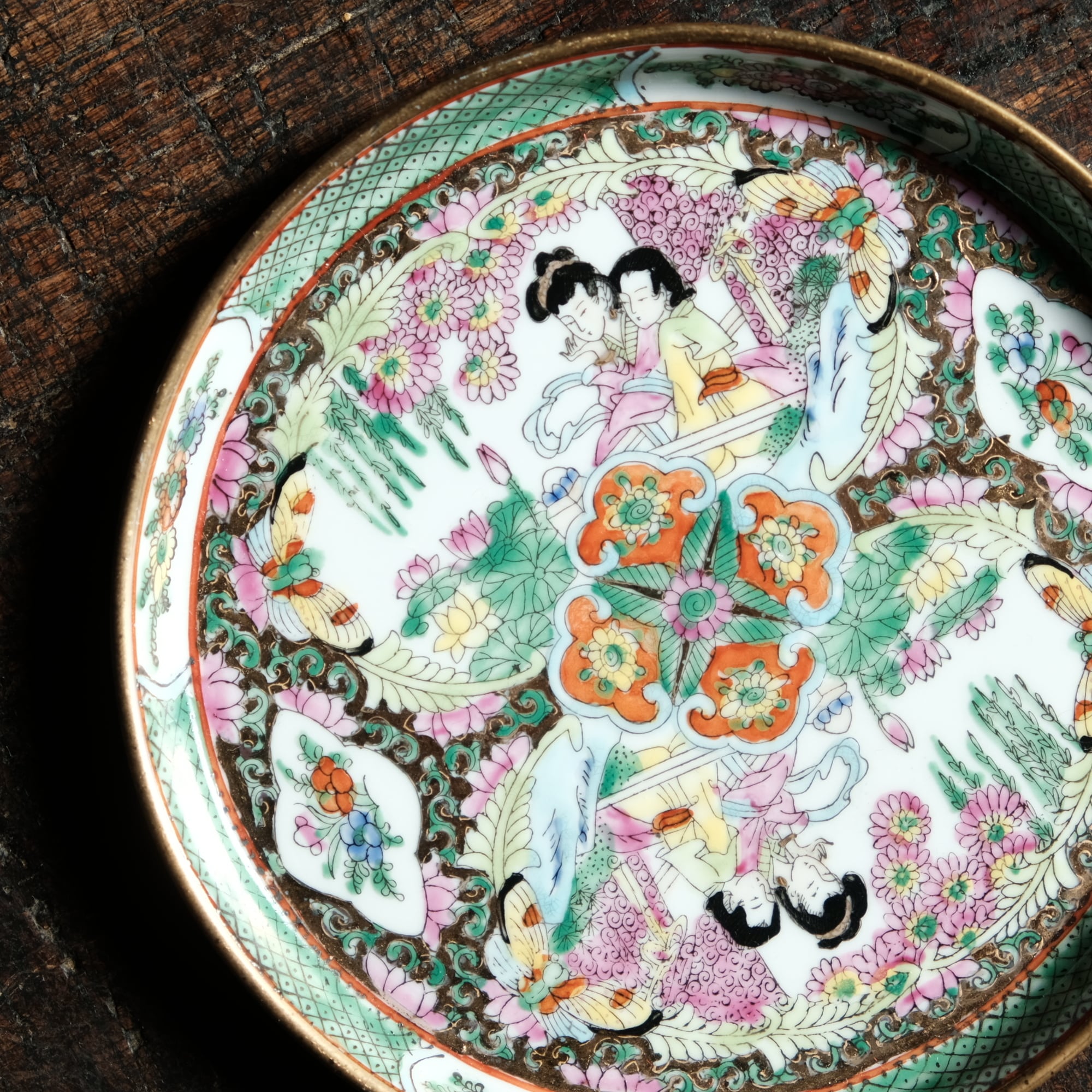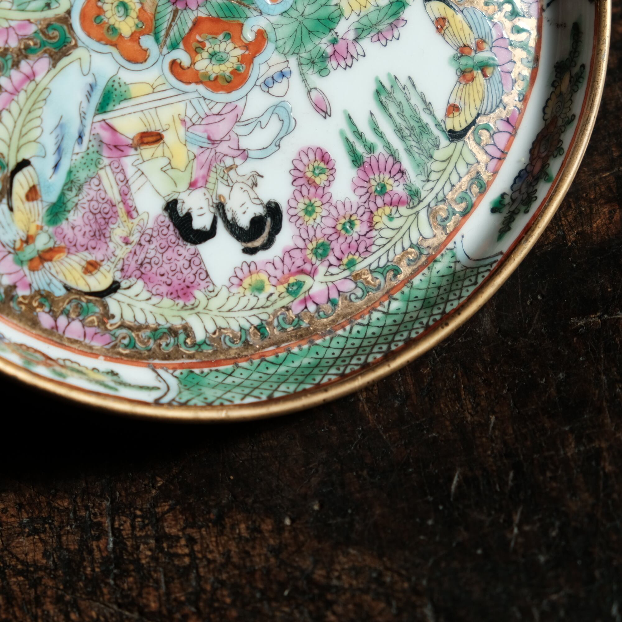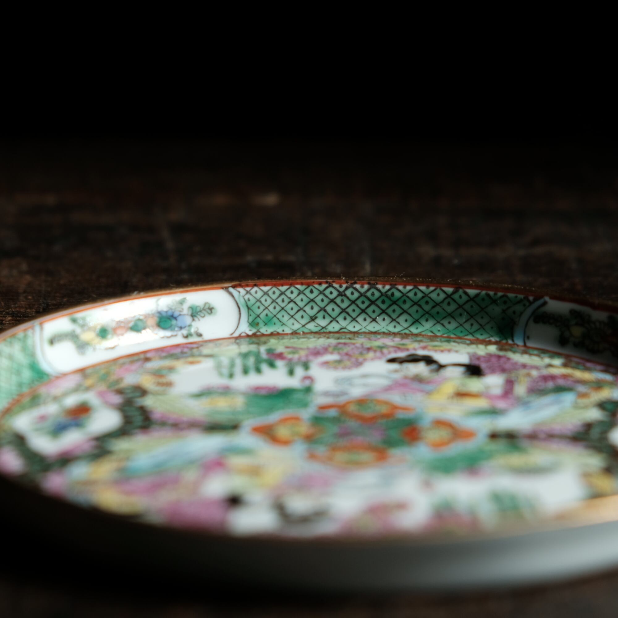 花と蝶と天女◆カラフルで素敵。中国産 色絵金彩中皿プレート 茶杯 煎茶茶器 シノワズリ チャイナレトロ インテリア b1