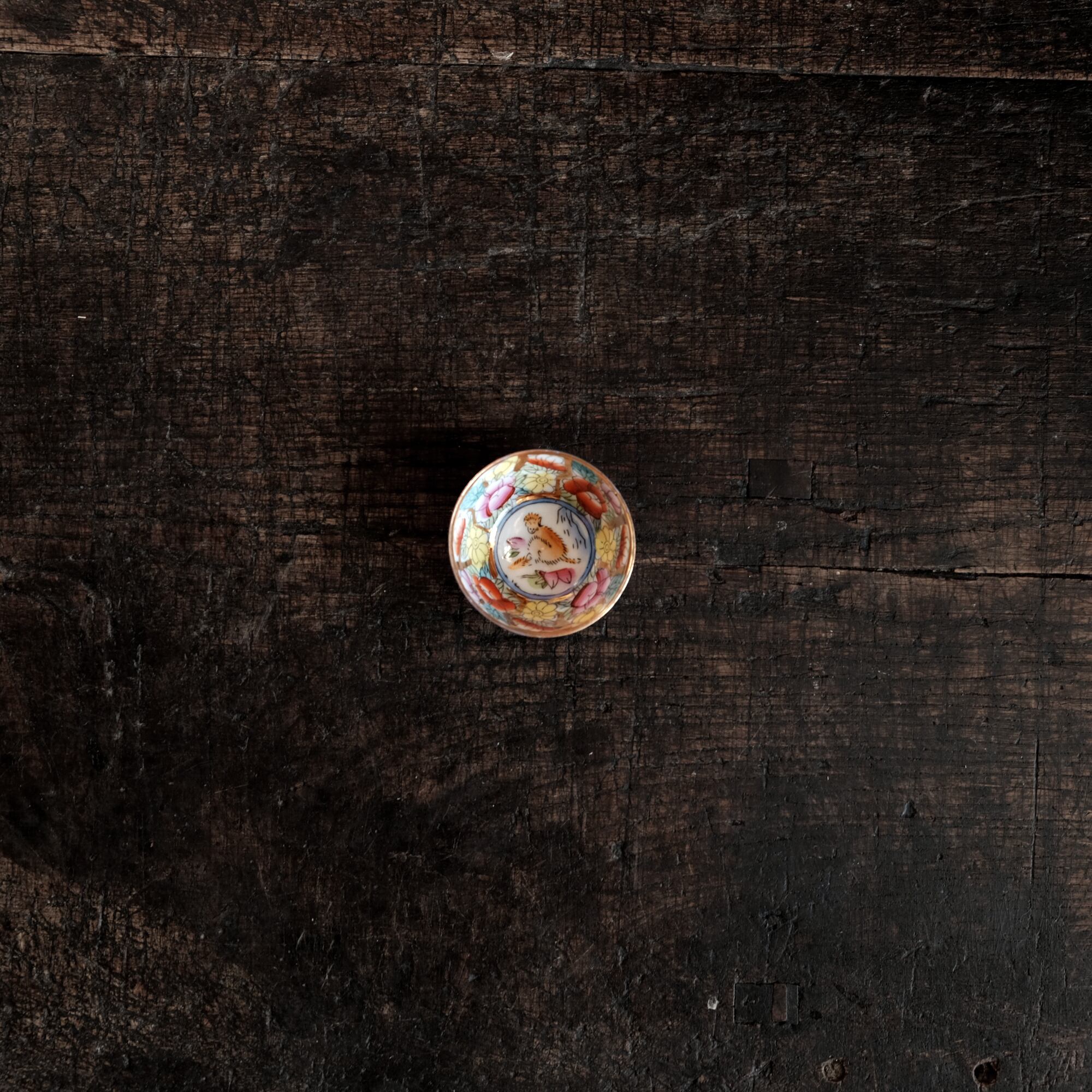 見込みに猿(申)◆チャイナレトロで可愛い。中国出品 干支 色絵金彩小ぶり猪口 花尽くし。シノワズリ b3