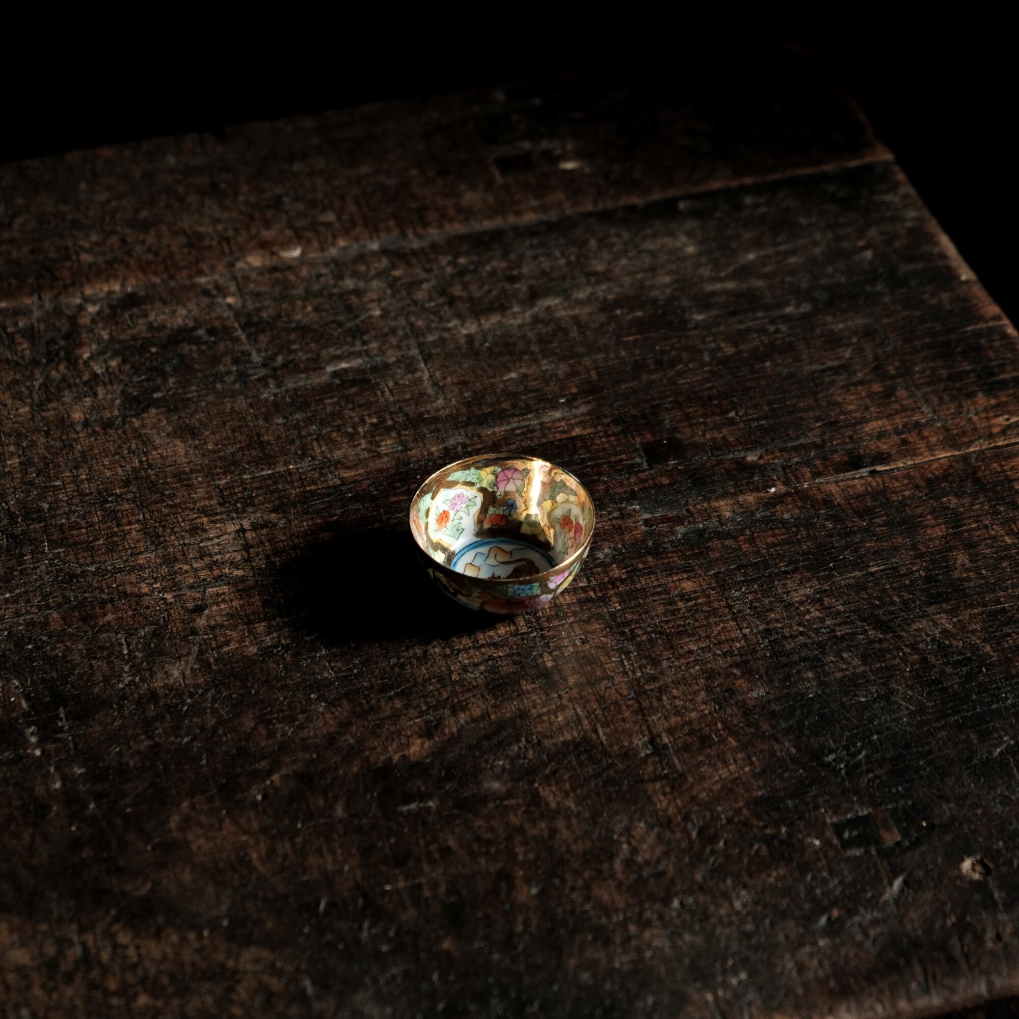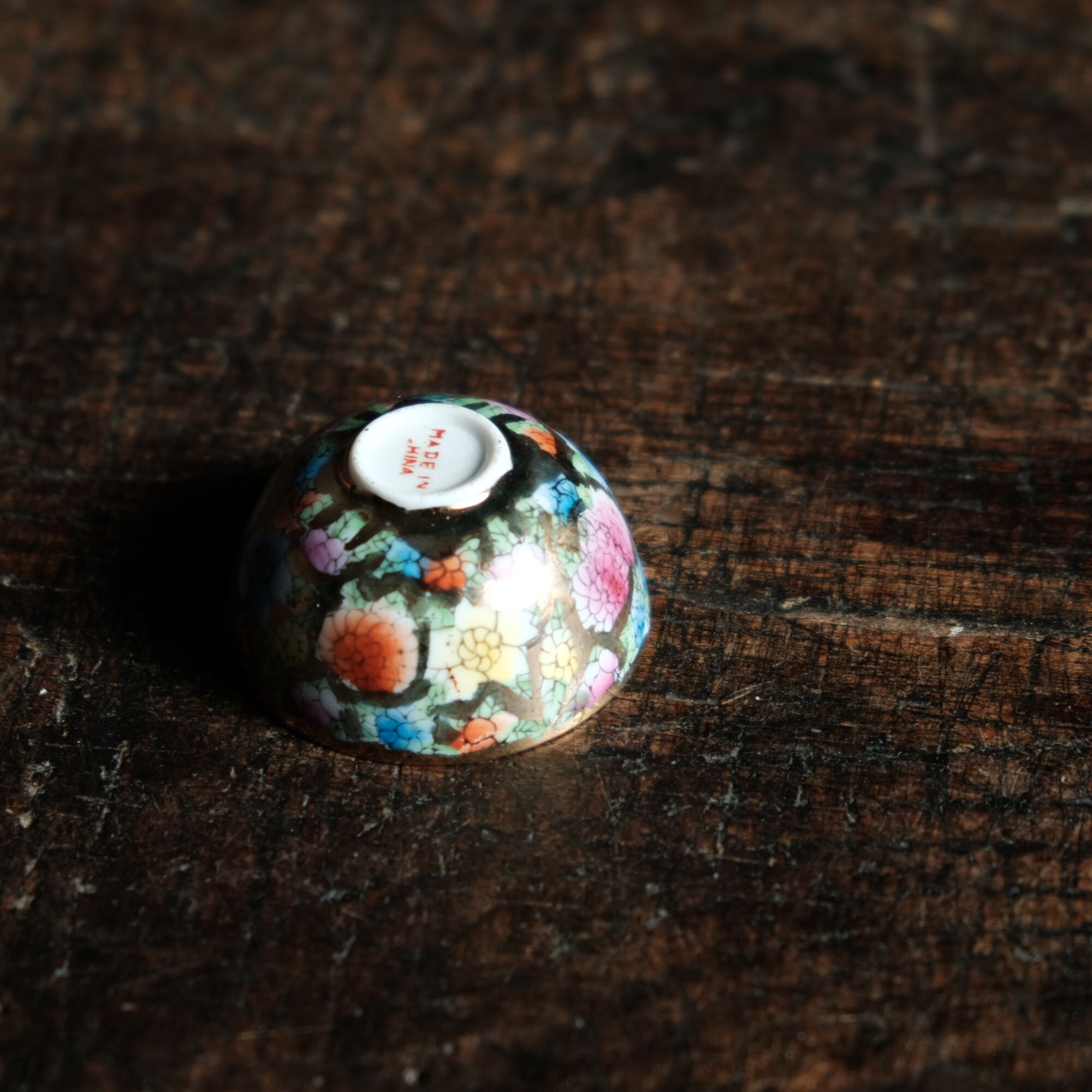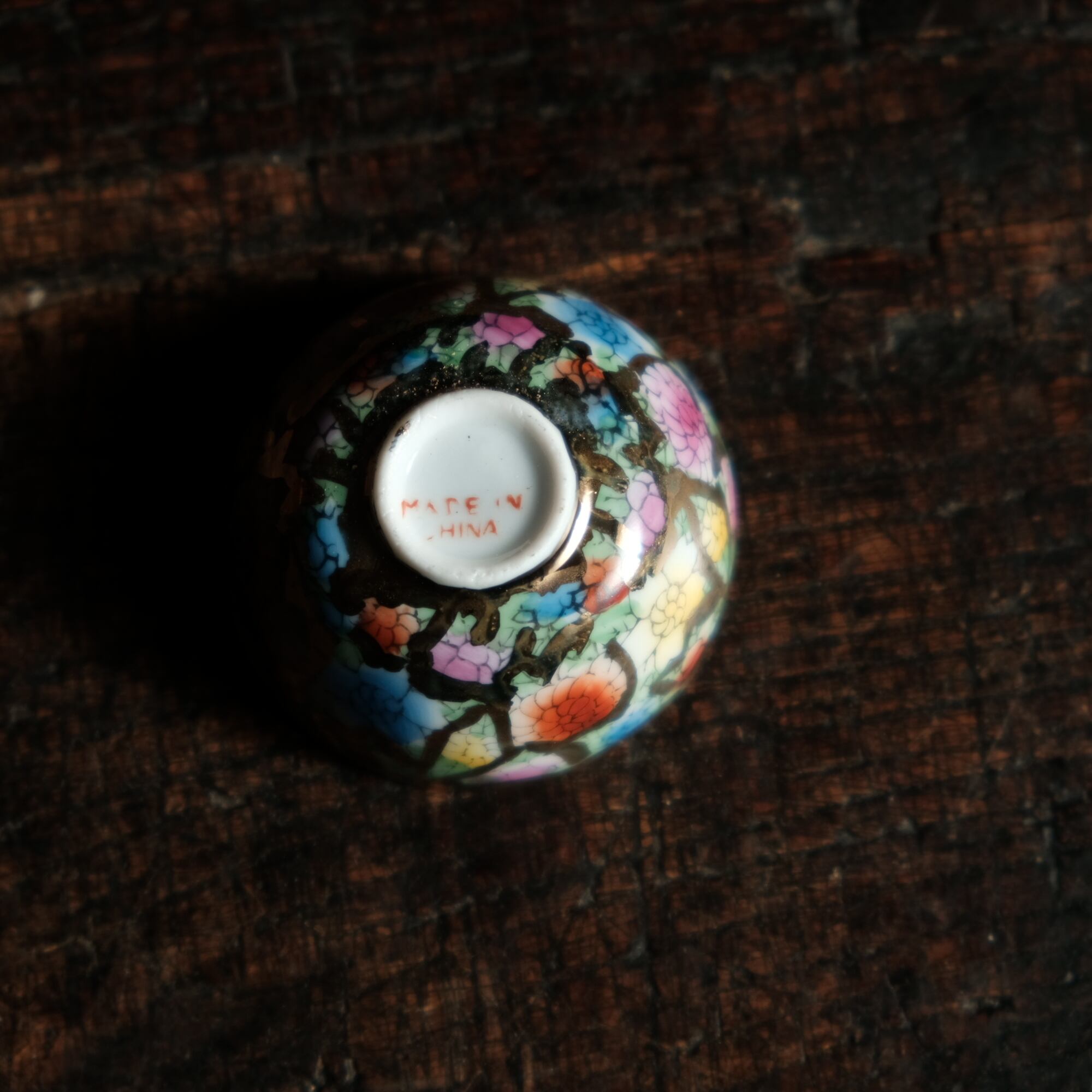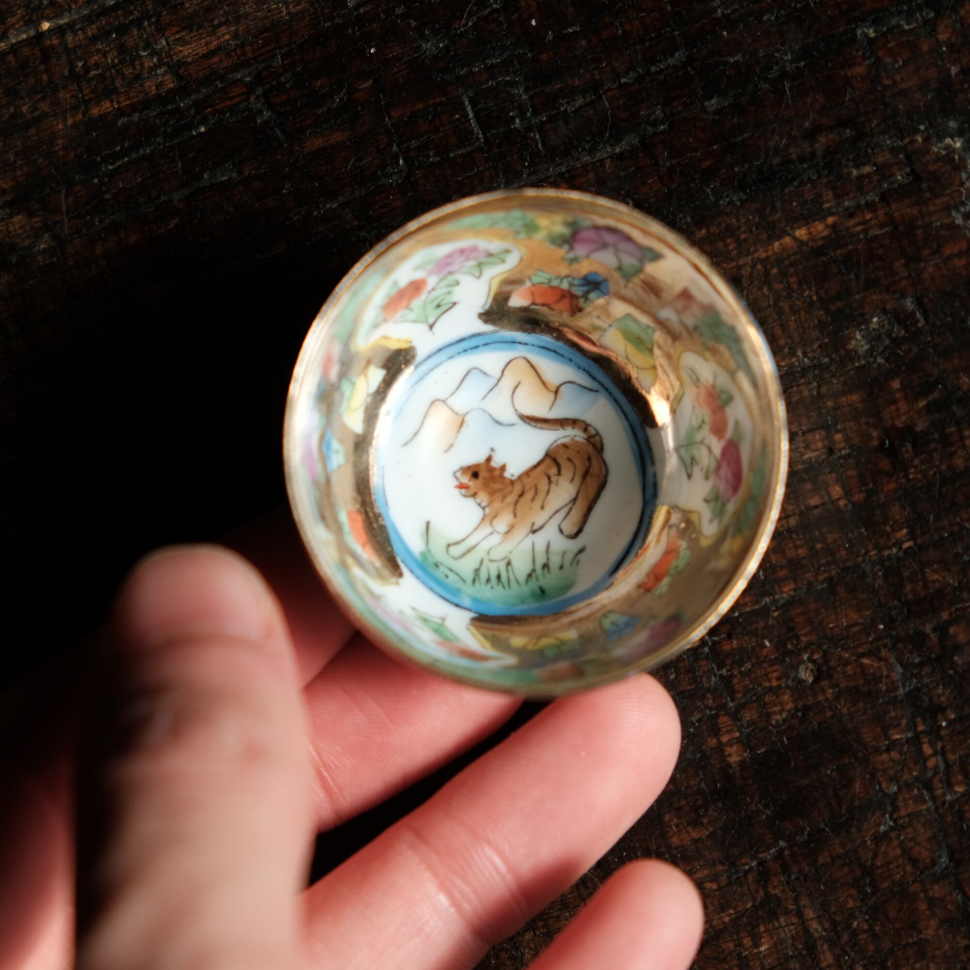 見込みに虎(寅)◆チャイナレトロで可愛い。中国産 干支 色絵金彩小ぶり猪口 花尽くし。シノワズリ b4