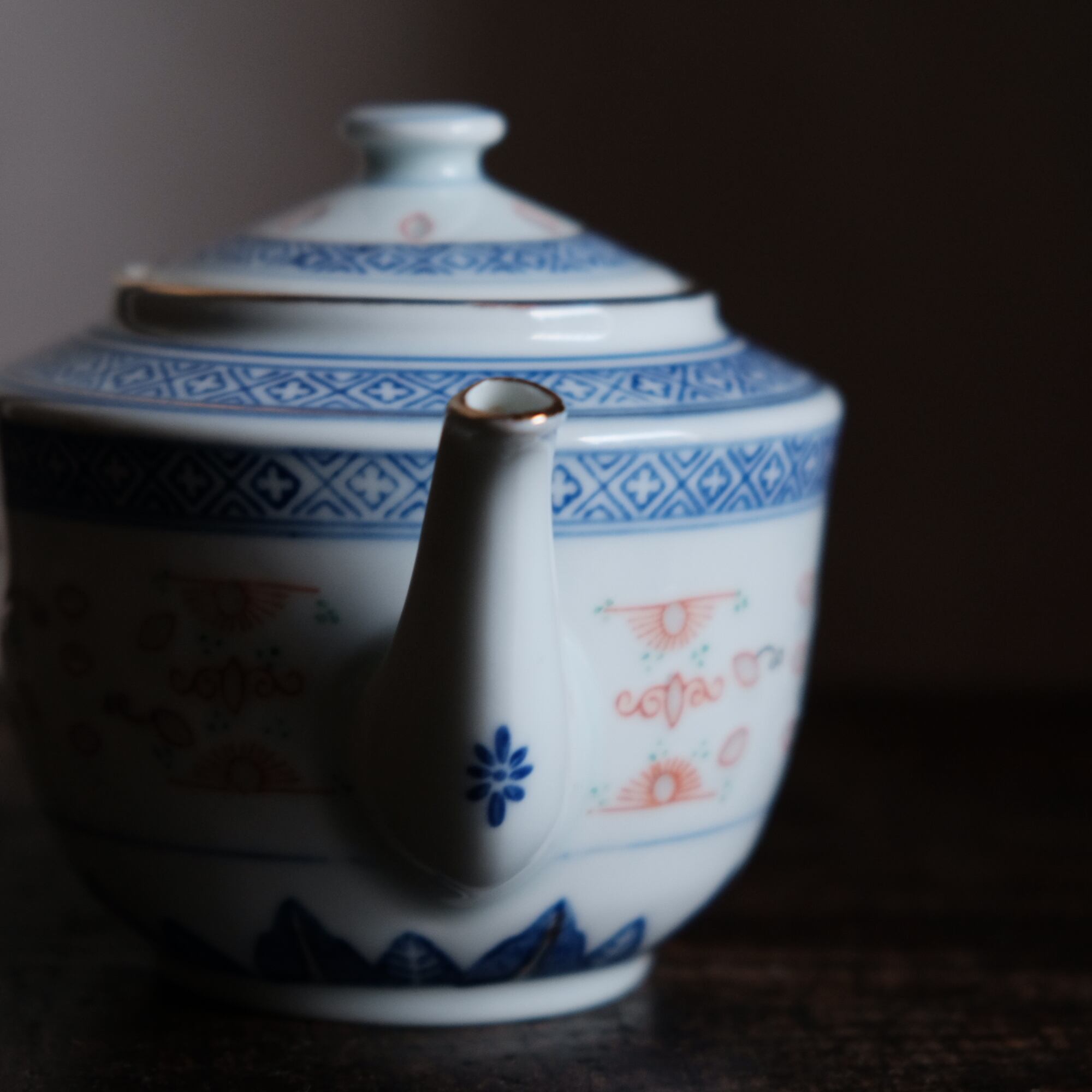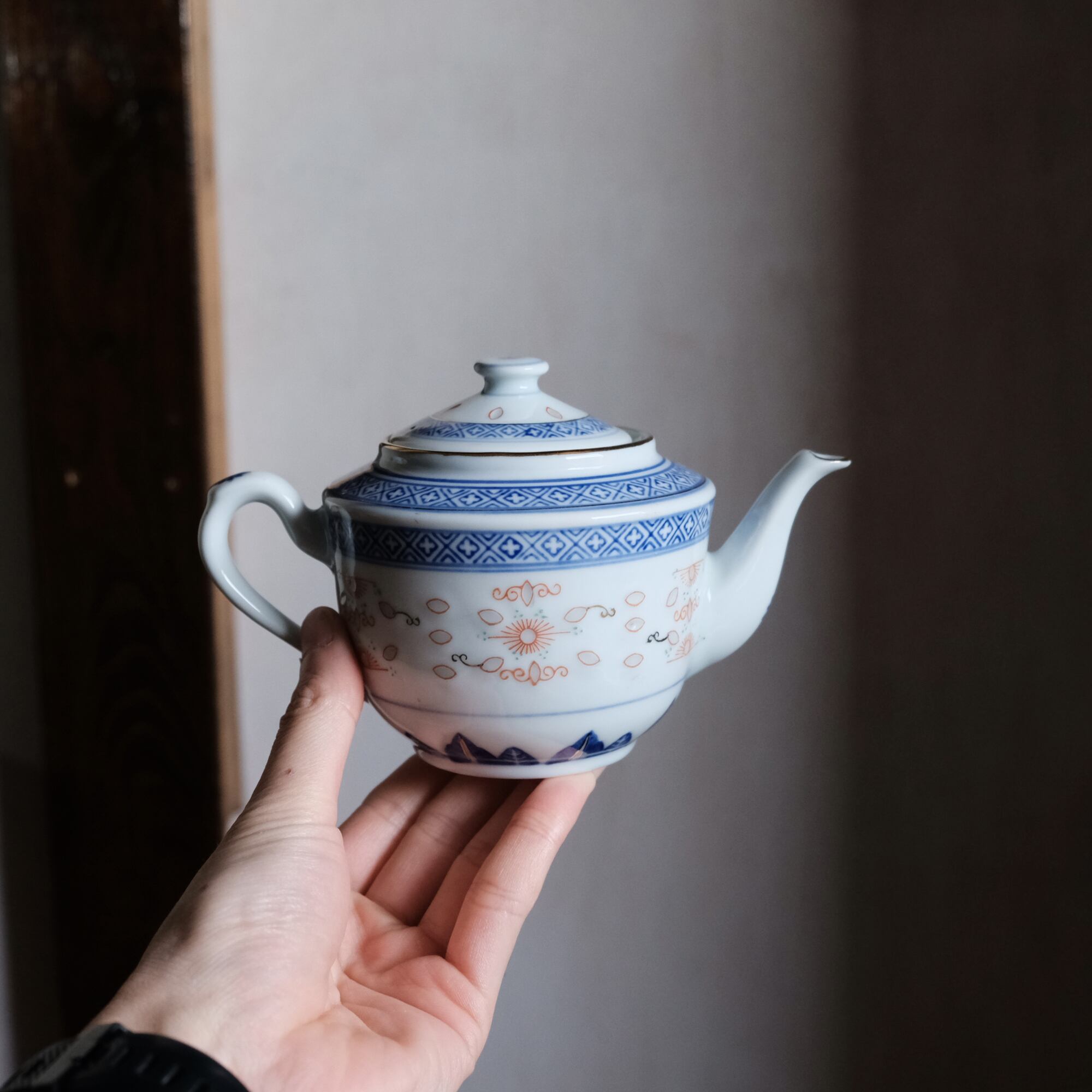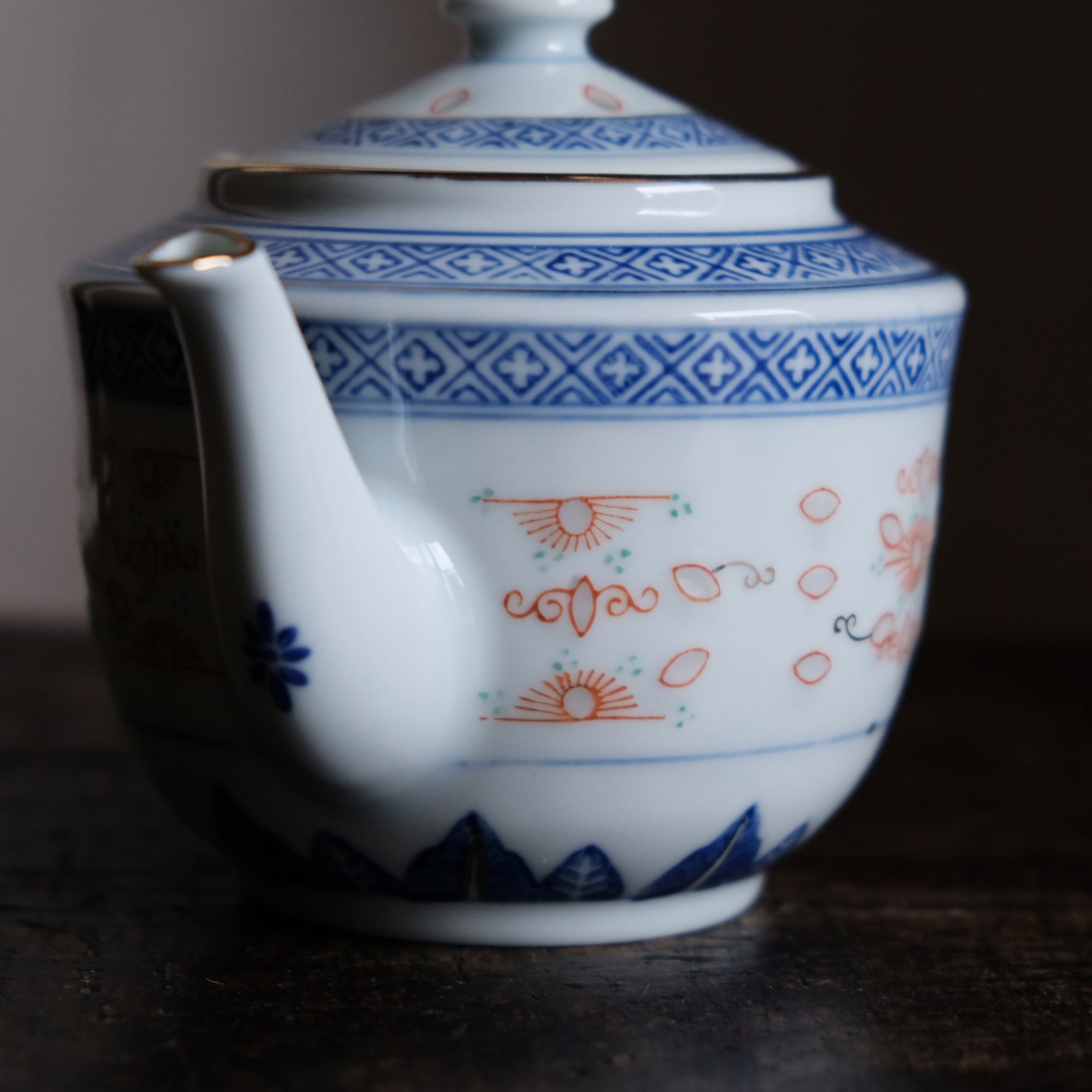 シノワズリな雰囲気◇中国景徳鎮 花文蛍焼赤絵金彩ティーポット 茶器 急須 チャイナレトロ 蝙蝠 十字架