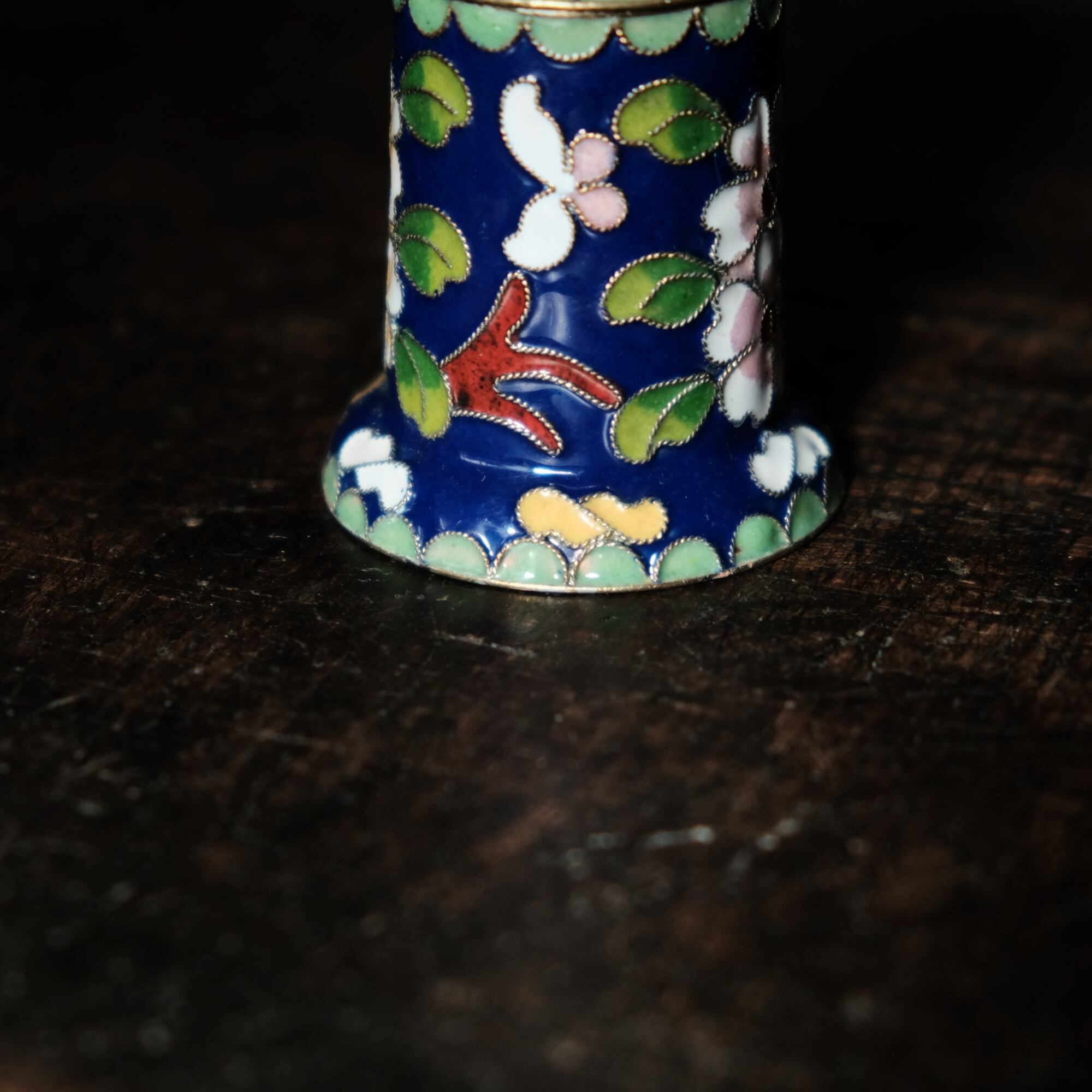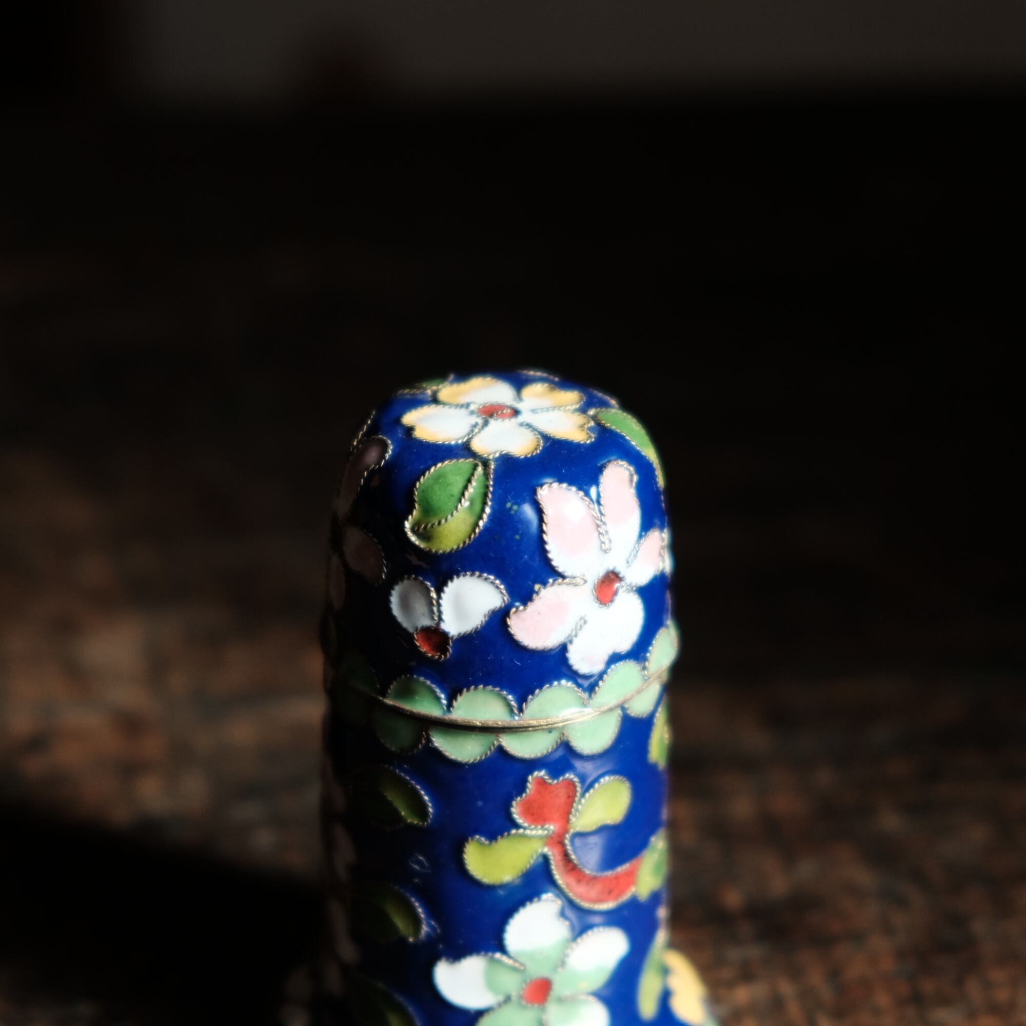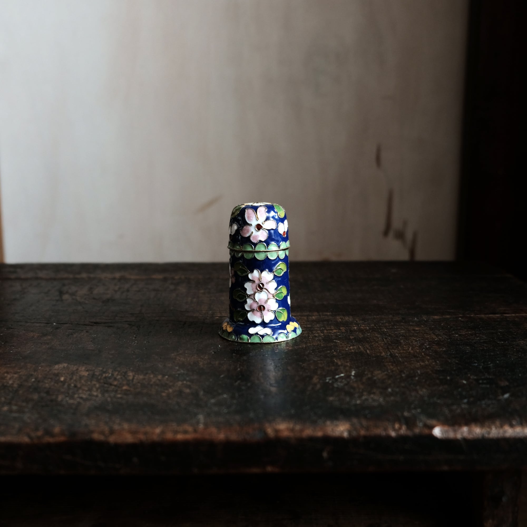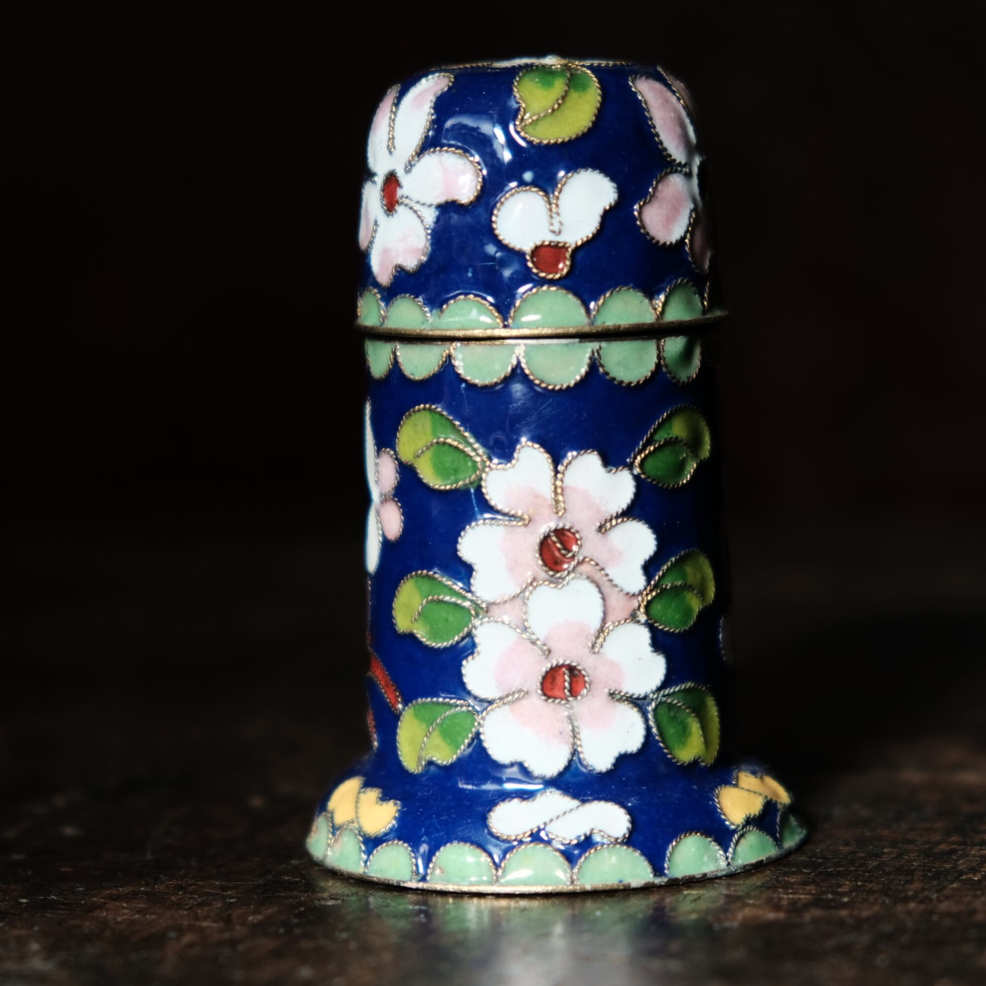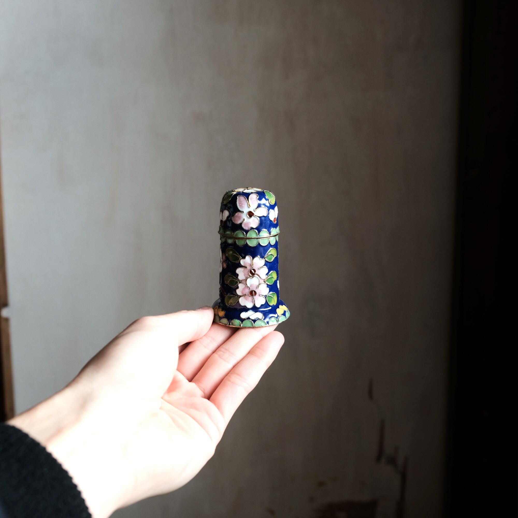 ネイビーに草花◆中国産 七宝焼 小物入れ 楊枝入れ チャイナレトロ シノワズリ インテリアオブジェ