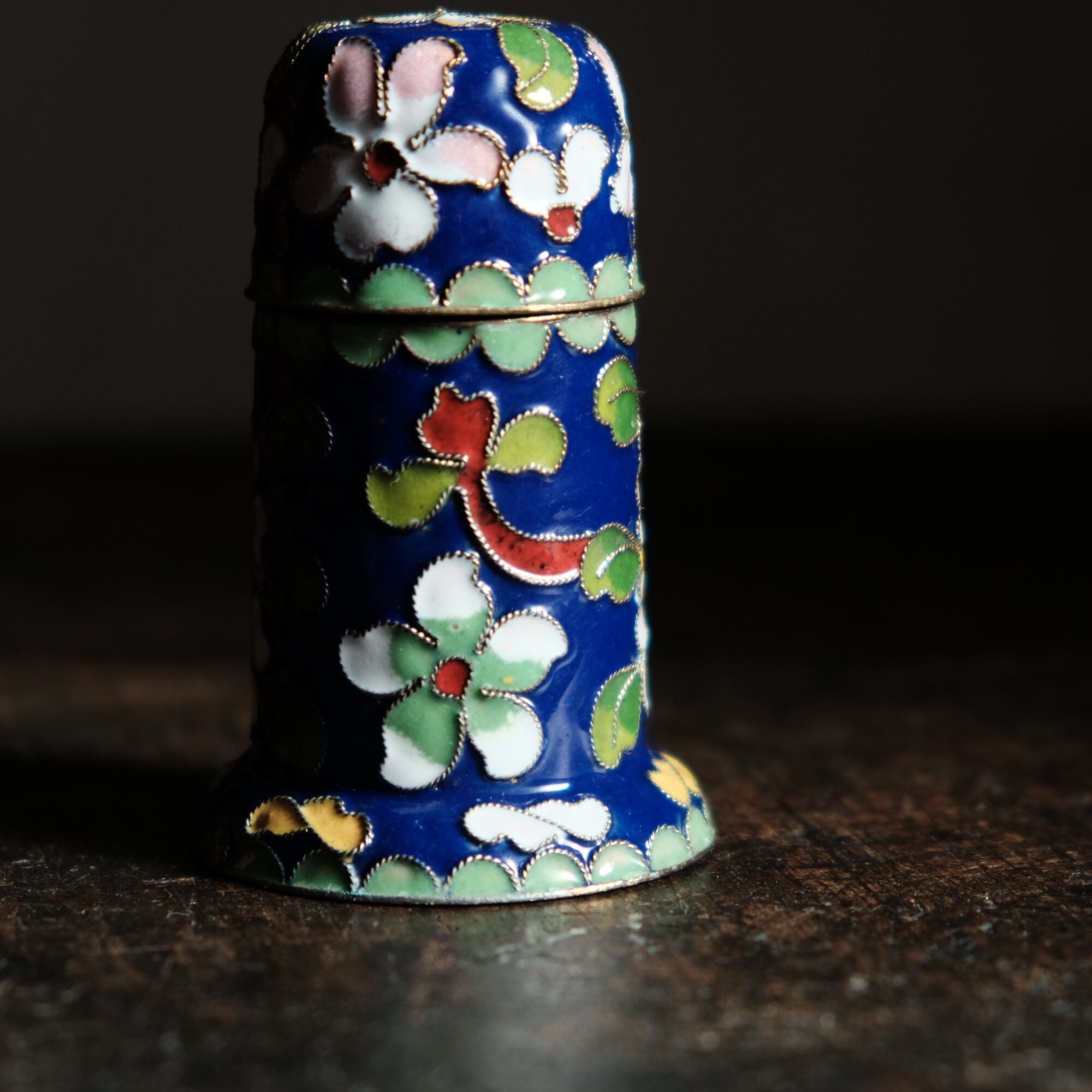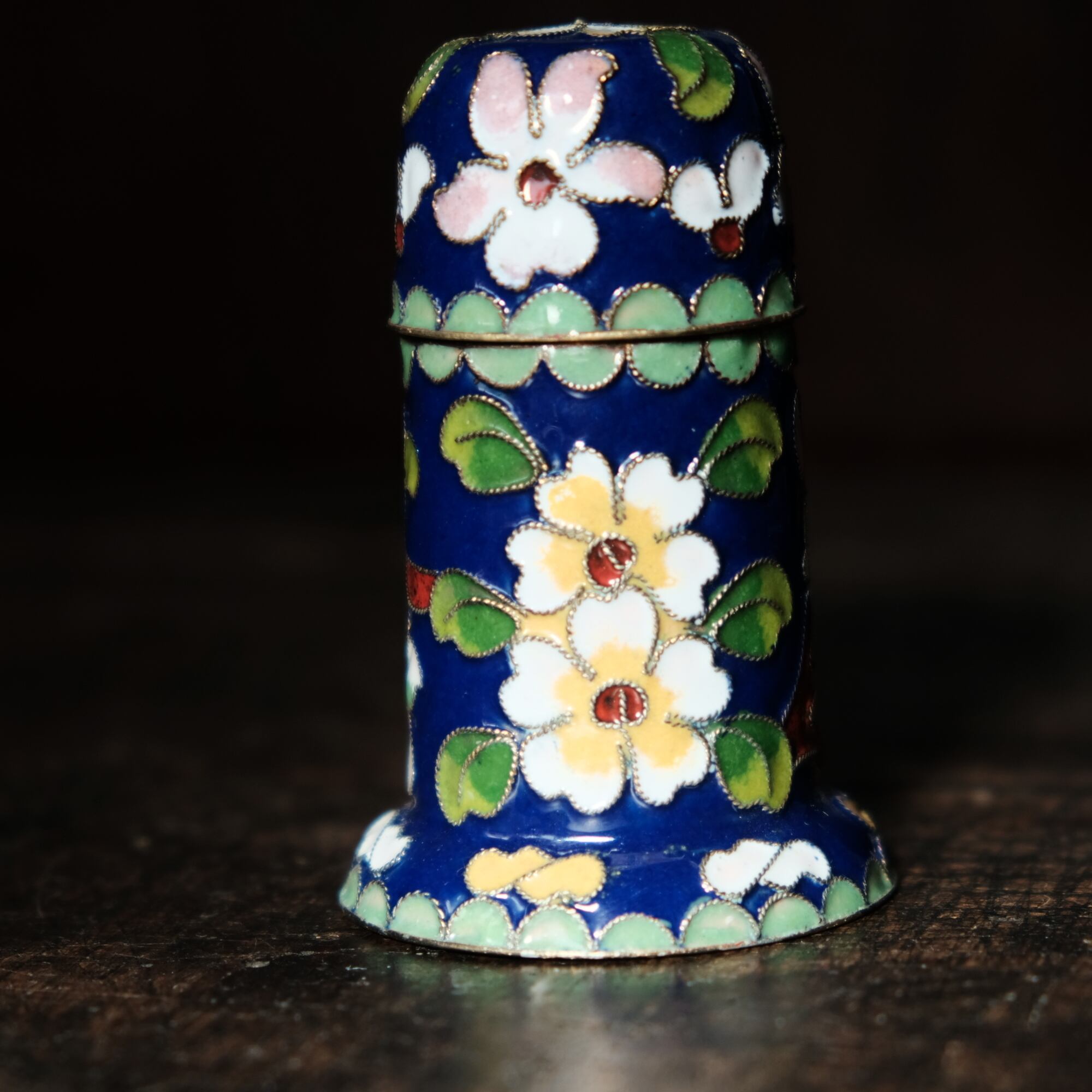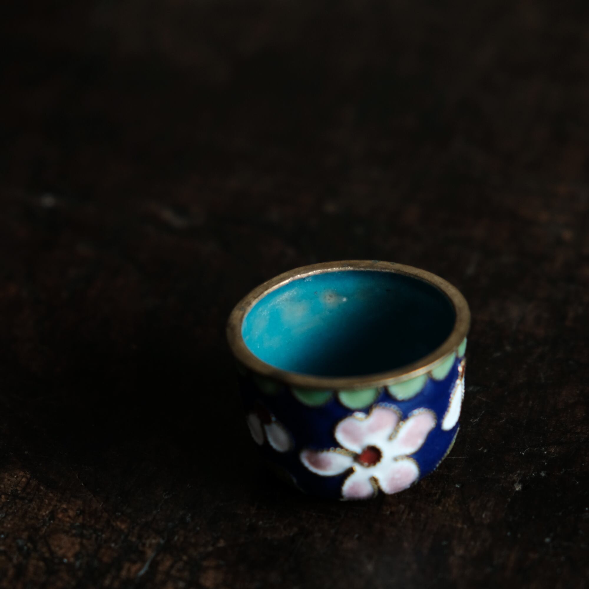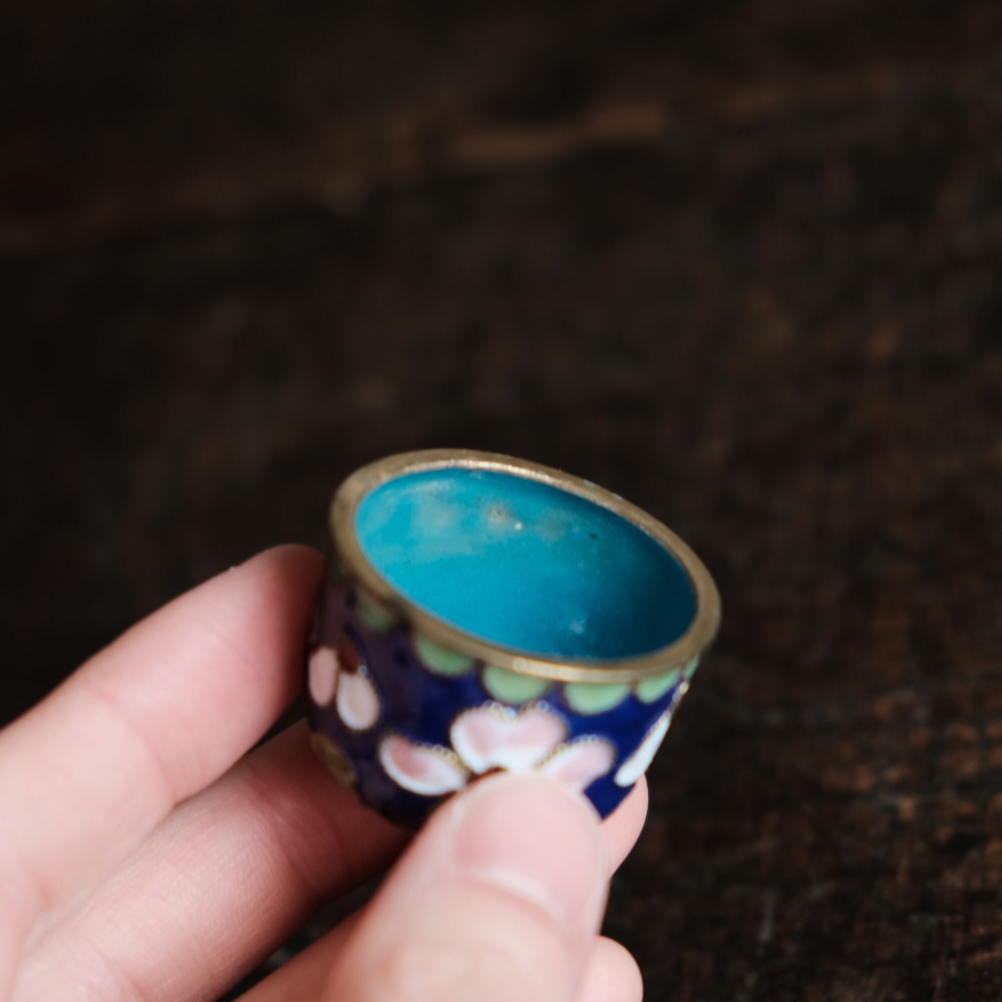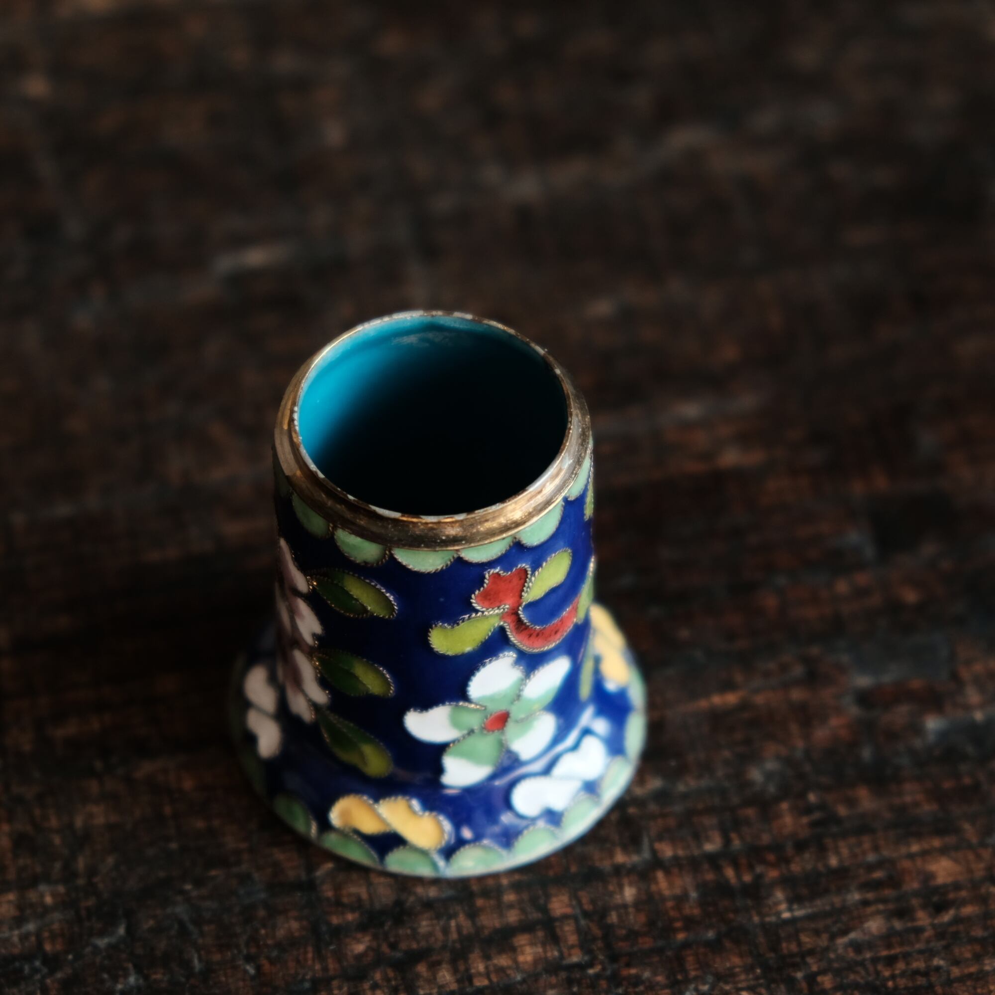 ネイビーに草花◆中国産 七宝焼 小物入れ 楊枝入れ チャイナレトロ シノワズリ インテリアオブジェ