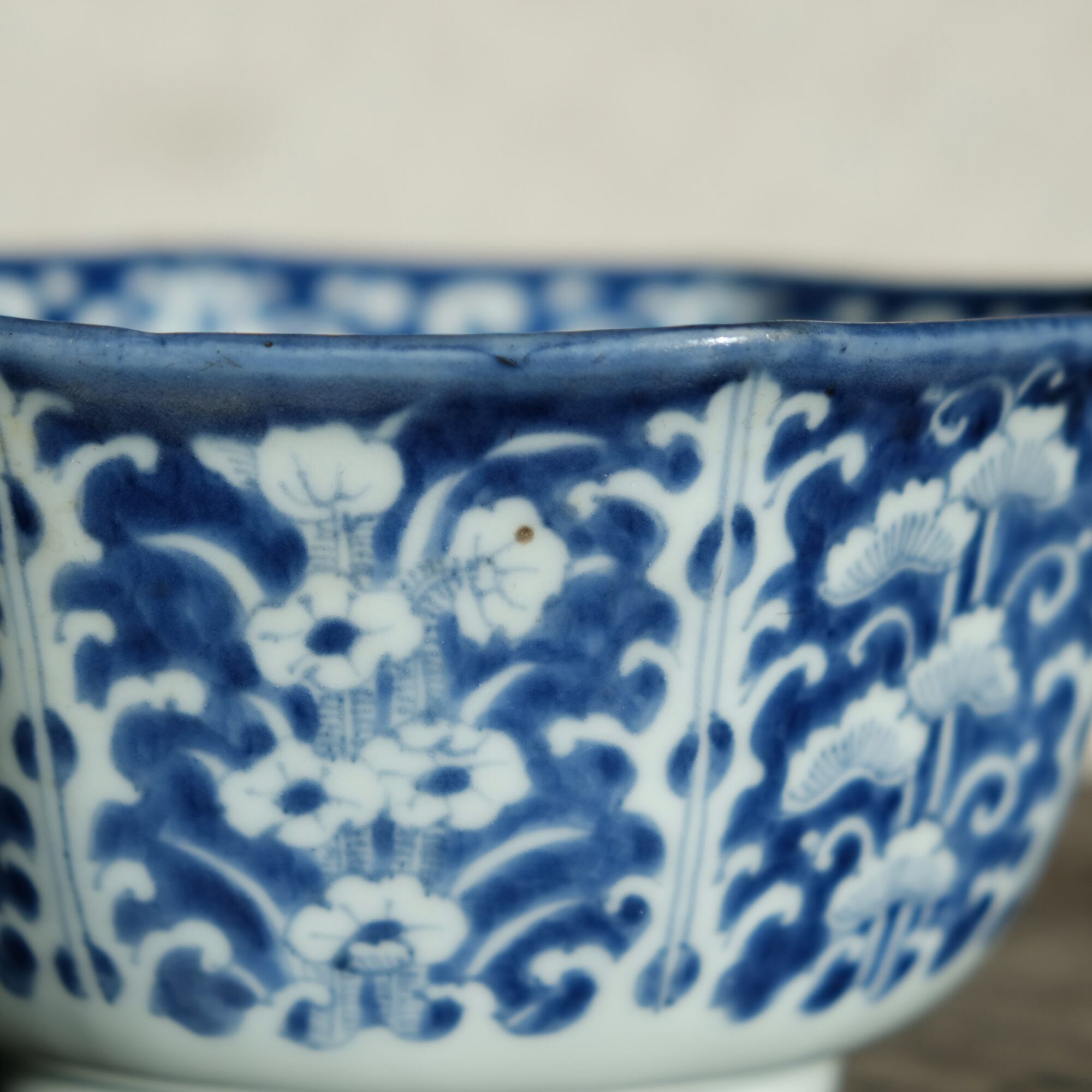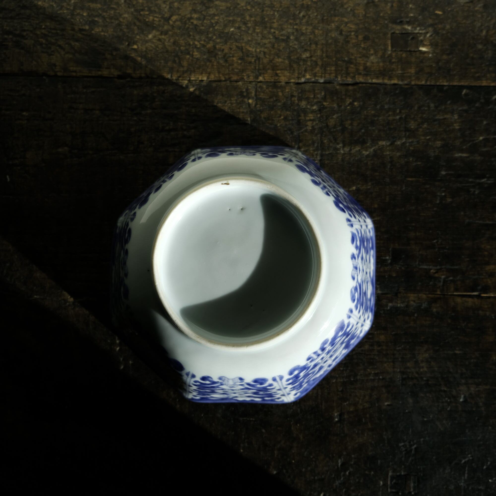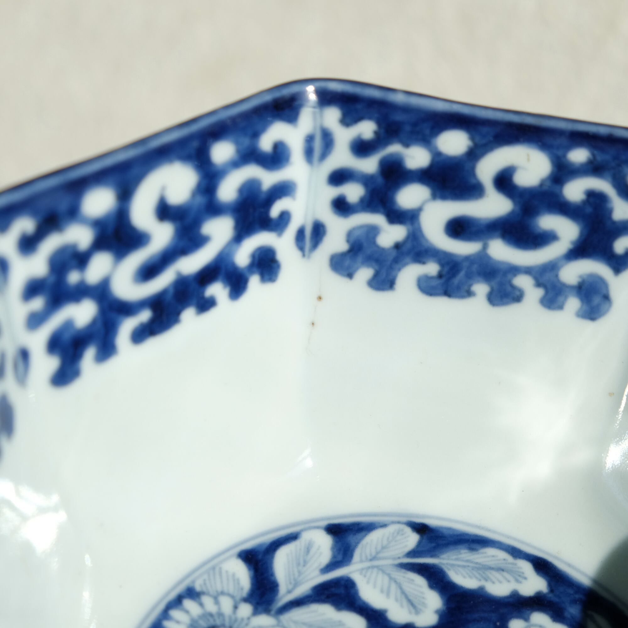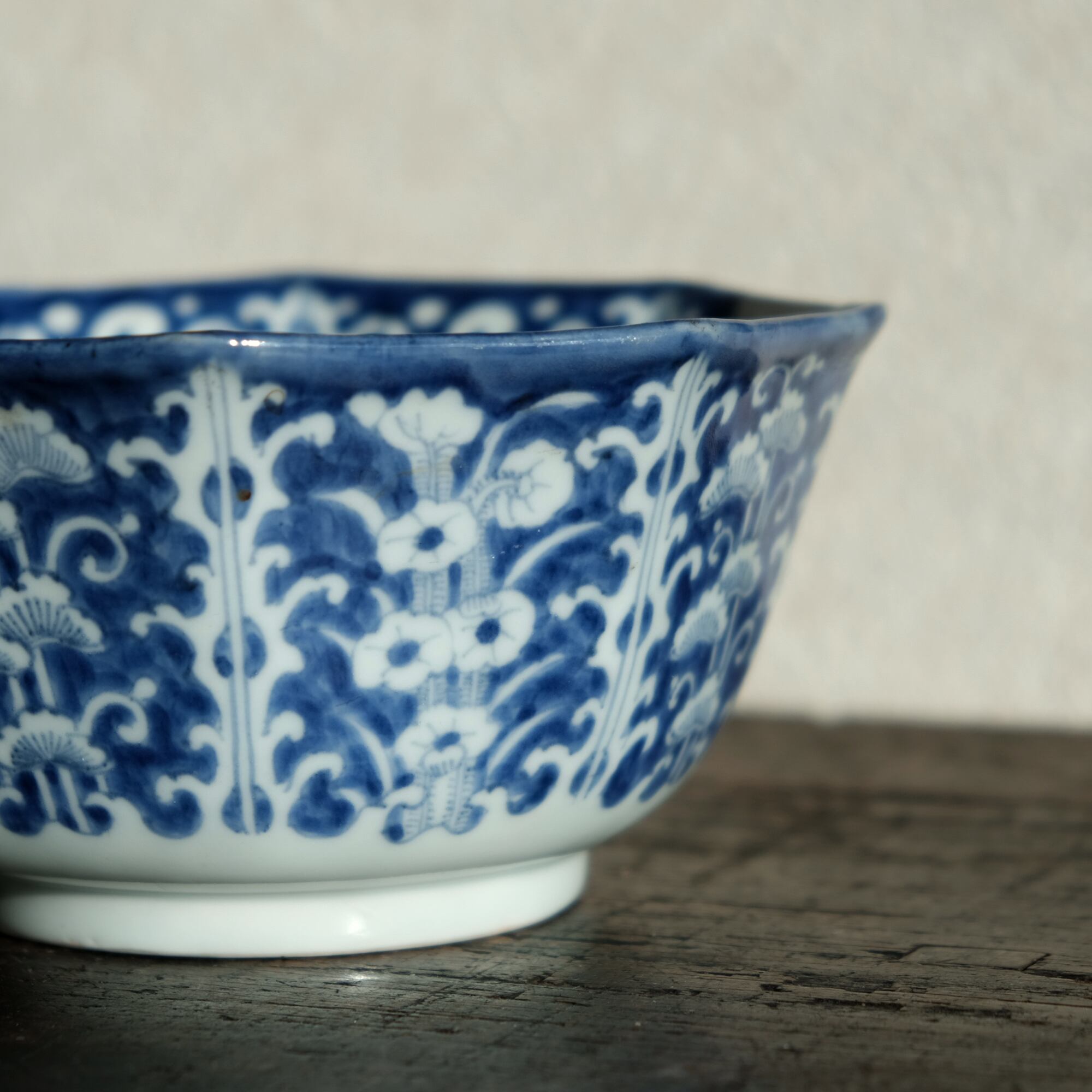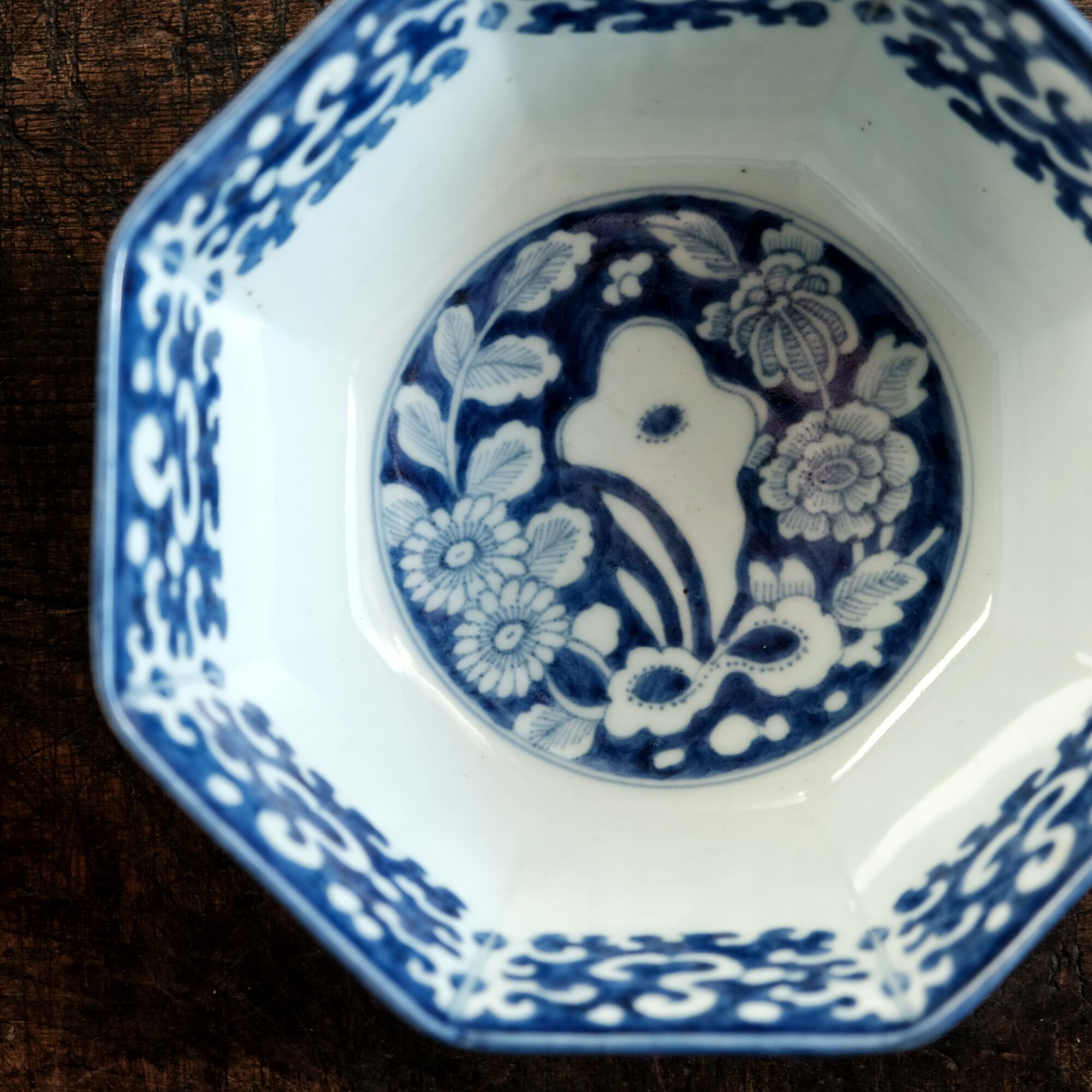 リーフと白波◆八角で素敵。伊万里 草波文染付八角深鉢 骨董・antiques 丁寧な暮らしに。江戸末期