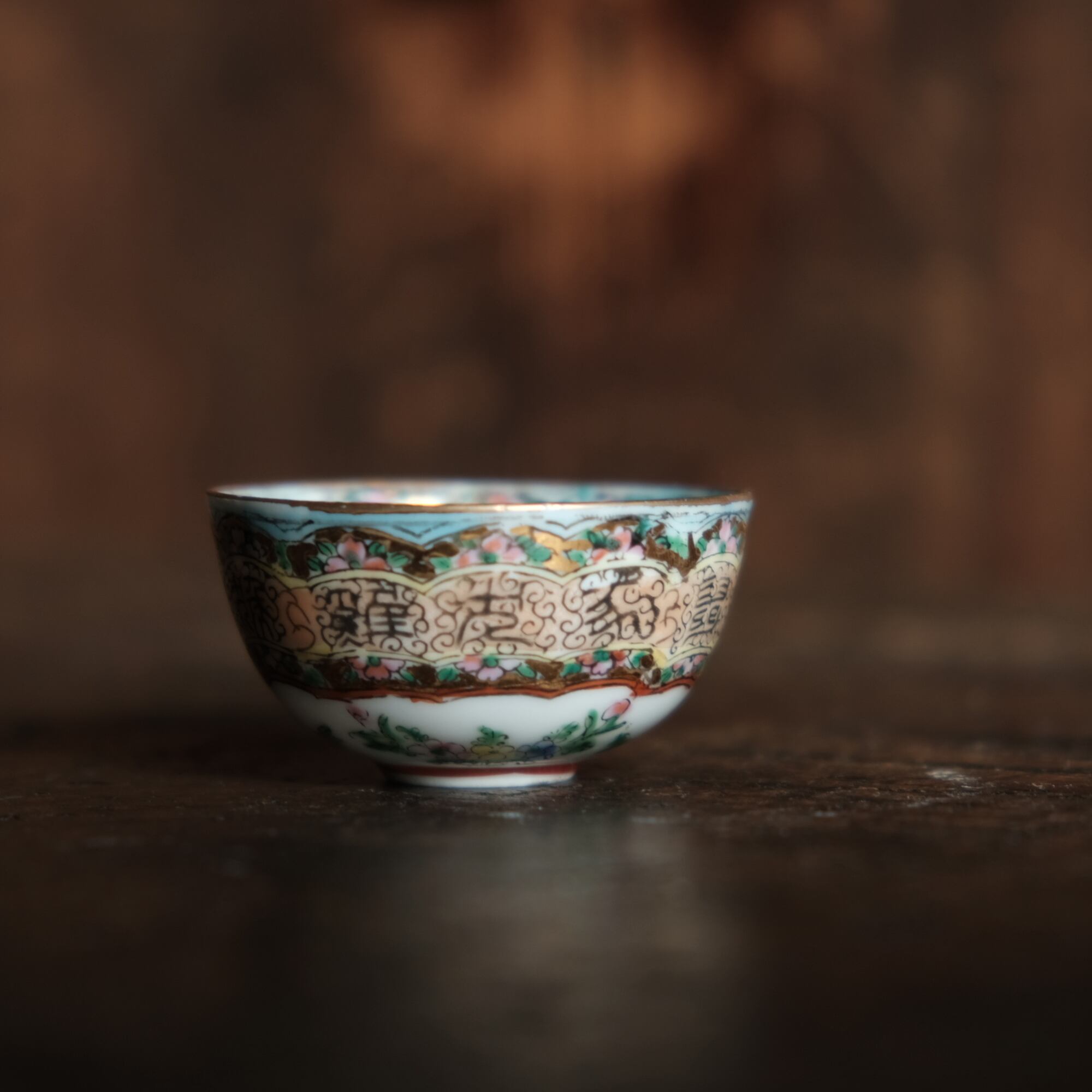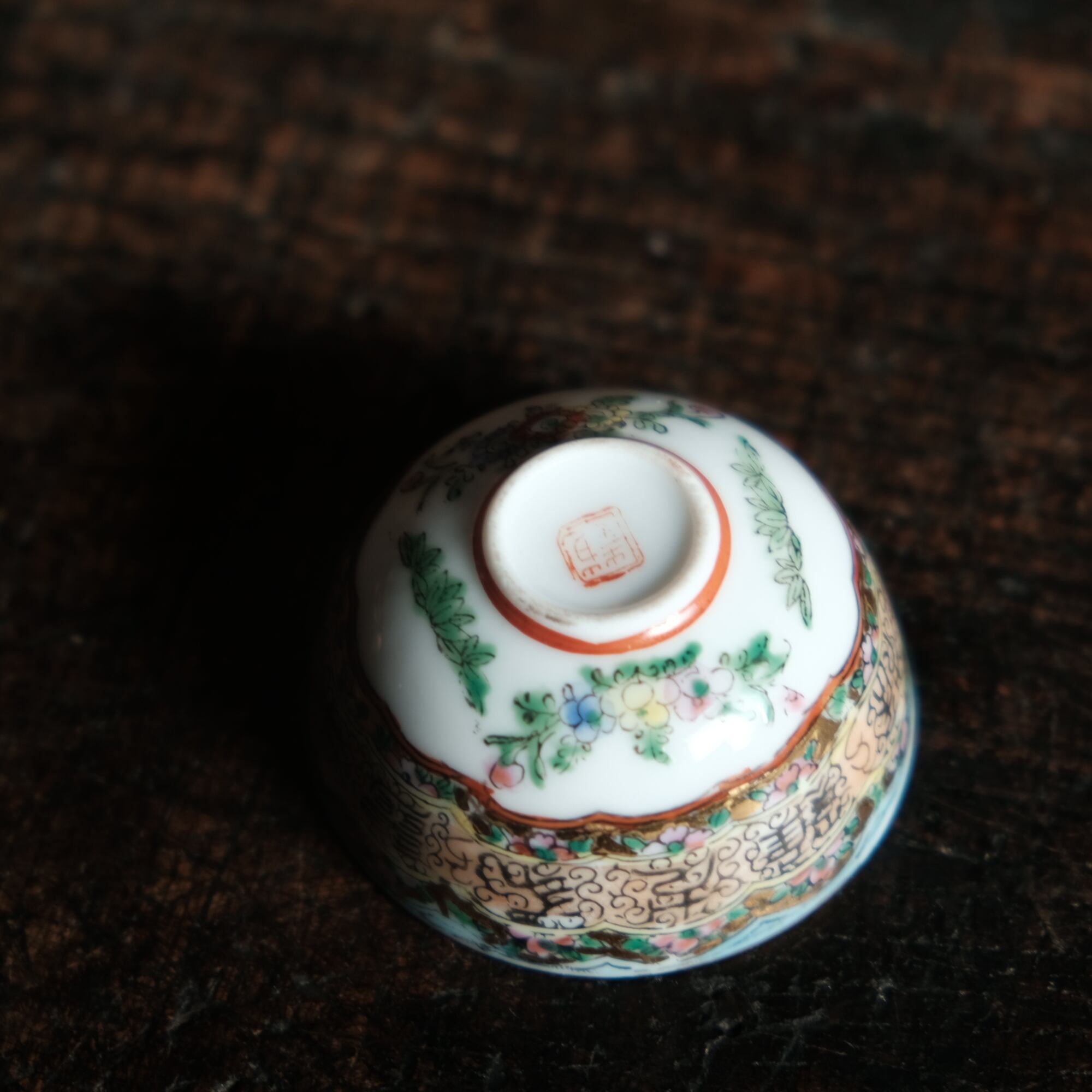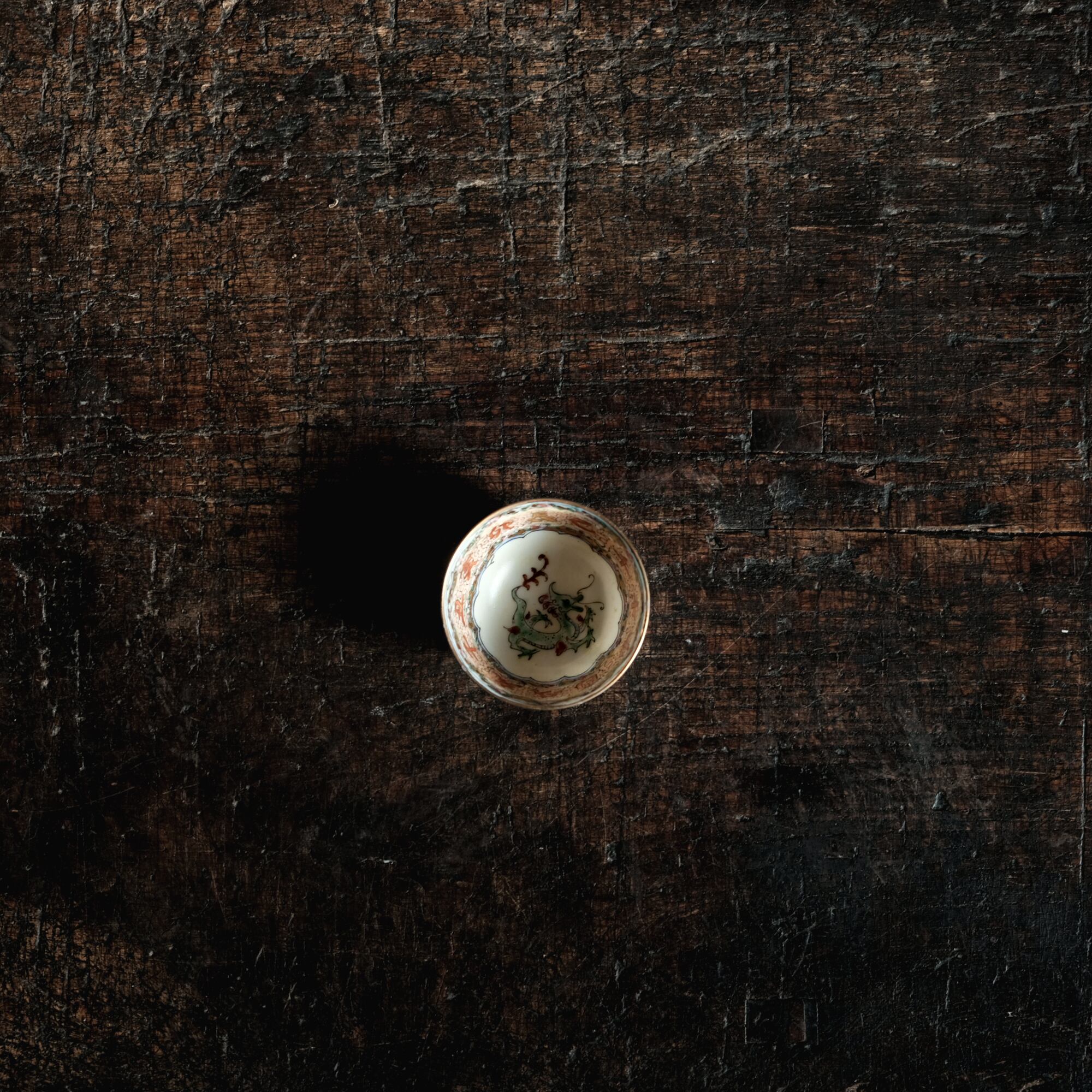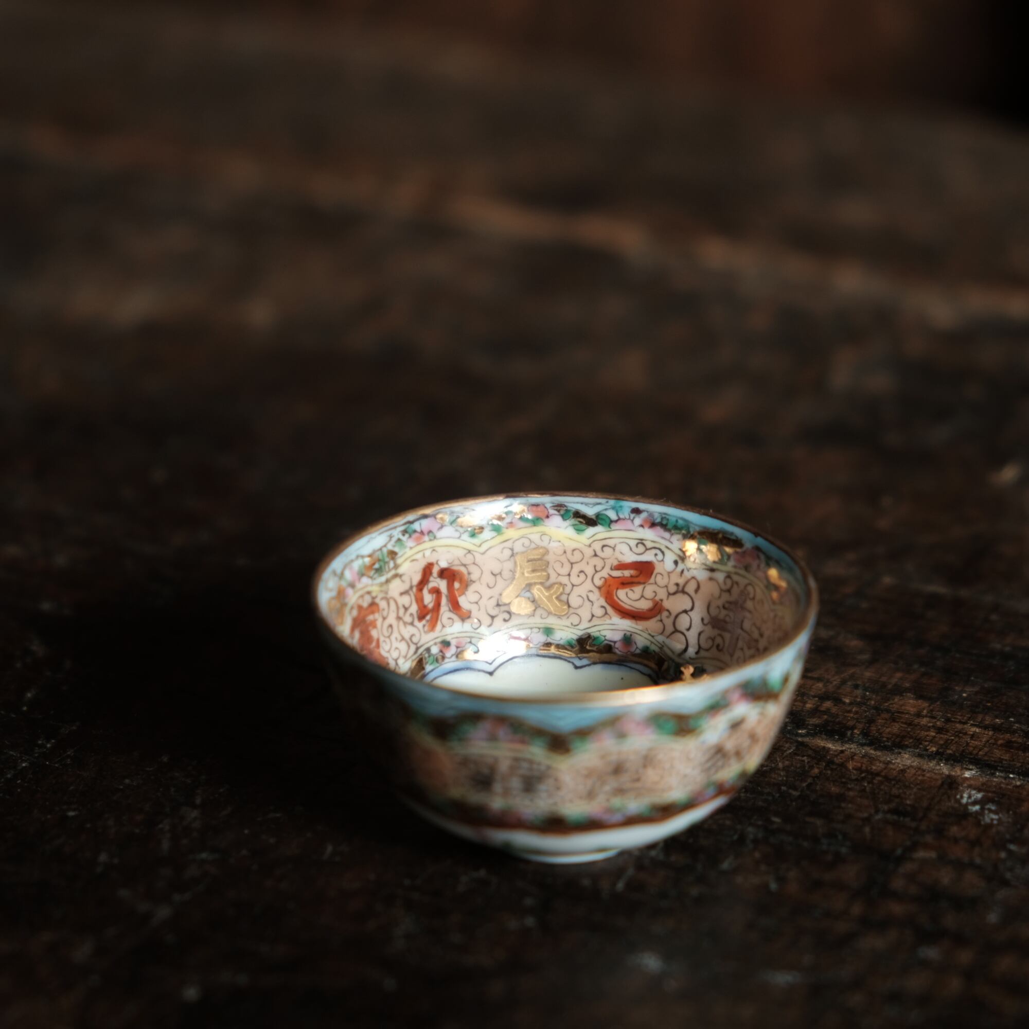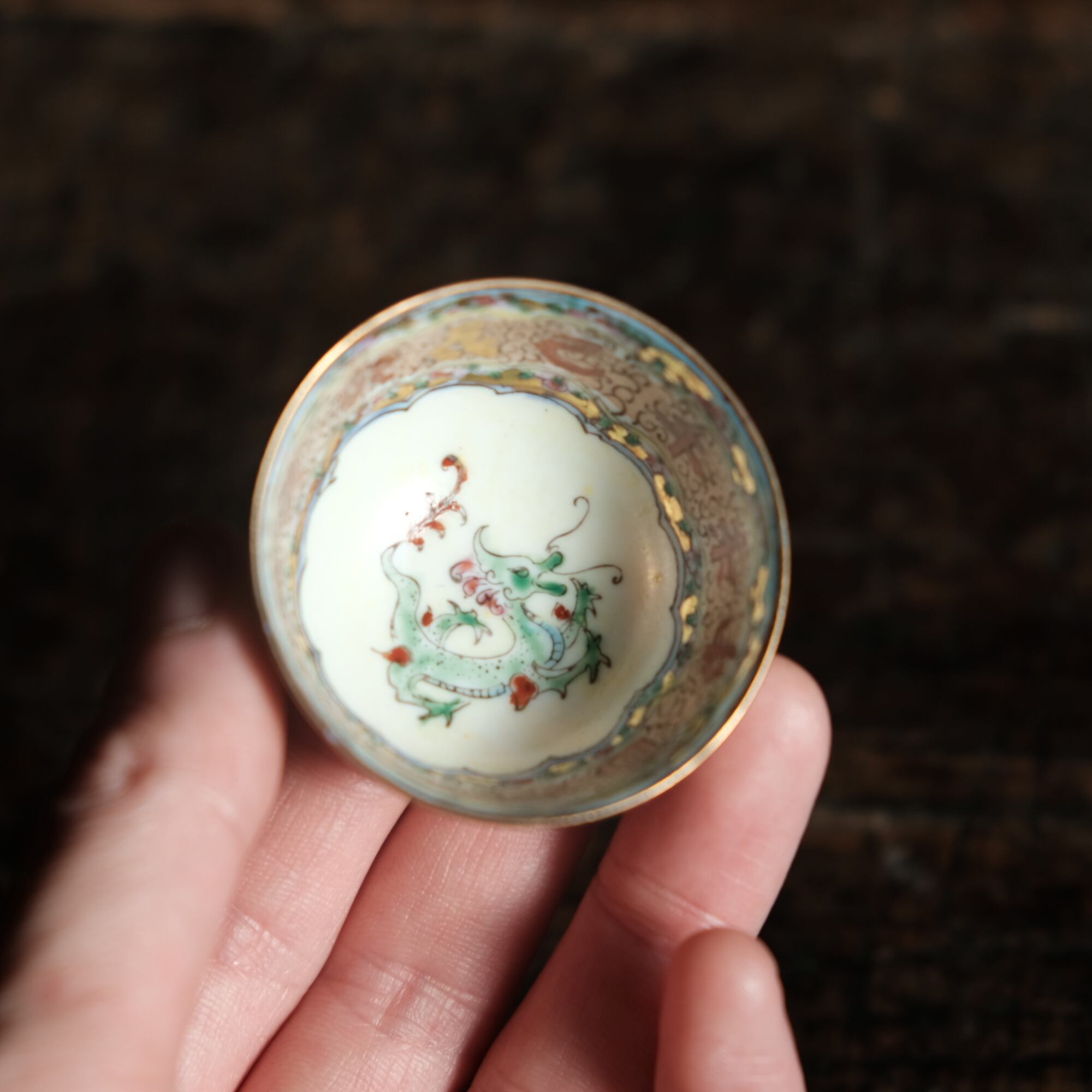 見込みに龍(辰)◆チャイナレトロで可愛い。中国産 干支文赤絵金彩小ぶり猪口 花尽くし。シノワズリ