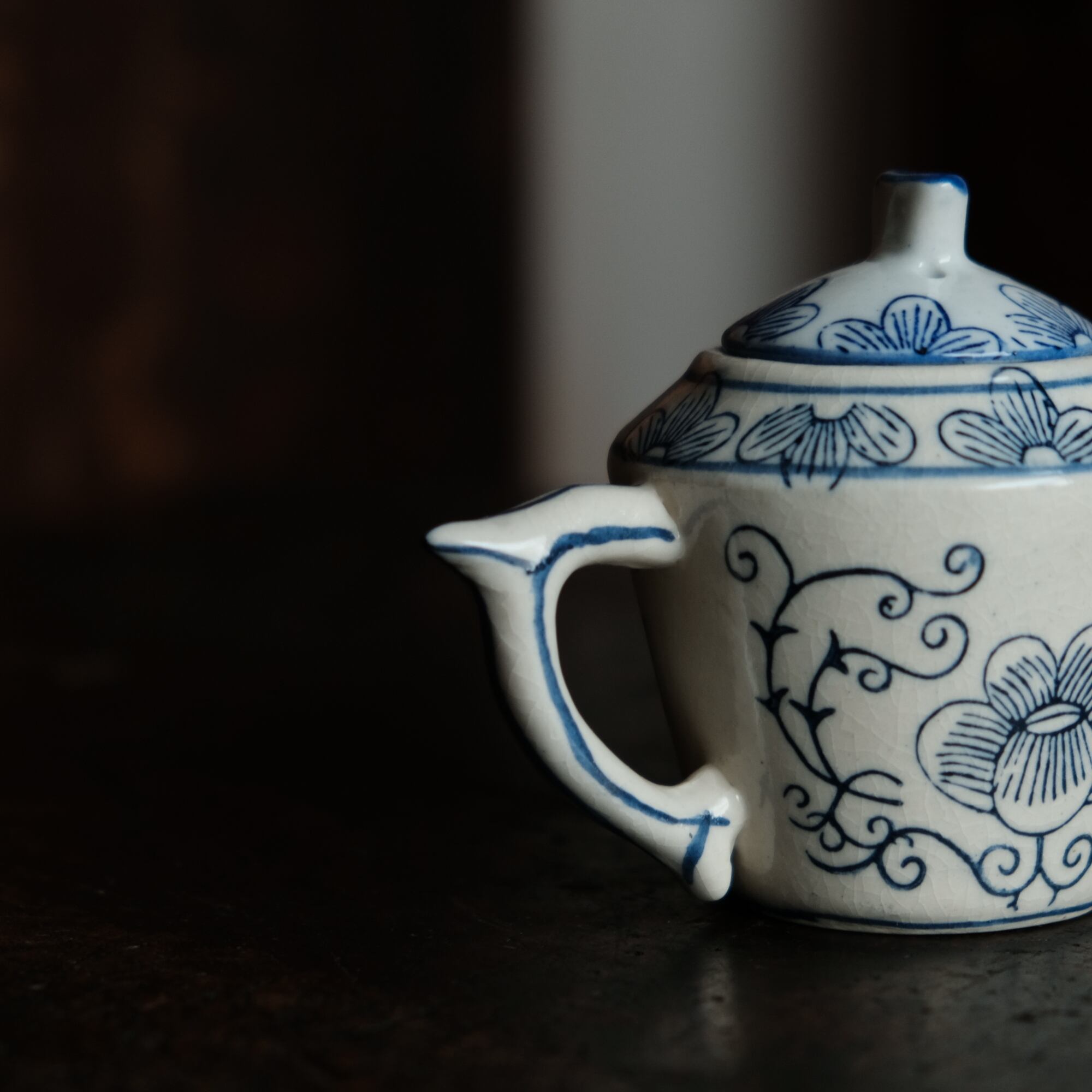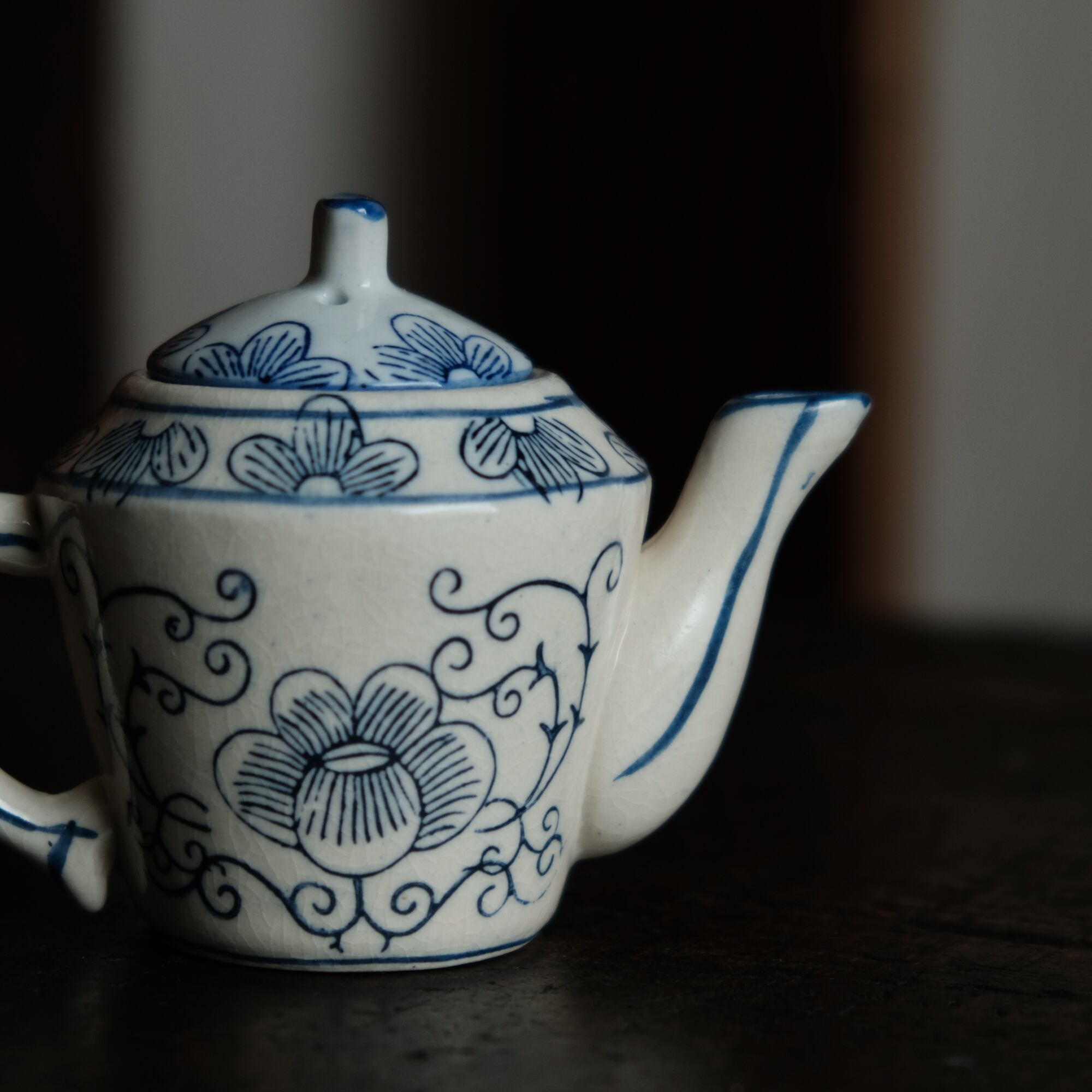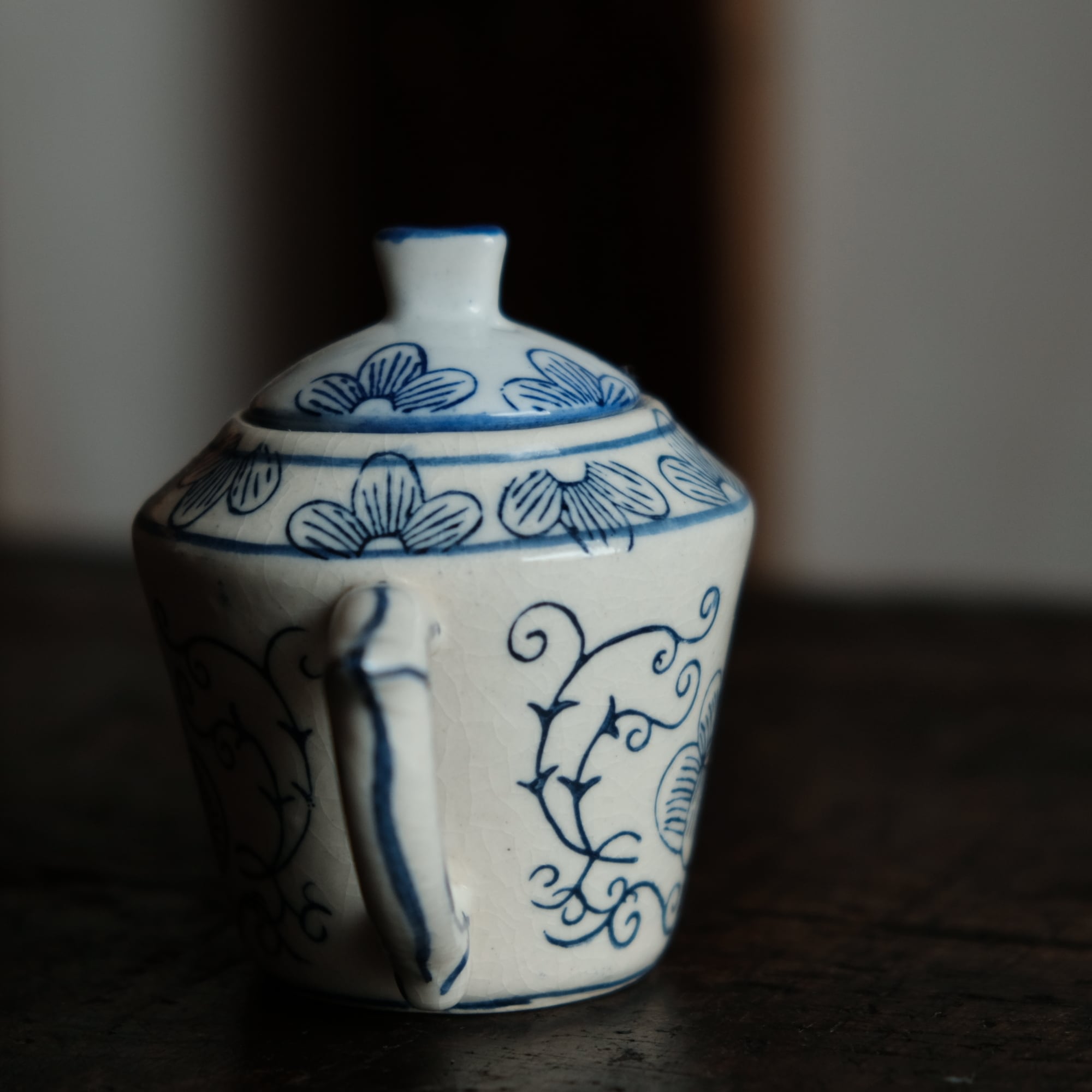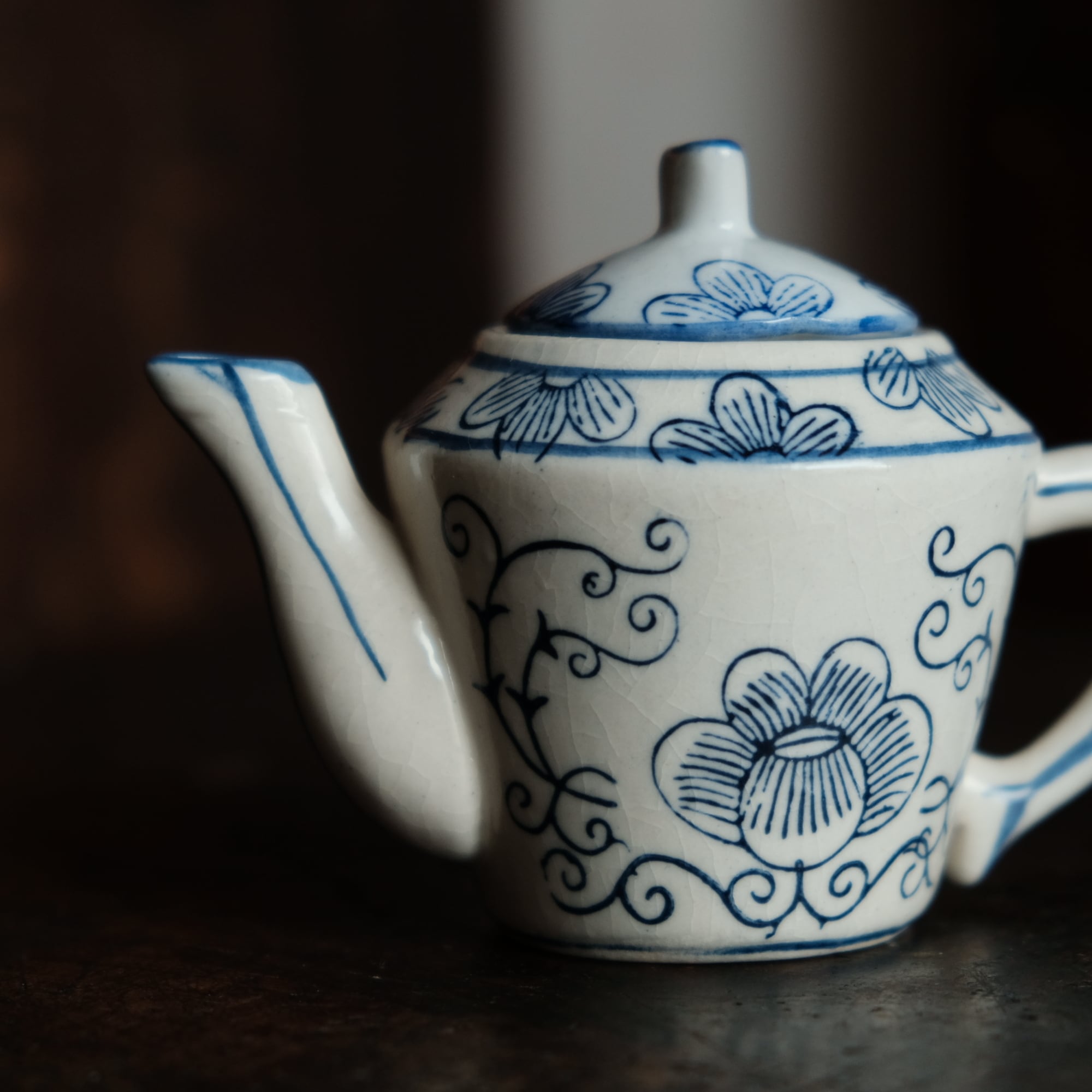 乾隆年製◆中国産 花唐草文染付小ぶり急須 煎茶茶器 中国茶 インテリアオブジェ シノワズリ 【アマテ】