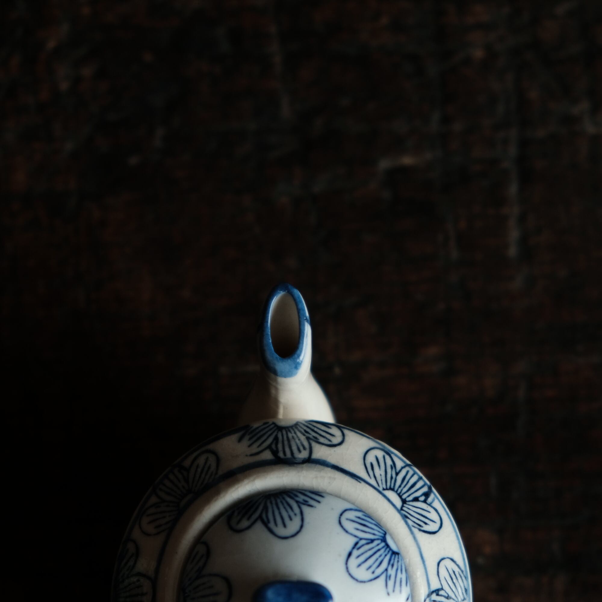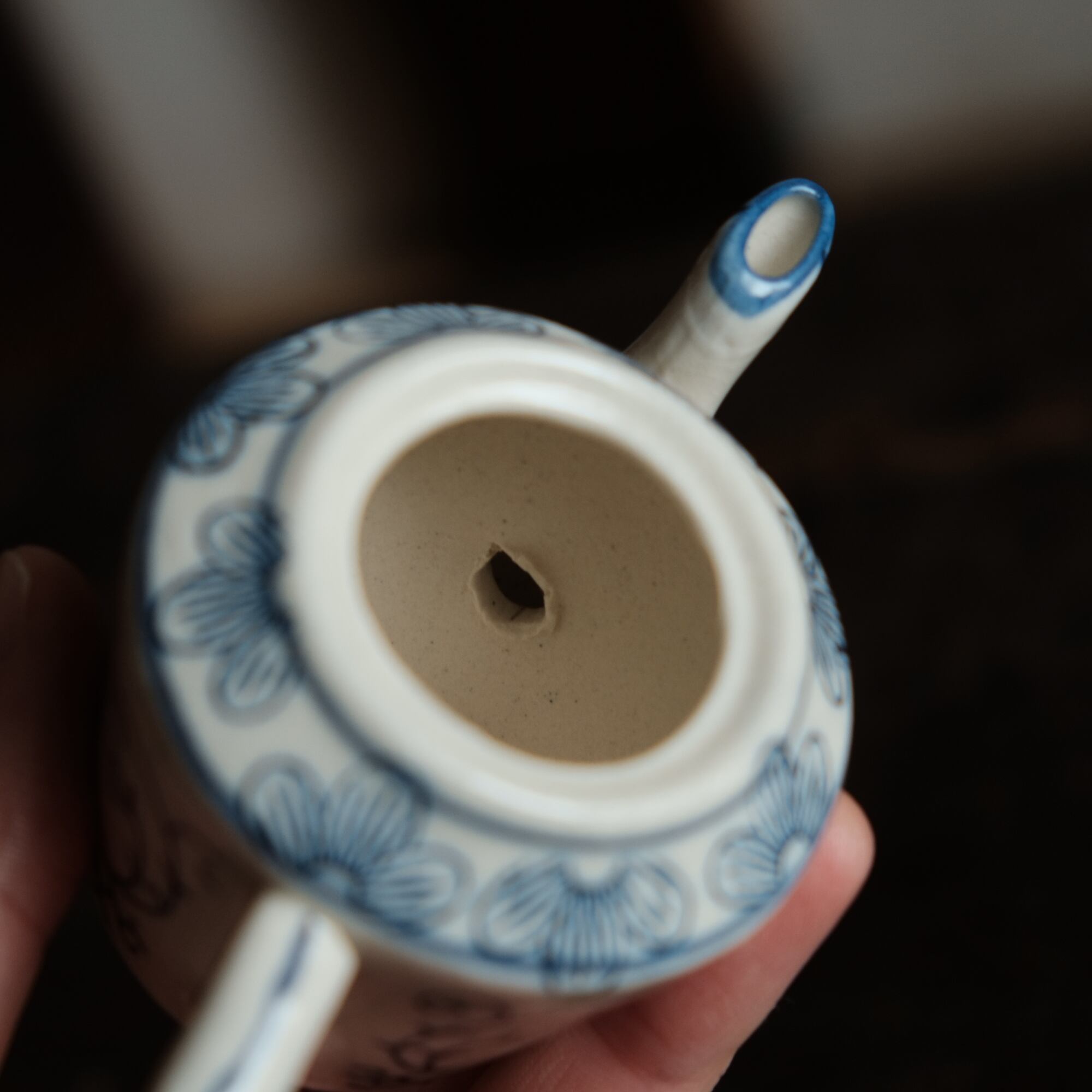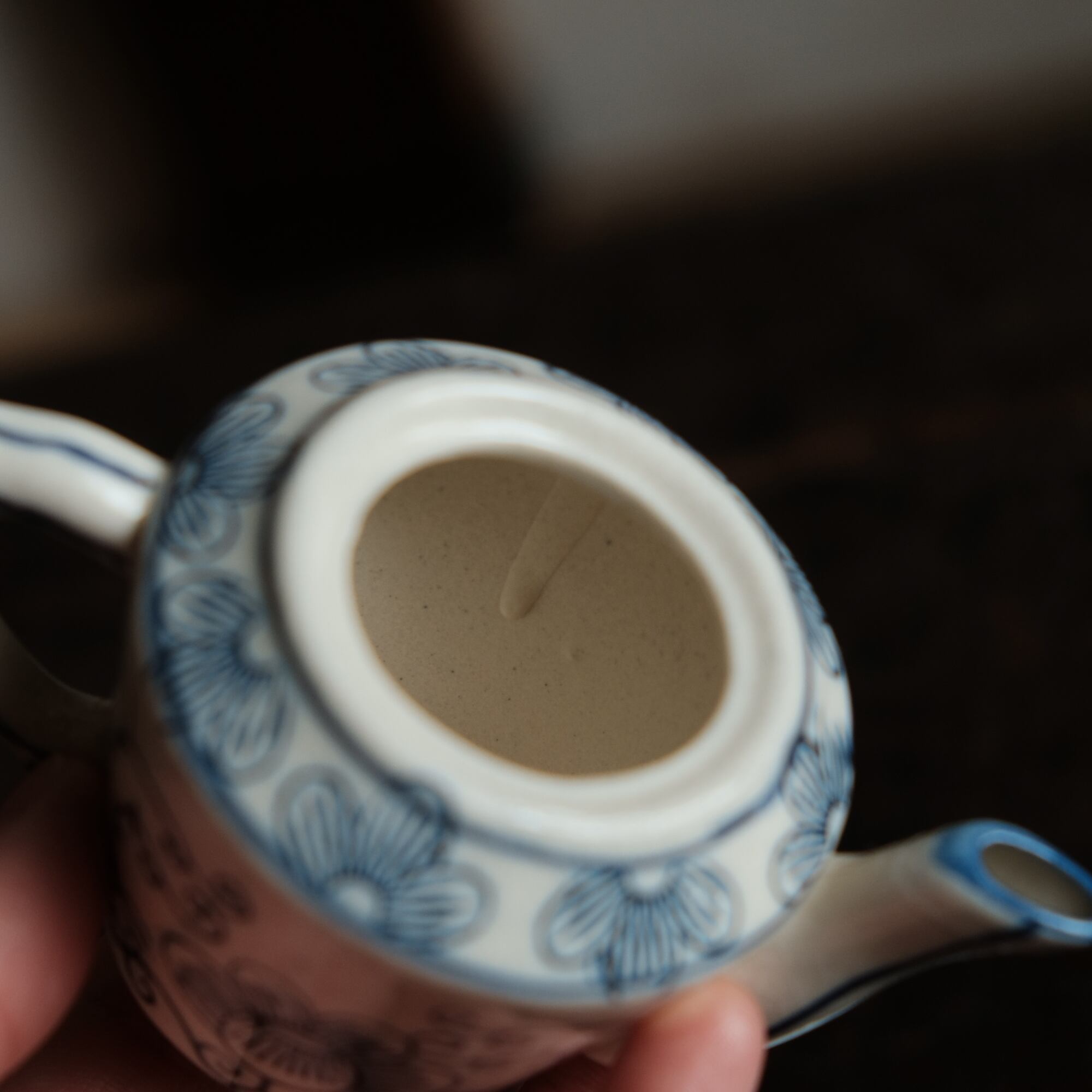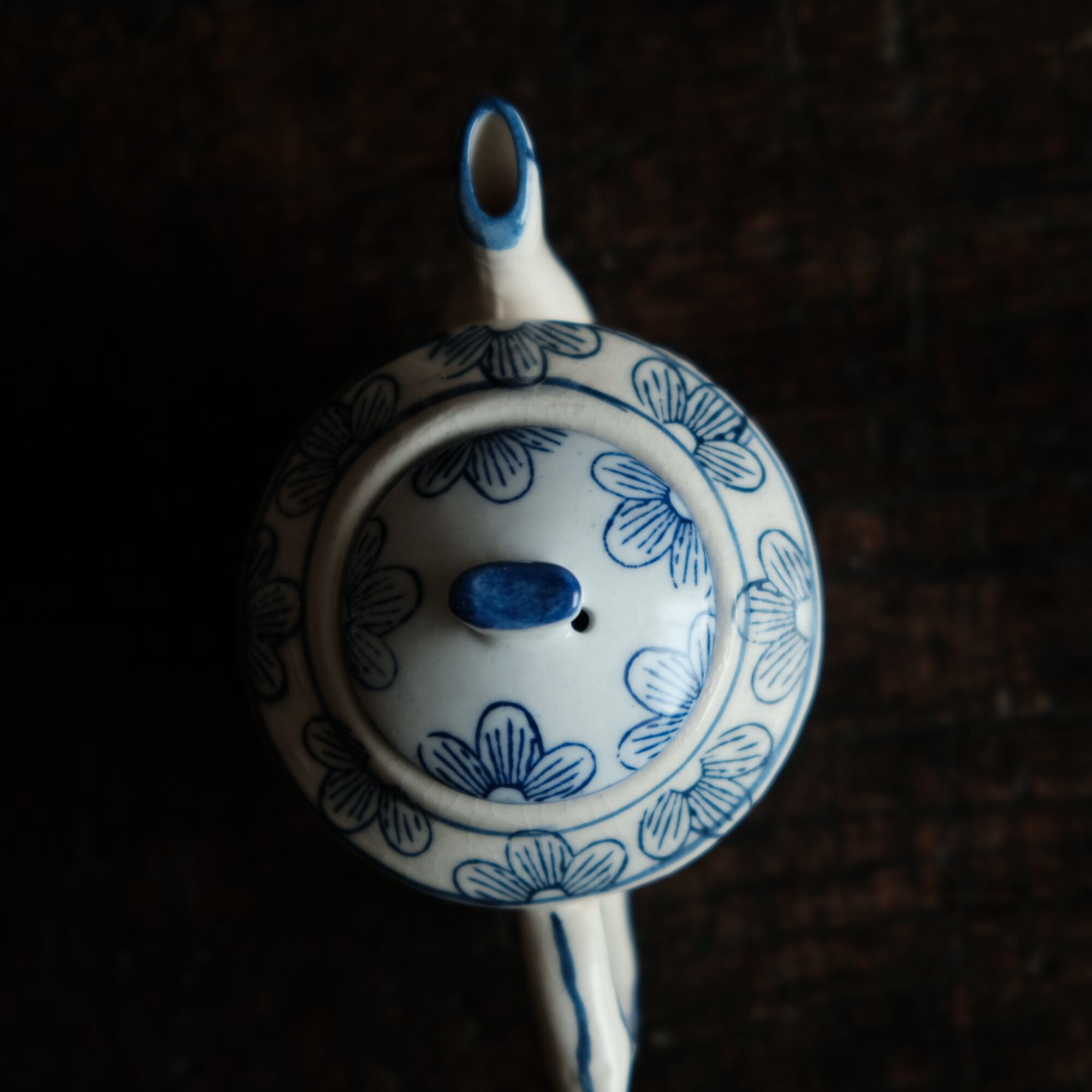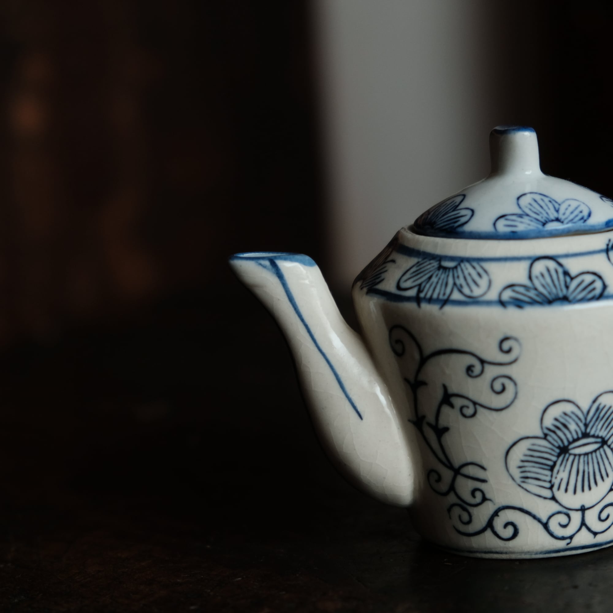 乾隆年製◆中国産 花唐草文染付小ぶり急須 煎茶茶器 中国茶 インテリアオブジェ シノワズリ 【アマテ】
