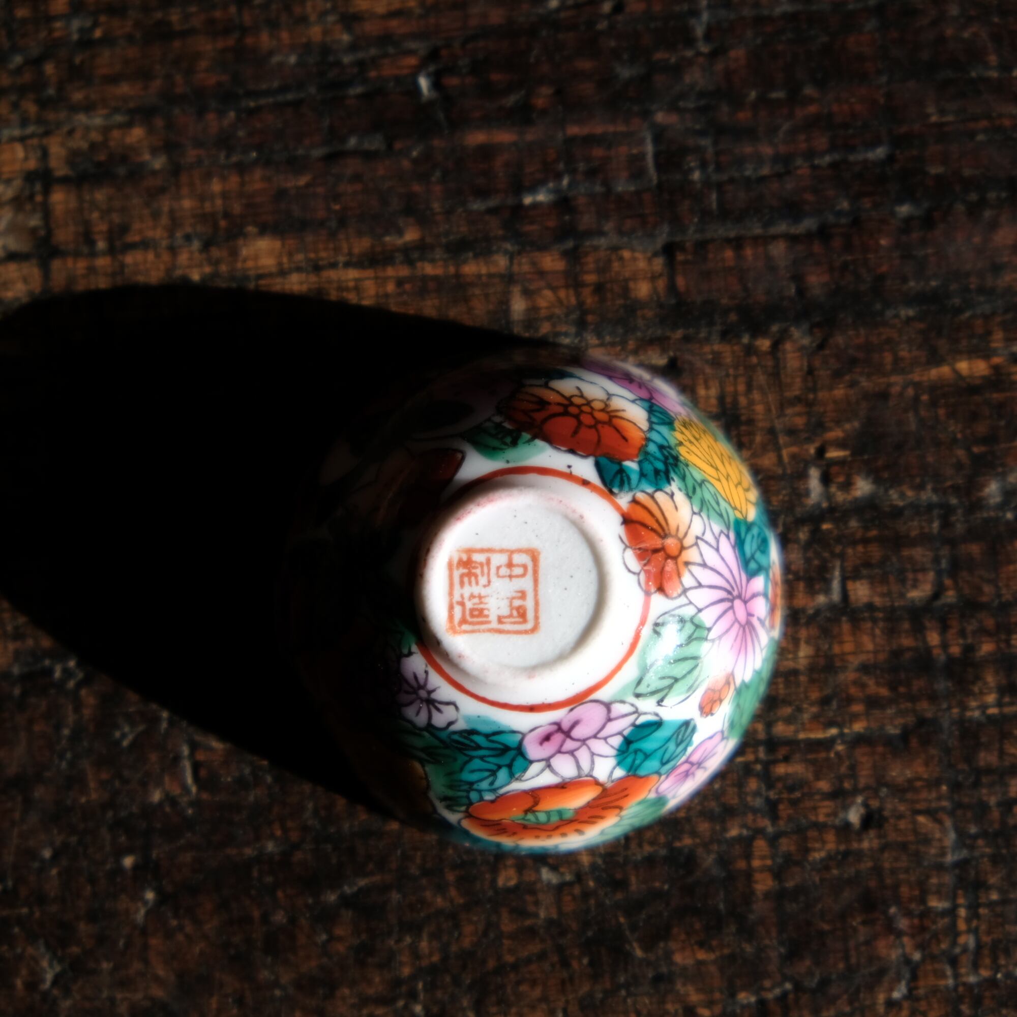 、手描きならではの色の移り、小さな窯傷や経年の擦れ、微々たる器の形の歪み、黒点、凹凸、