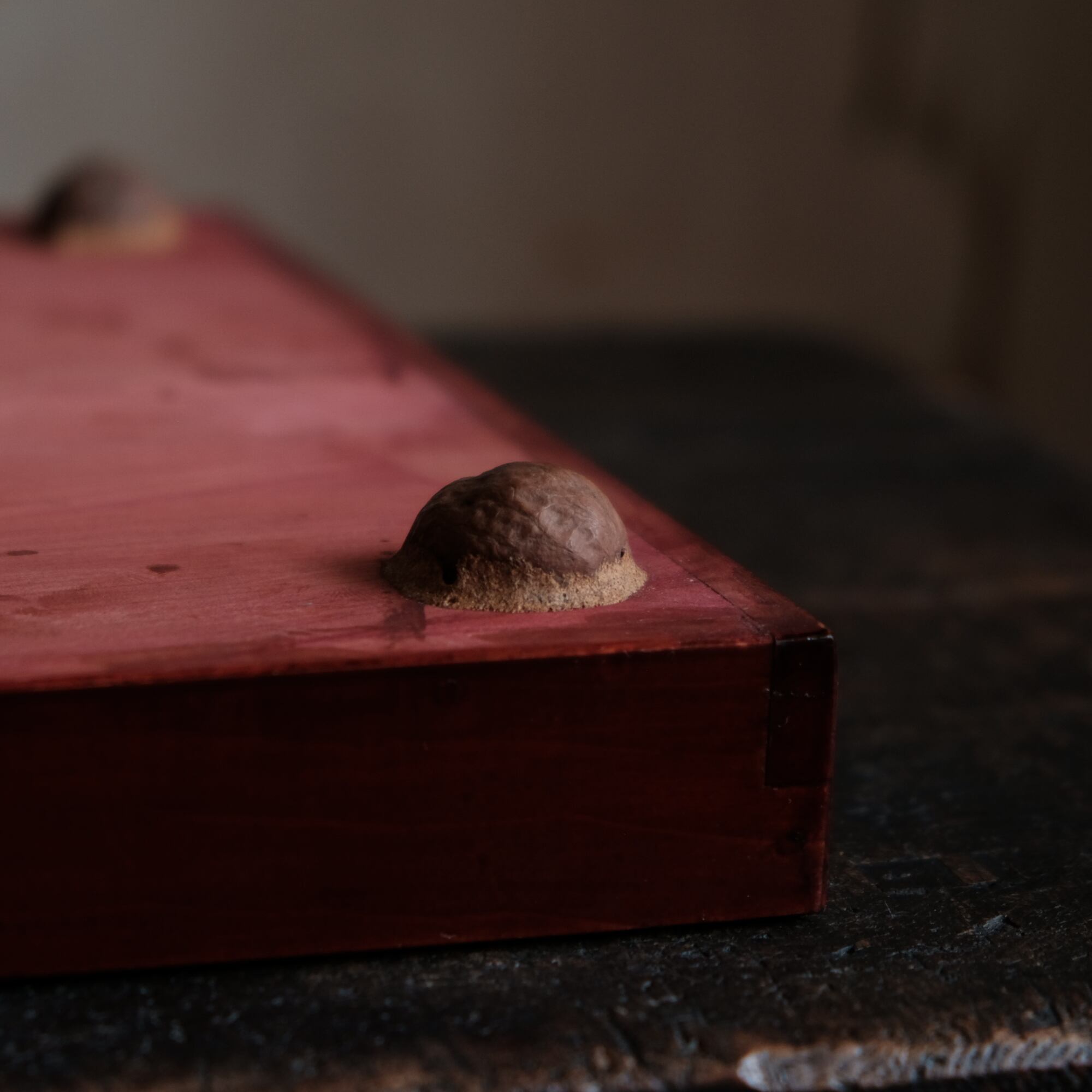 半割りした胡桃が脚になっている珍しいデザインです。