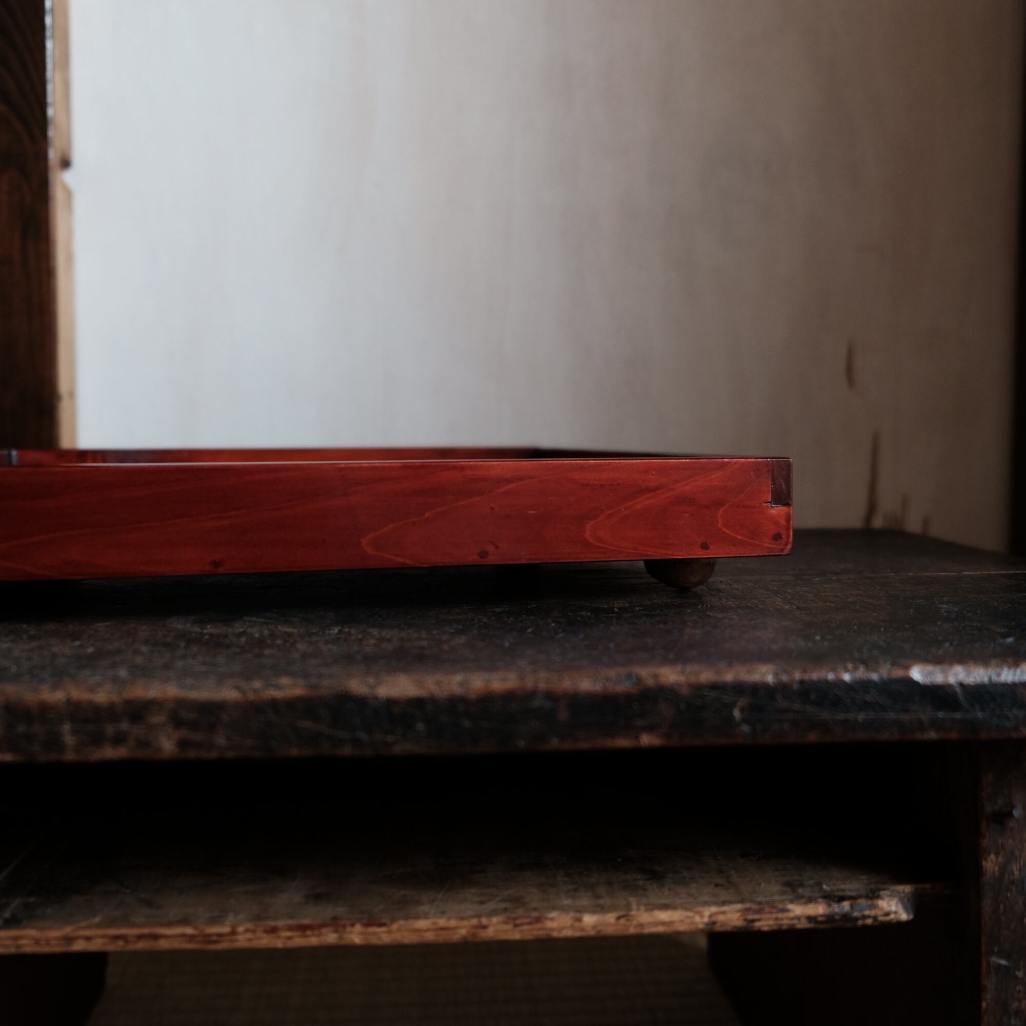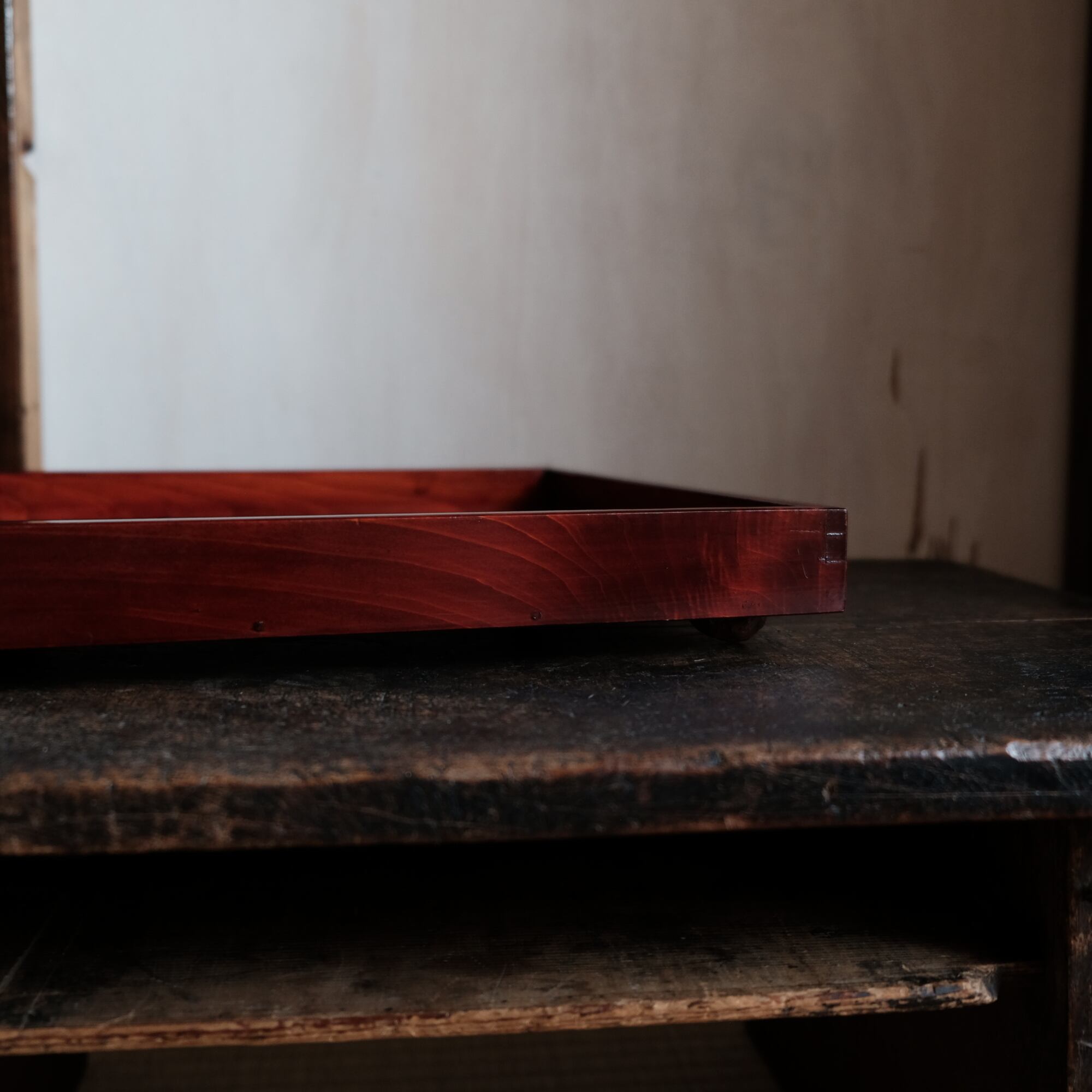 深く美しい色味◆伊勢漆器 胡桃脚膳 角盆 古物 古民家 骨董・antiques 明治〜昭和初期 b2