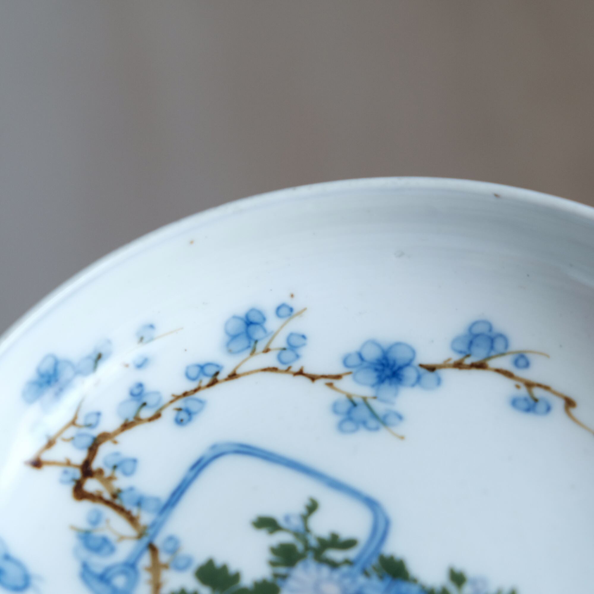 後天的な部分でいえば縁の金彩の微々たるスレ・高台の微々たるアタリ・窯傷程度のものは見られますが骨董器としてのコンディションはよくまだまだ使用していただけるお品になります。