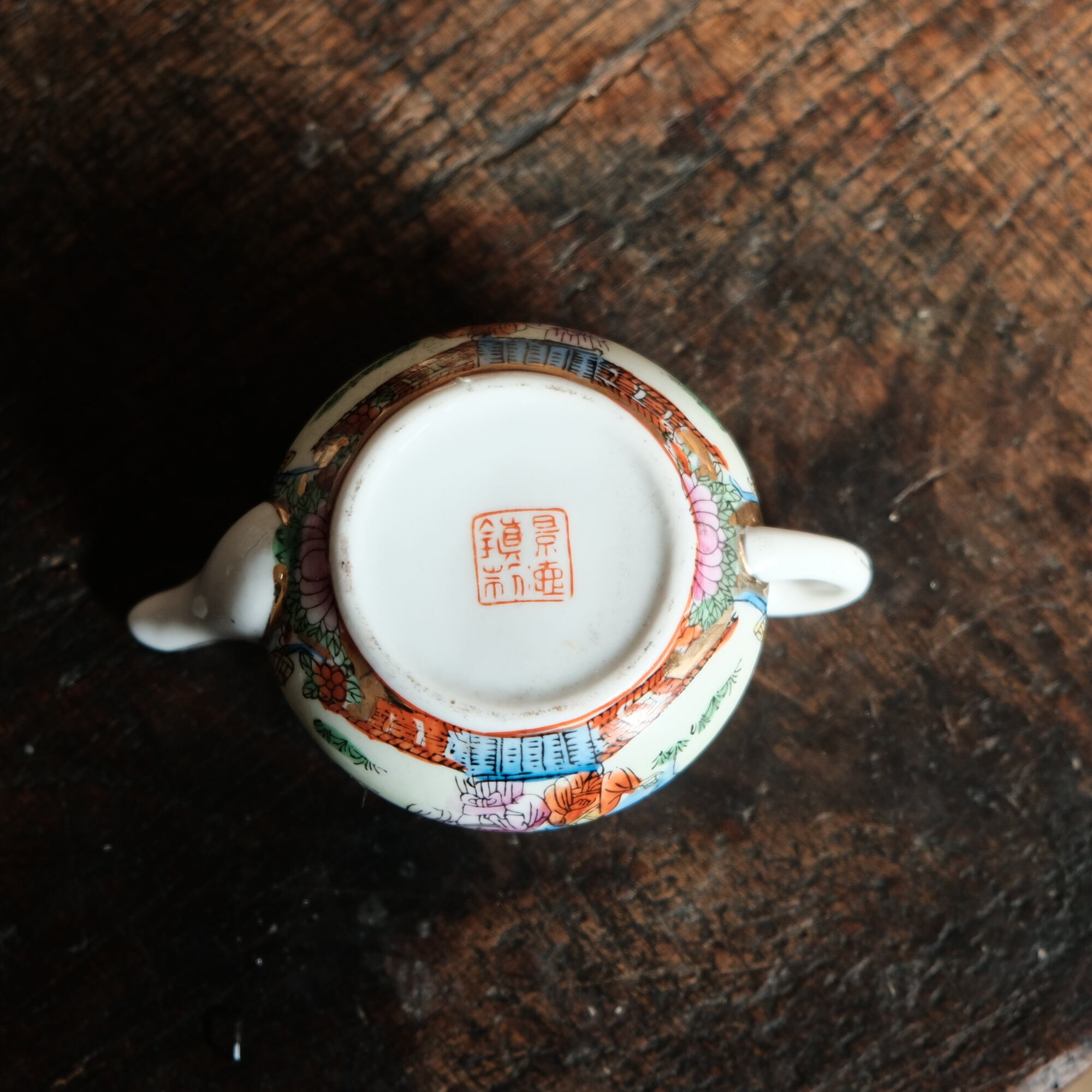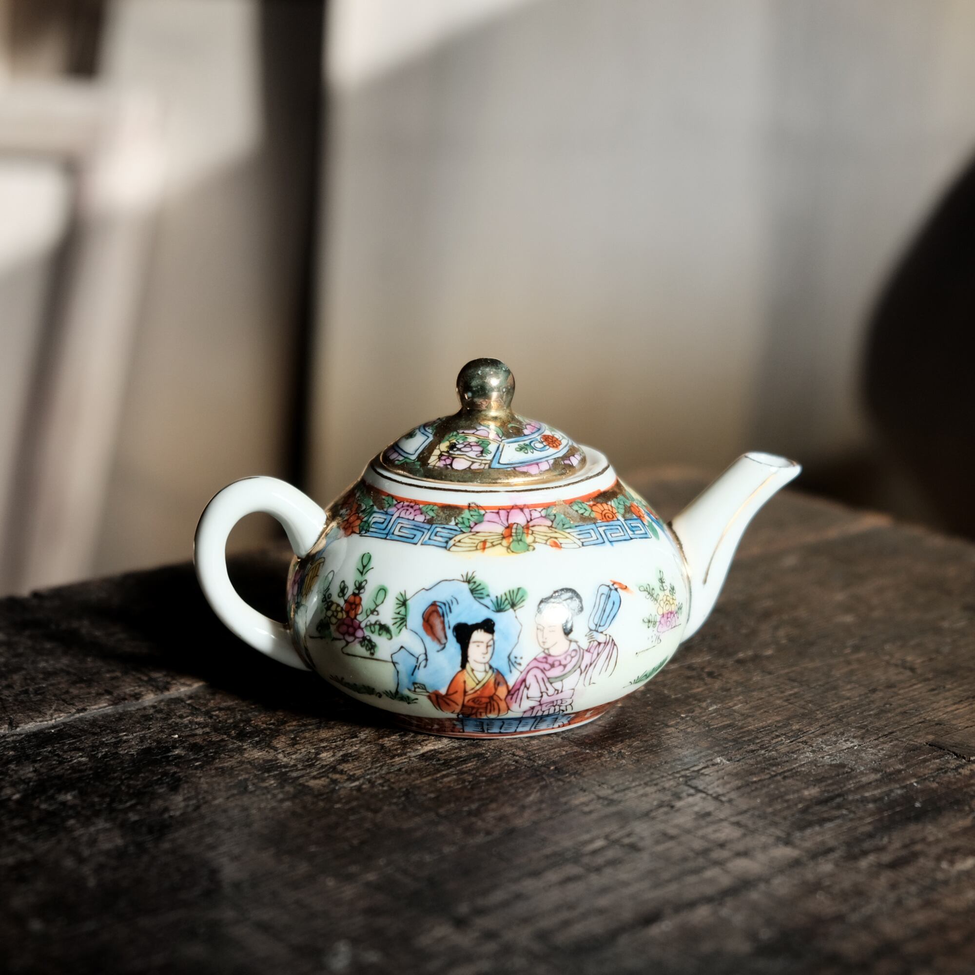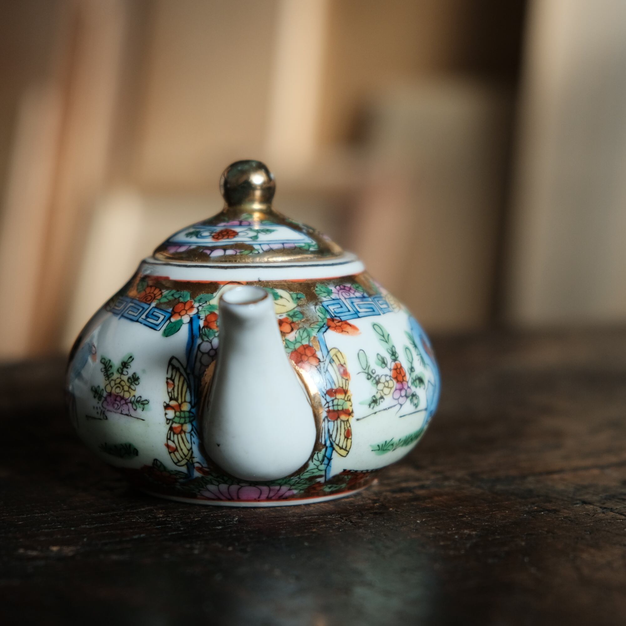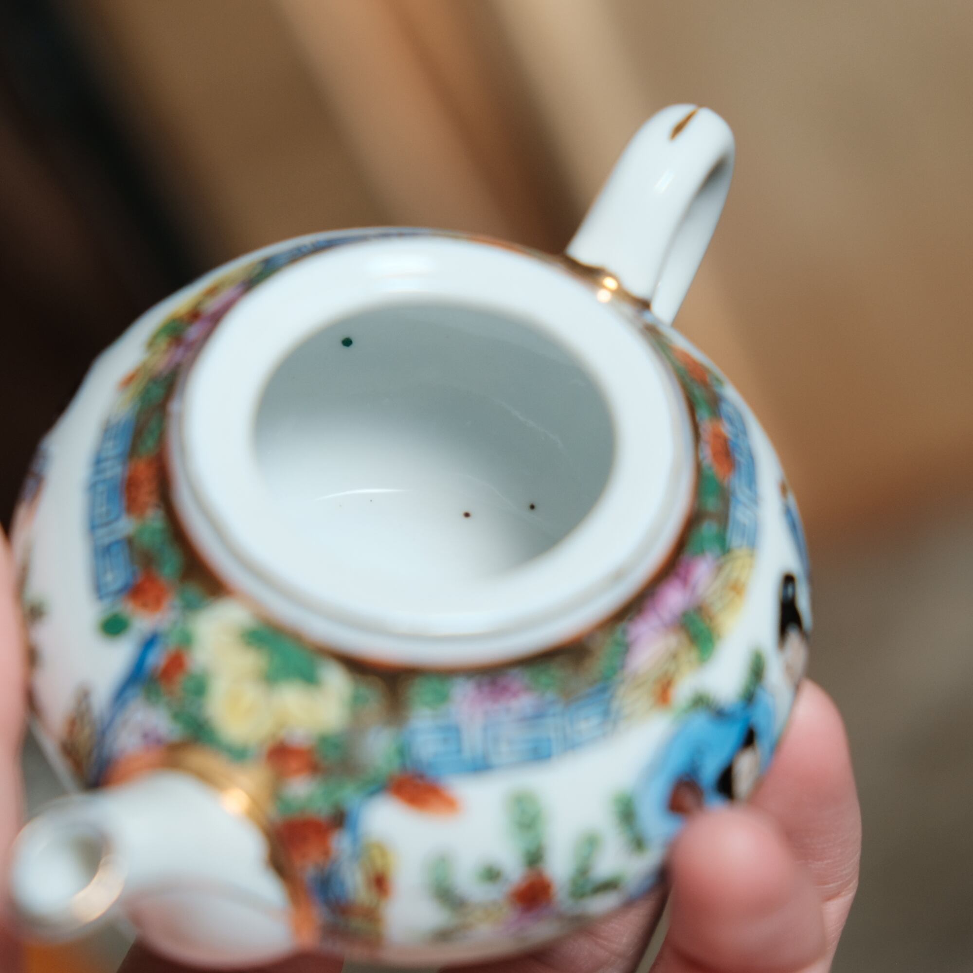 花と蝶々と天女◆中国産 色絵金彩小ぶりな急須 煎茶茶器 チャイナレトロ シノワズリ