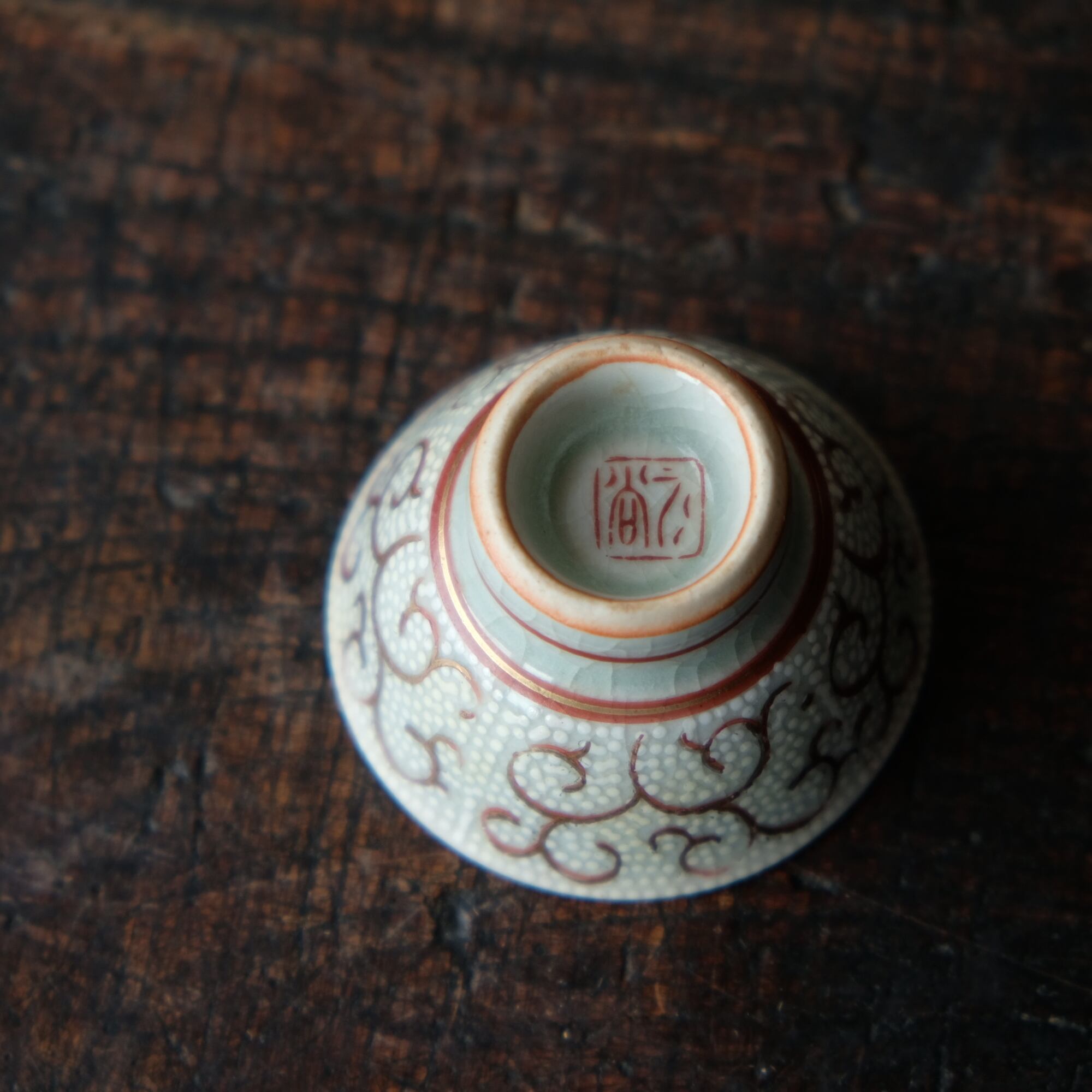 白粒と唐草◇九谷焼 赤絵白粒金彩猪口 丁寧な暮らしに。酒器 骨董・antiques好きにも。