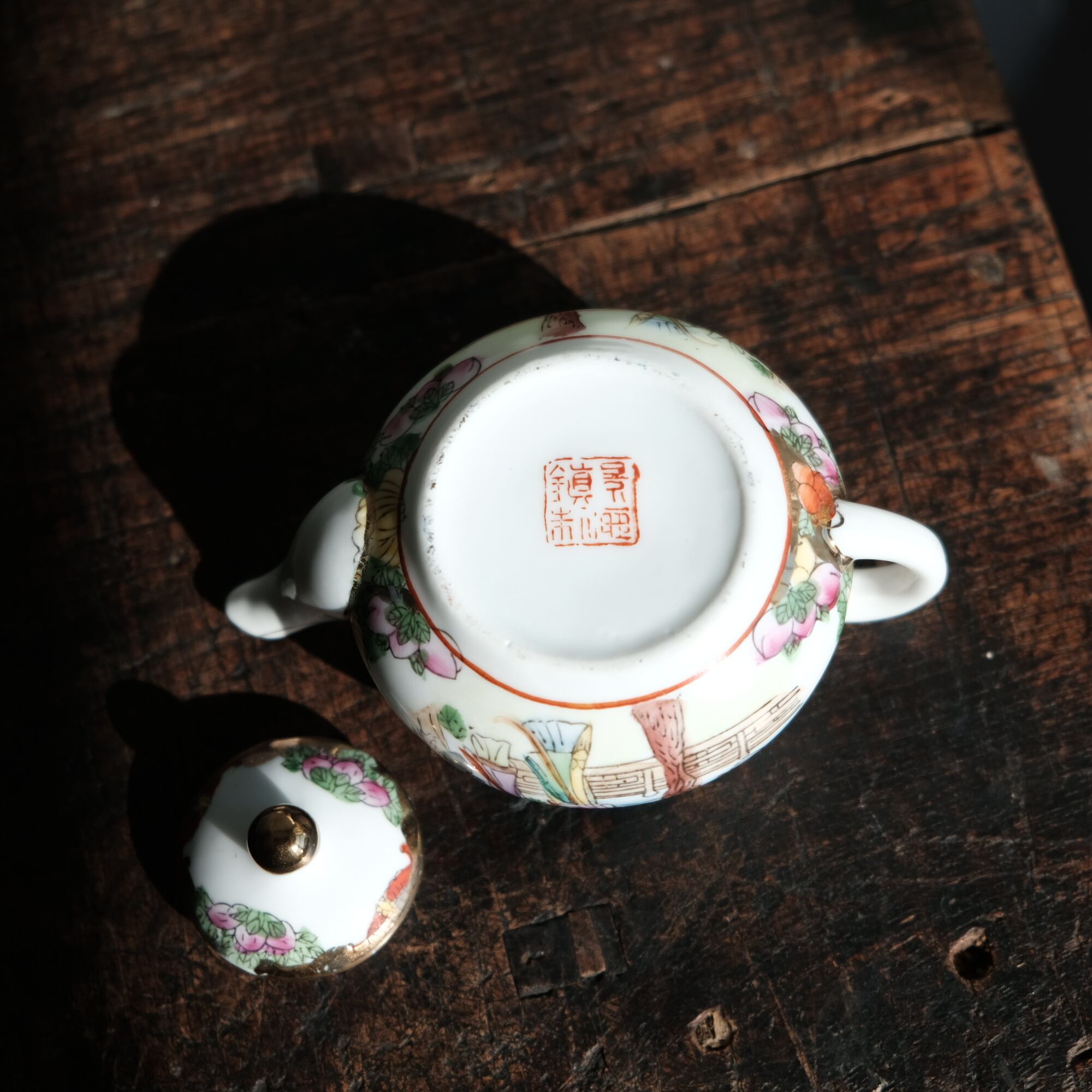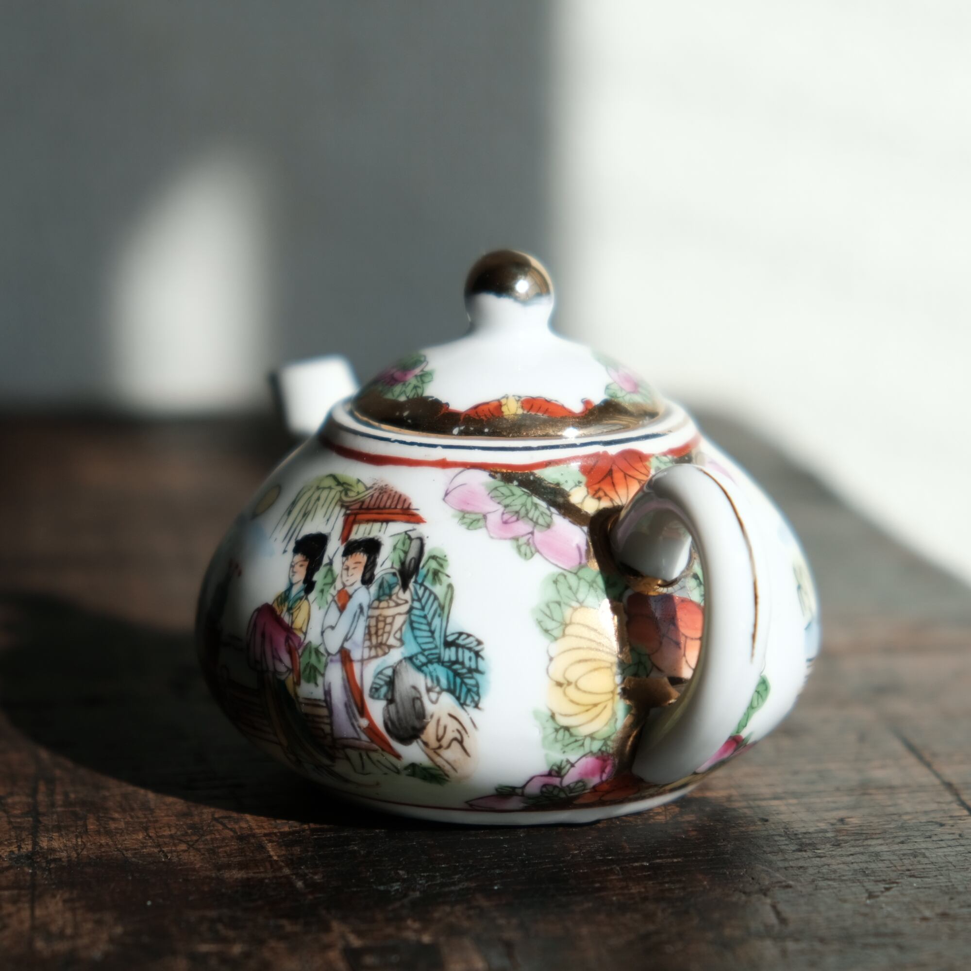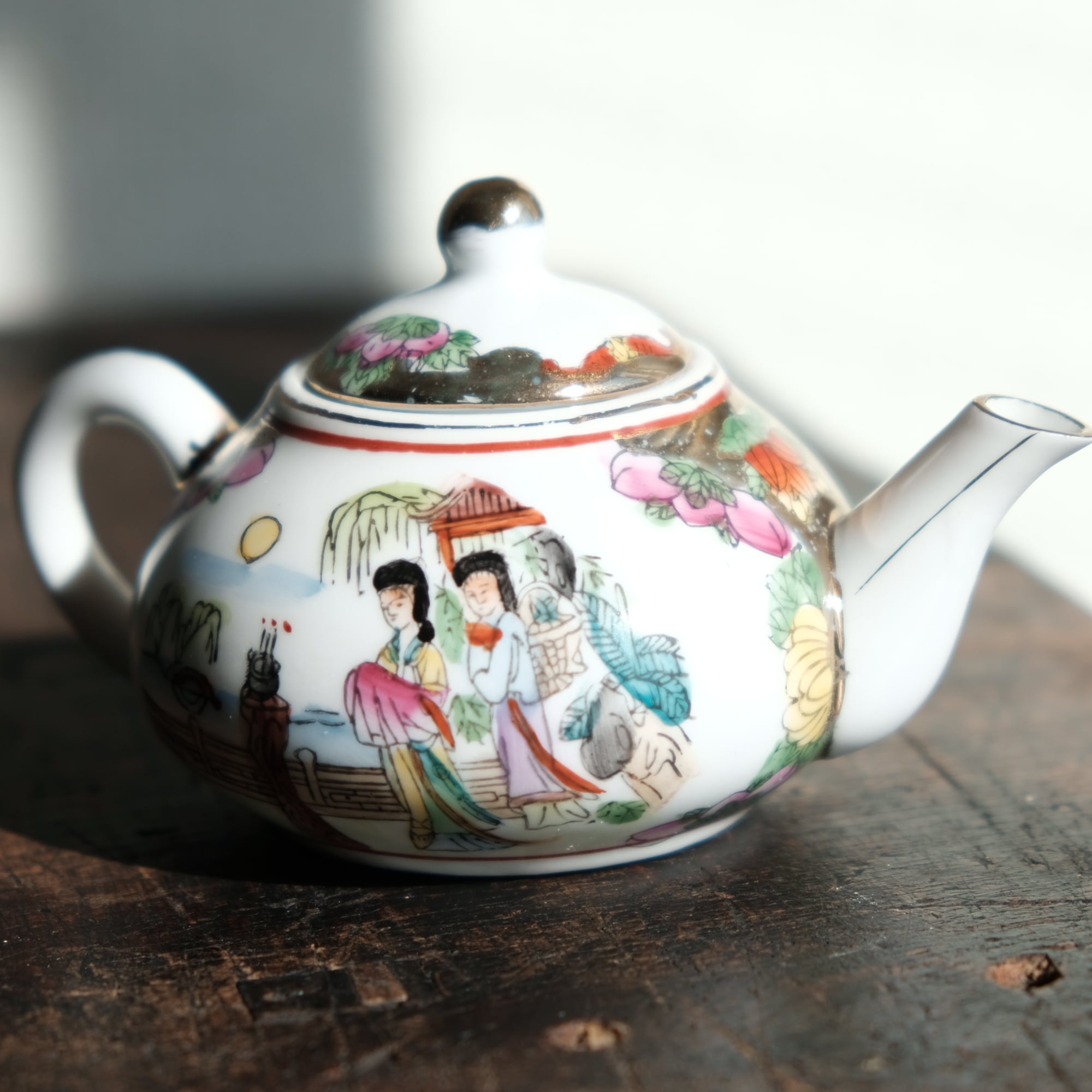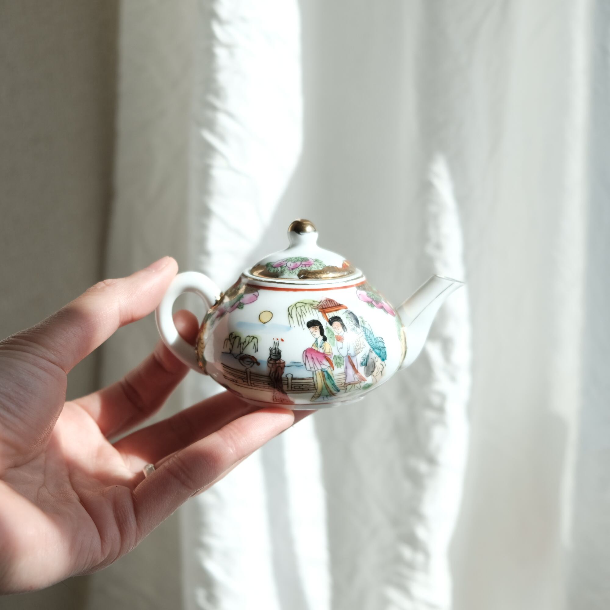 月や桃や皇女が可愛い◇中国景徳鎮 色絵金彩小ぶり急須 煎茶茶器 チャイナレトロ シノワズリ