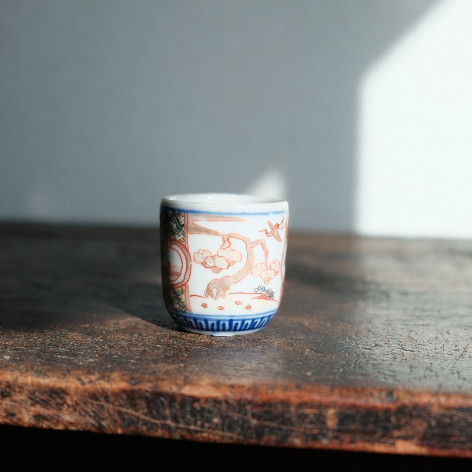 鶴や風景が素敵◆伊万里 赤絵金彩覗き猪口 酒器 骨董品・antiques 幕末〜明治期