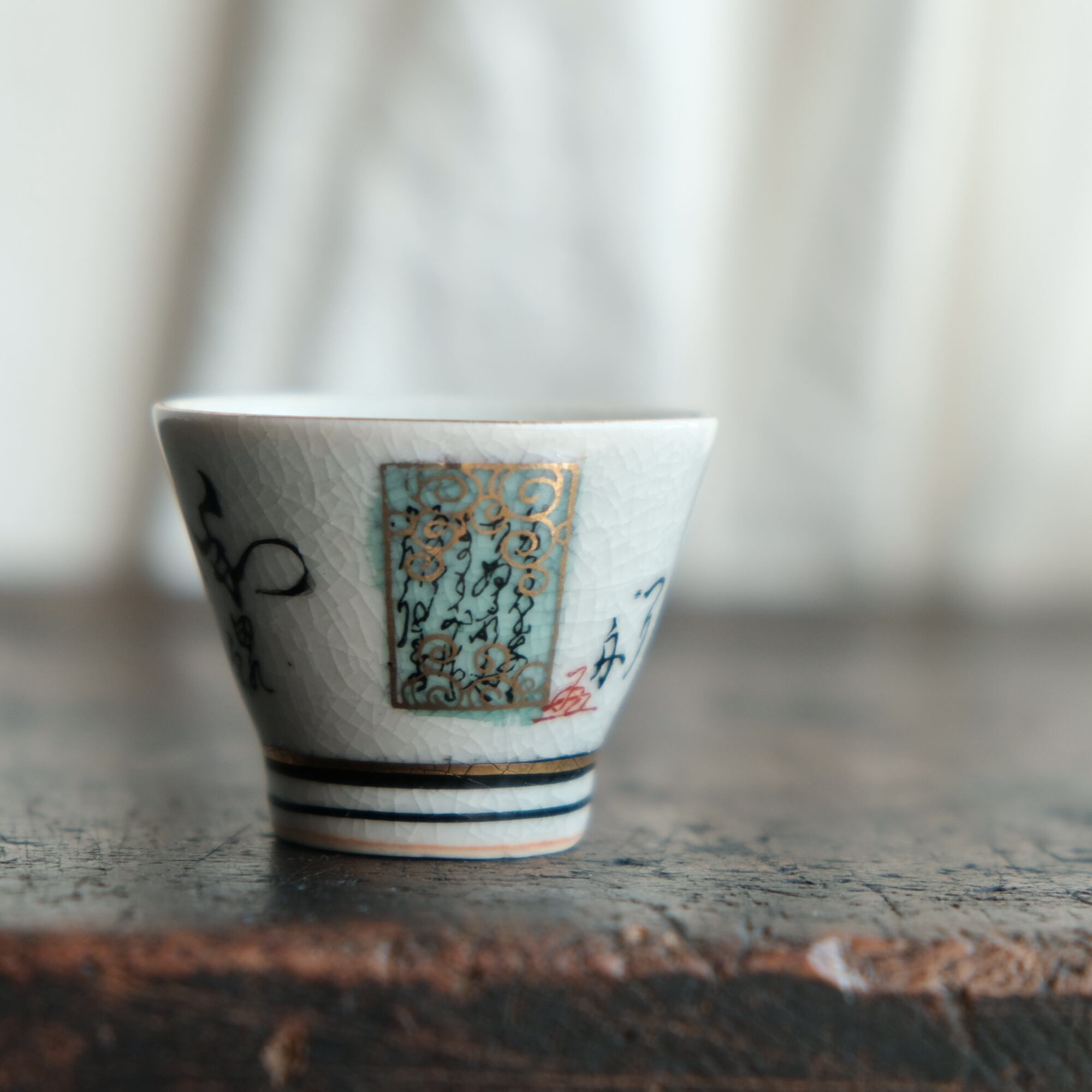 漢字が可愛い◇九谷焼 色絵金彩小ぶり猪口 丁寧な暮らしに。酒器 骨董・antiques好きにも。