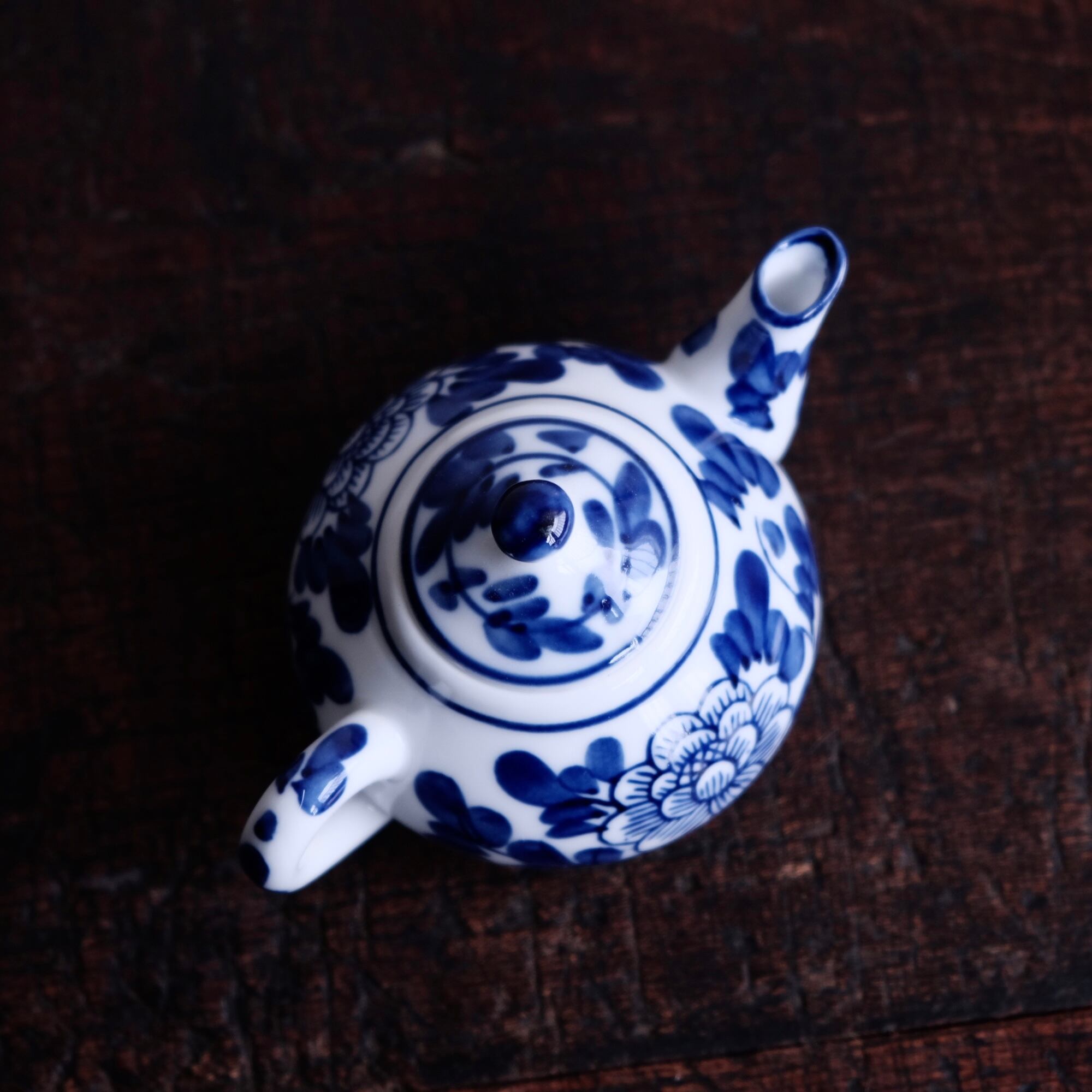 シノワズリな雰囲気◇花で可愛い。中国製造 染付小ぶり急須 煎茶茶器 丁寧な暮らしに。