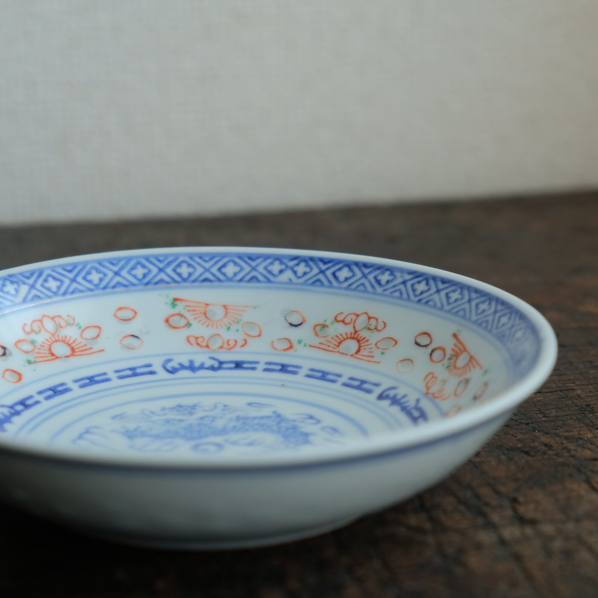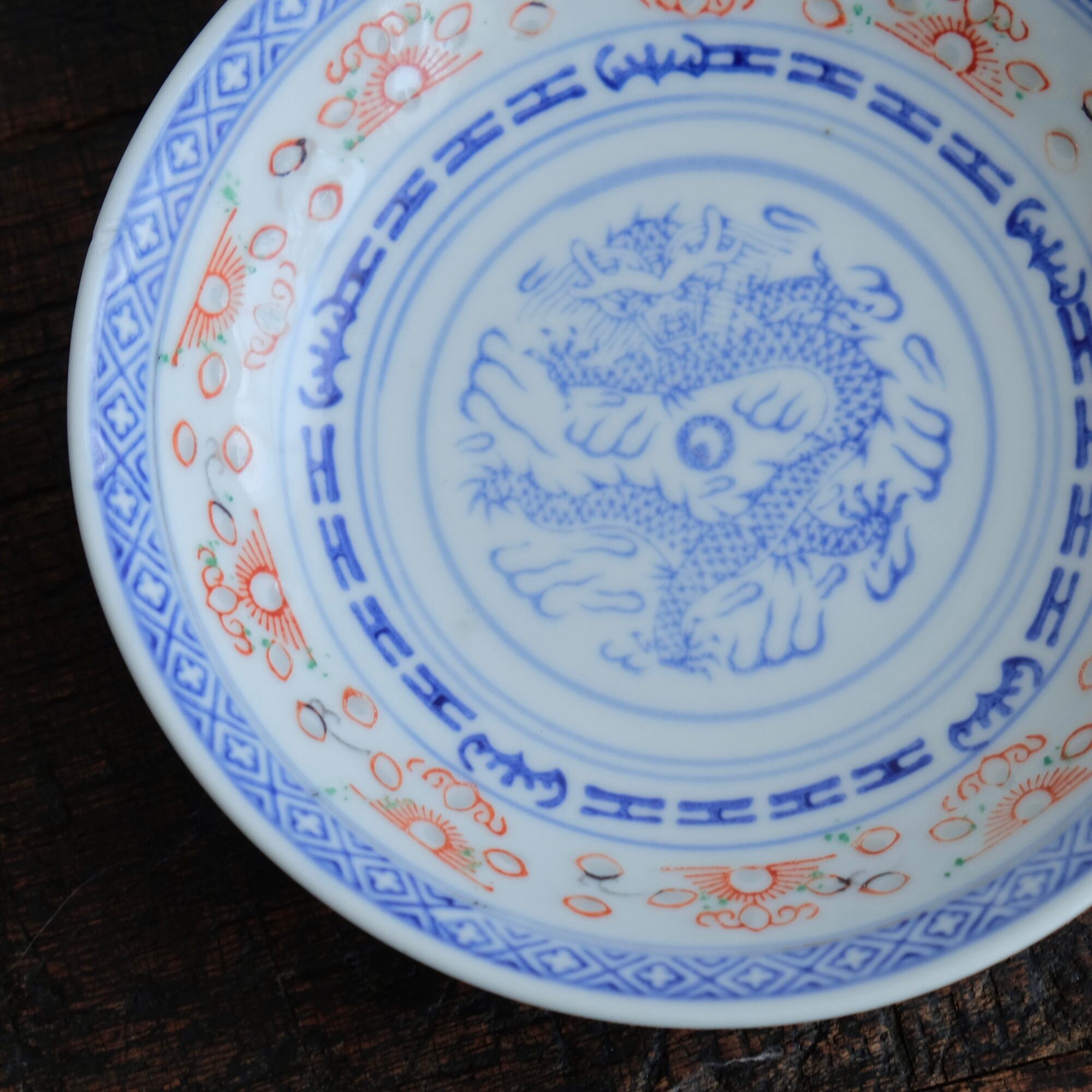 チャイナレトロで可愛い◇見込みに龍。中国景徳鎮 蛍焼赤絵小皿 中華・台湾料理 映え 暮らしに。