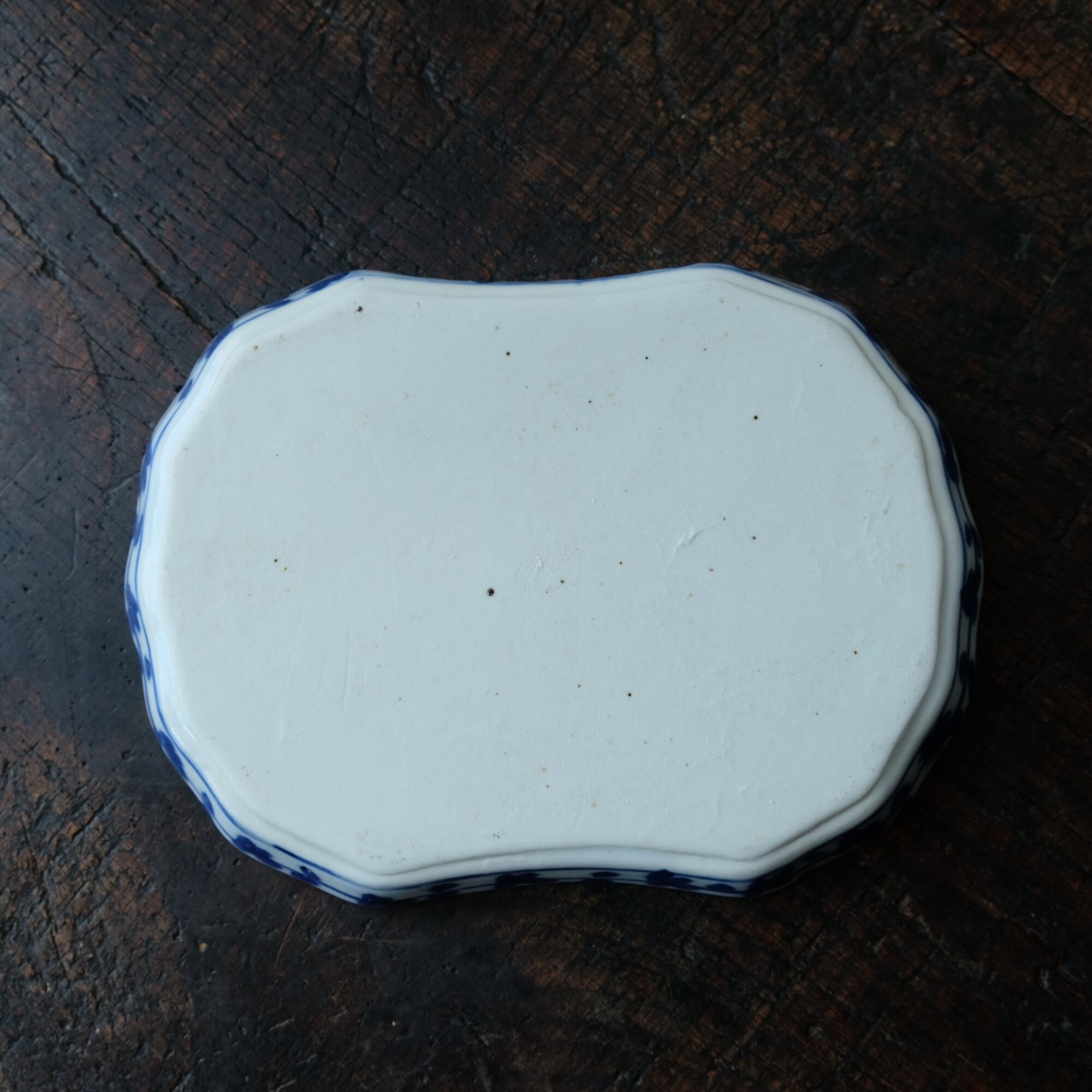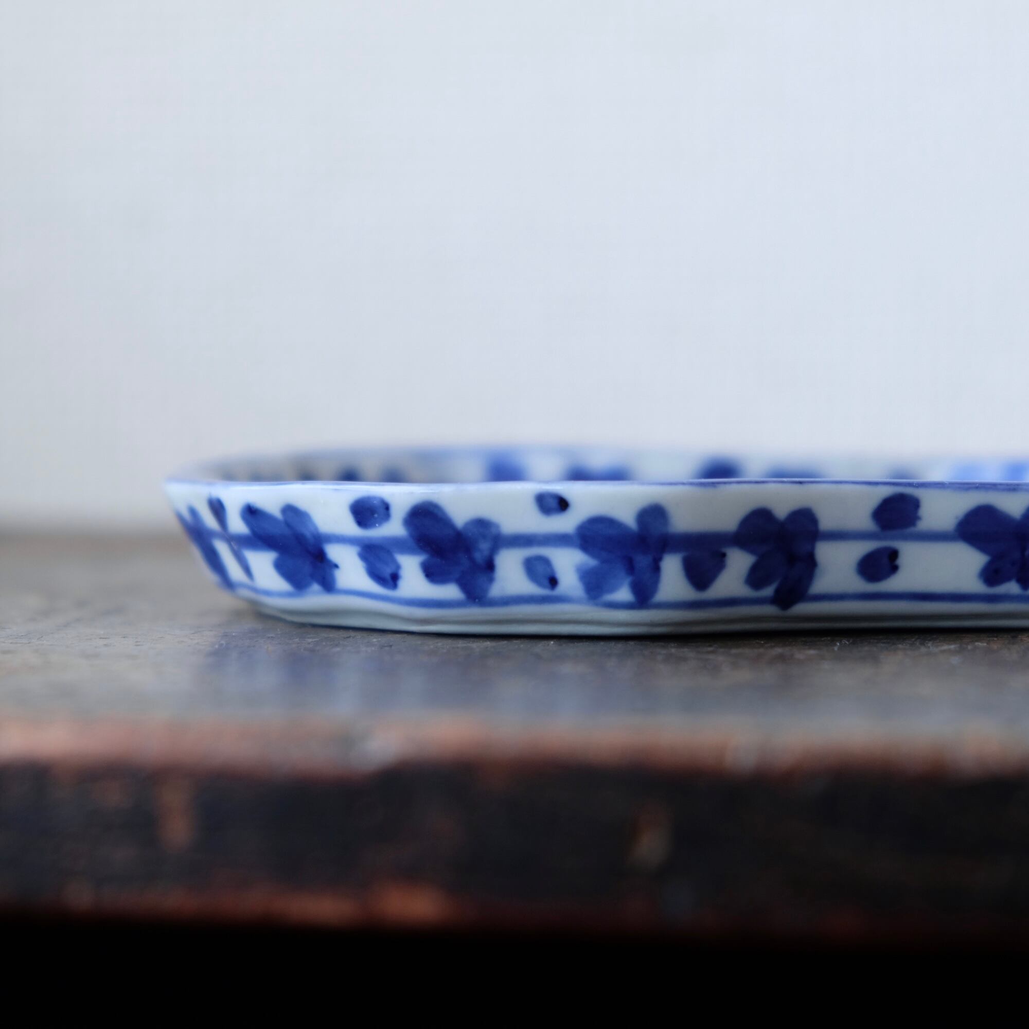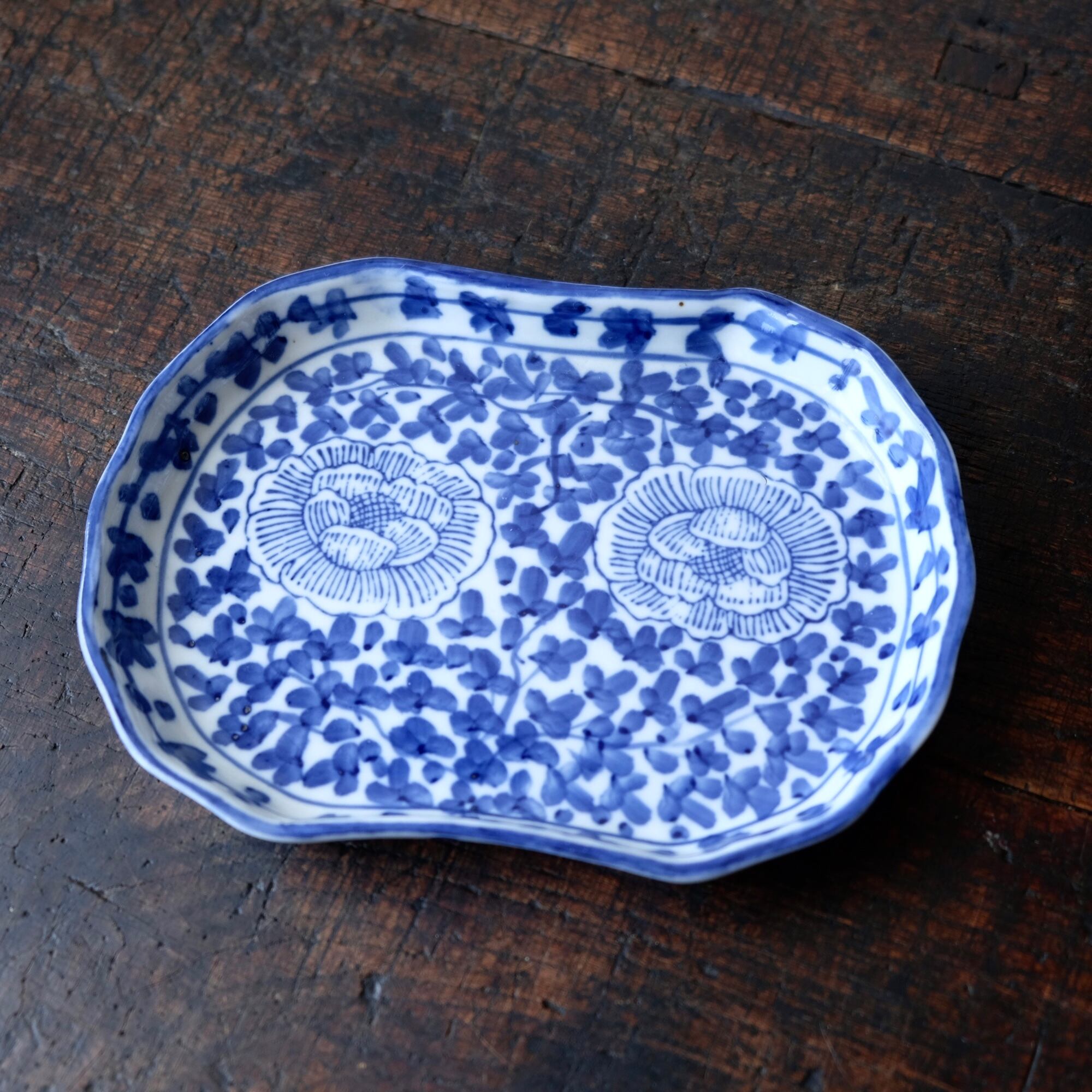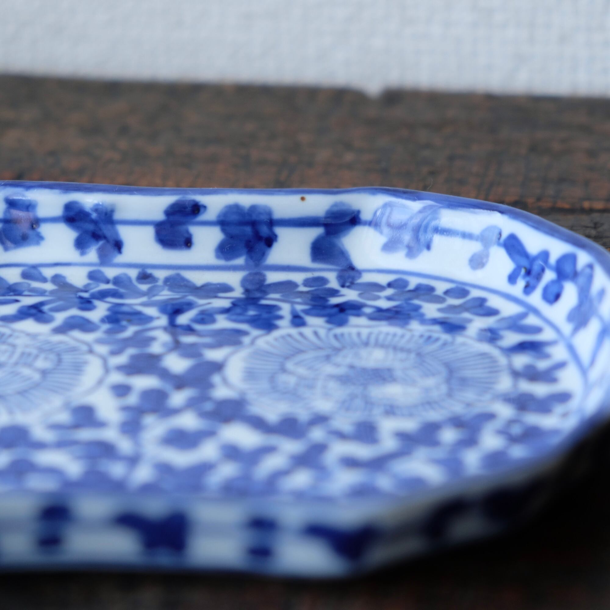 シノワズリな雰囲気◇大きな線描き花文様。中国産 染付平皿プレート 小物置き チャイナレトロ 丁寧な暮らしに。