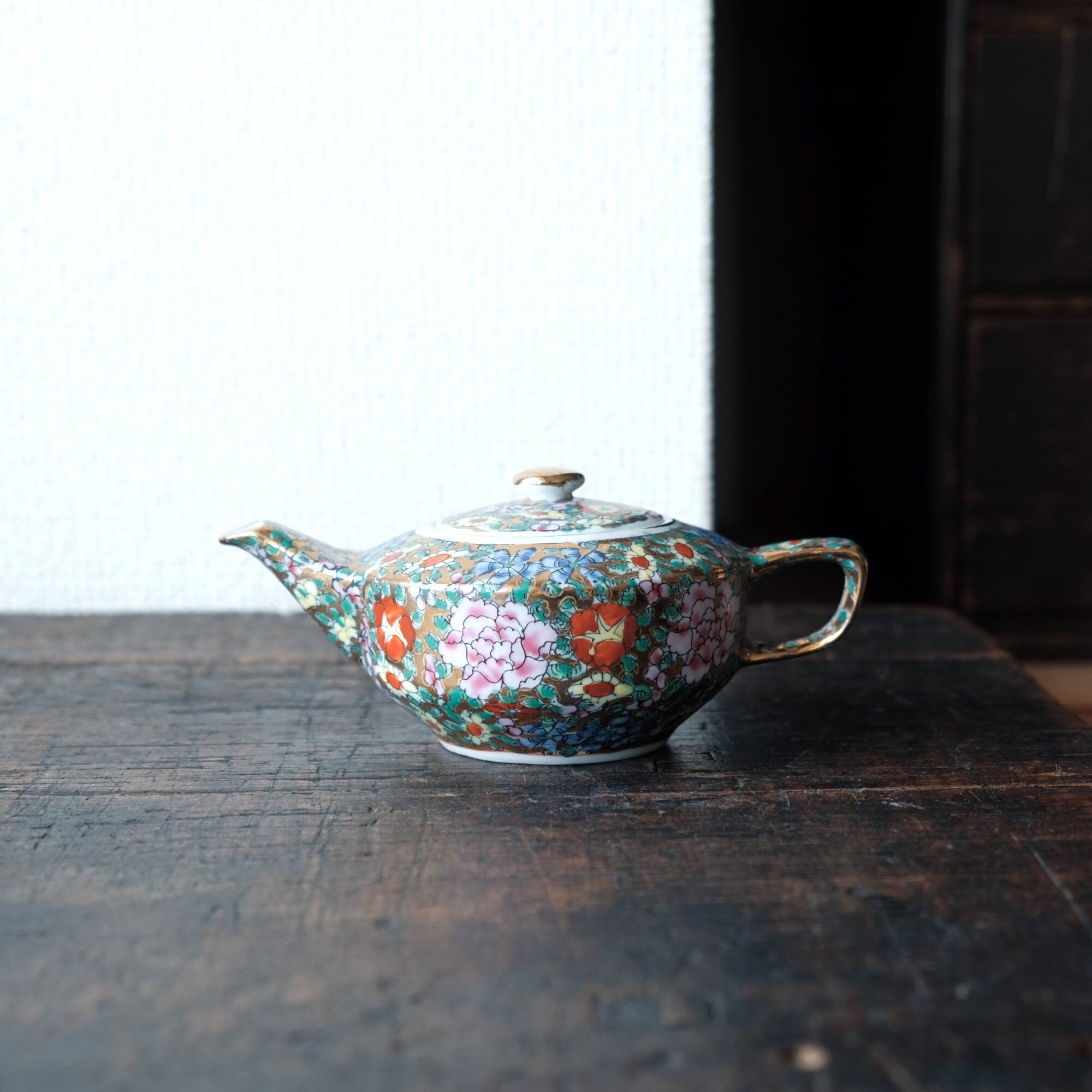 花尽くし◆ランプの様な形状。中国廣彩 色絵金彩急須 チャイナレトロ シノワズリ