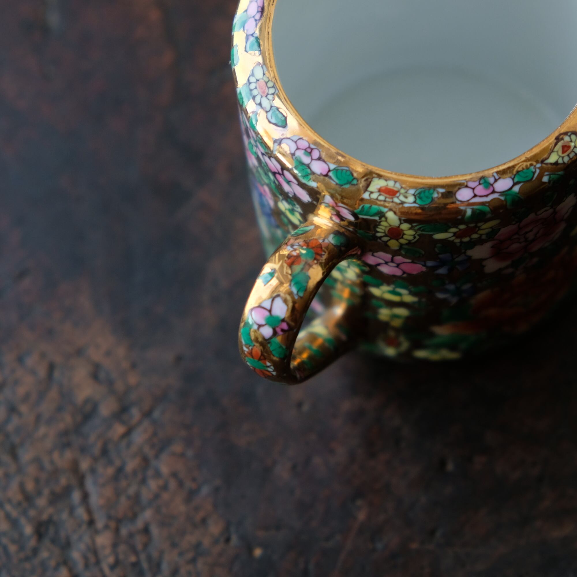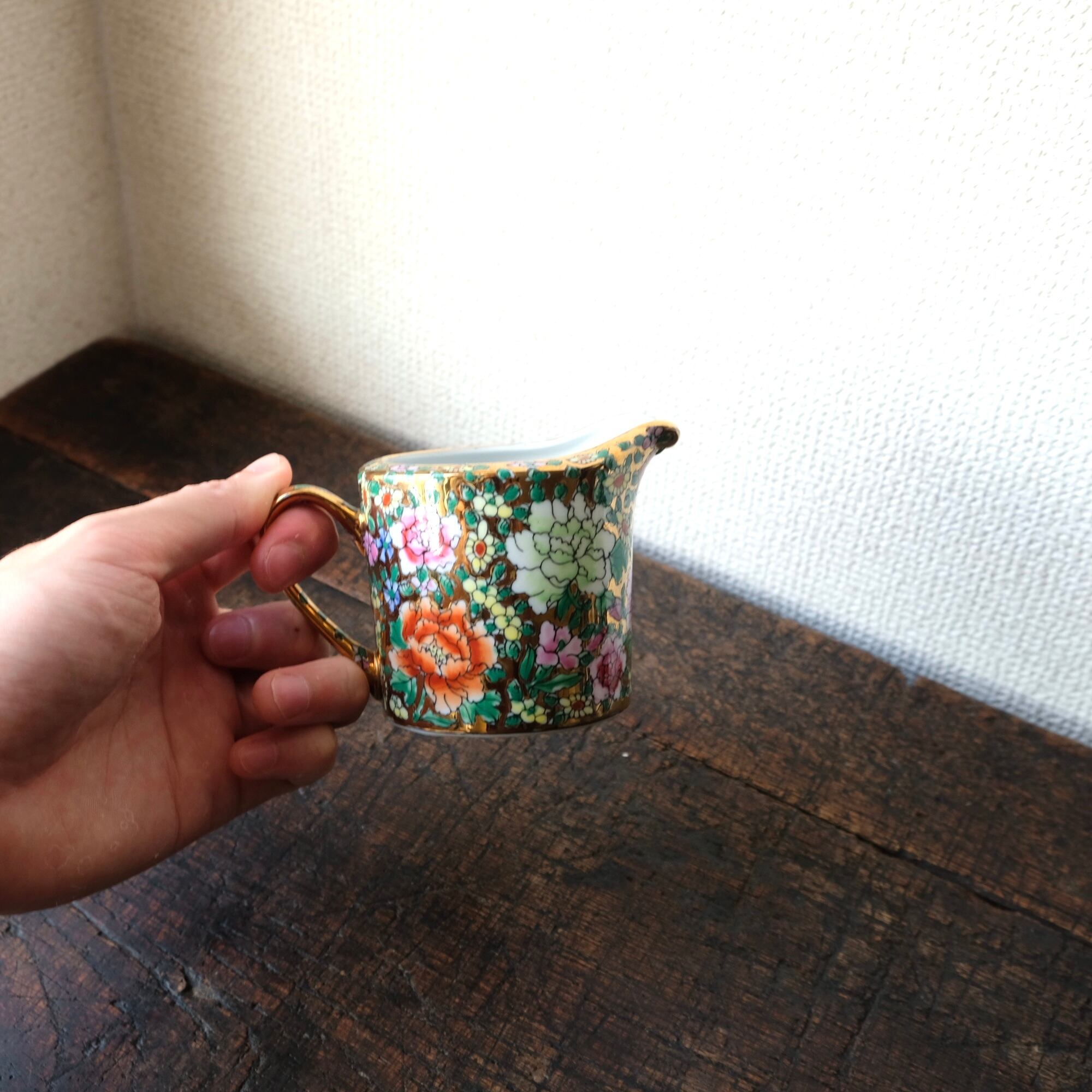 金にカラフルな花尽くし◇中国廣彩 色絵金彩 ミルクポット ミルクピッチャー チャイナレトロ シノワズリ ゴールド