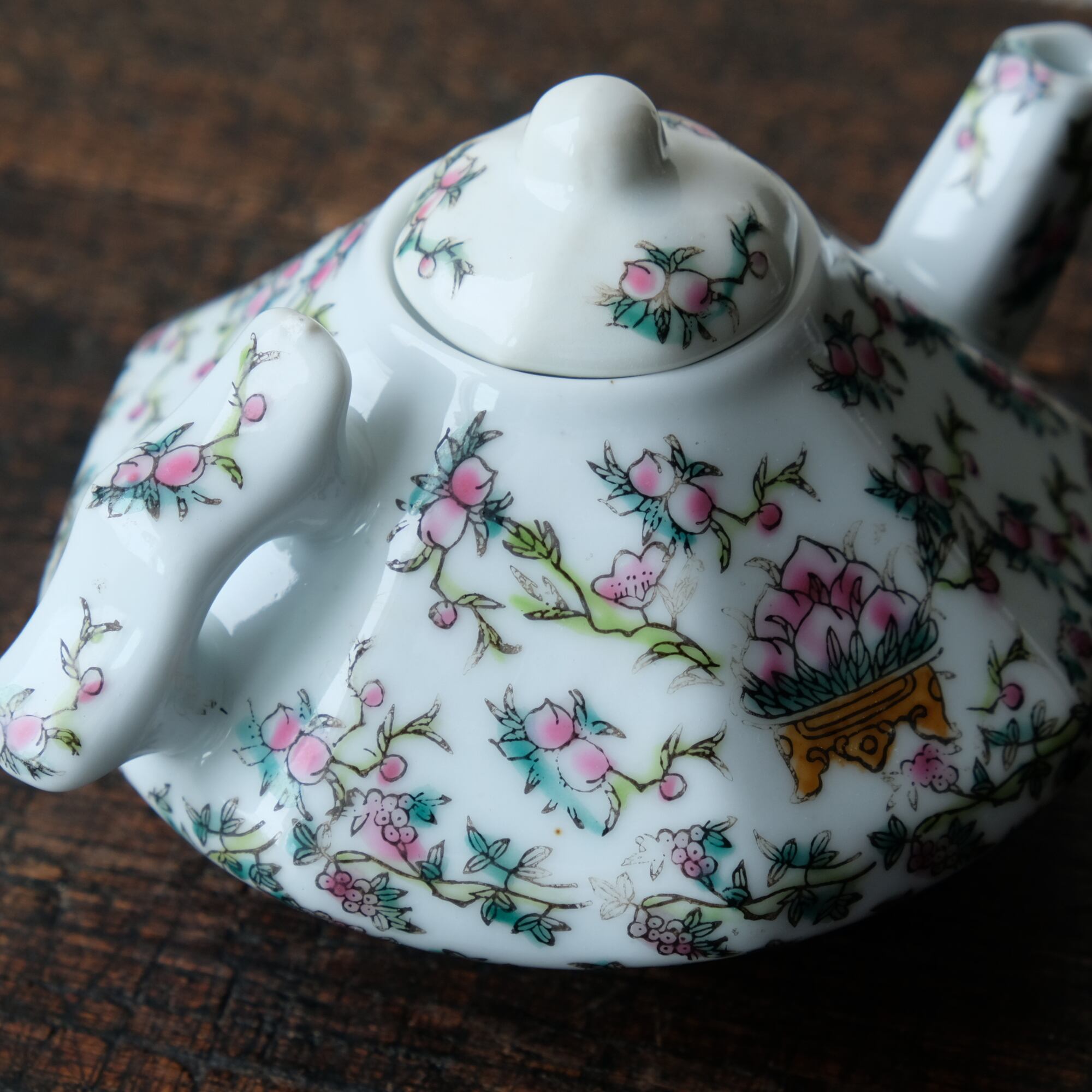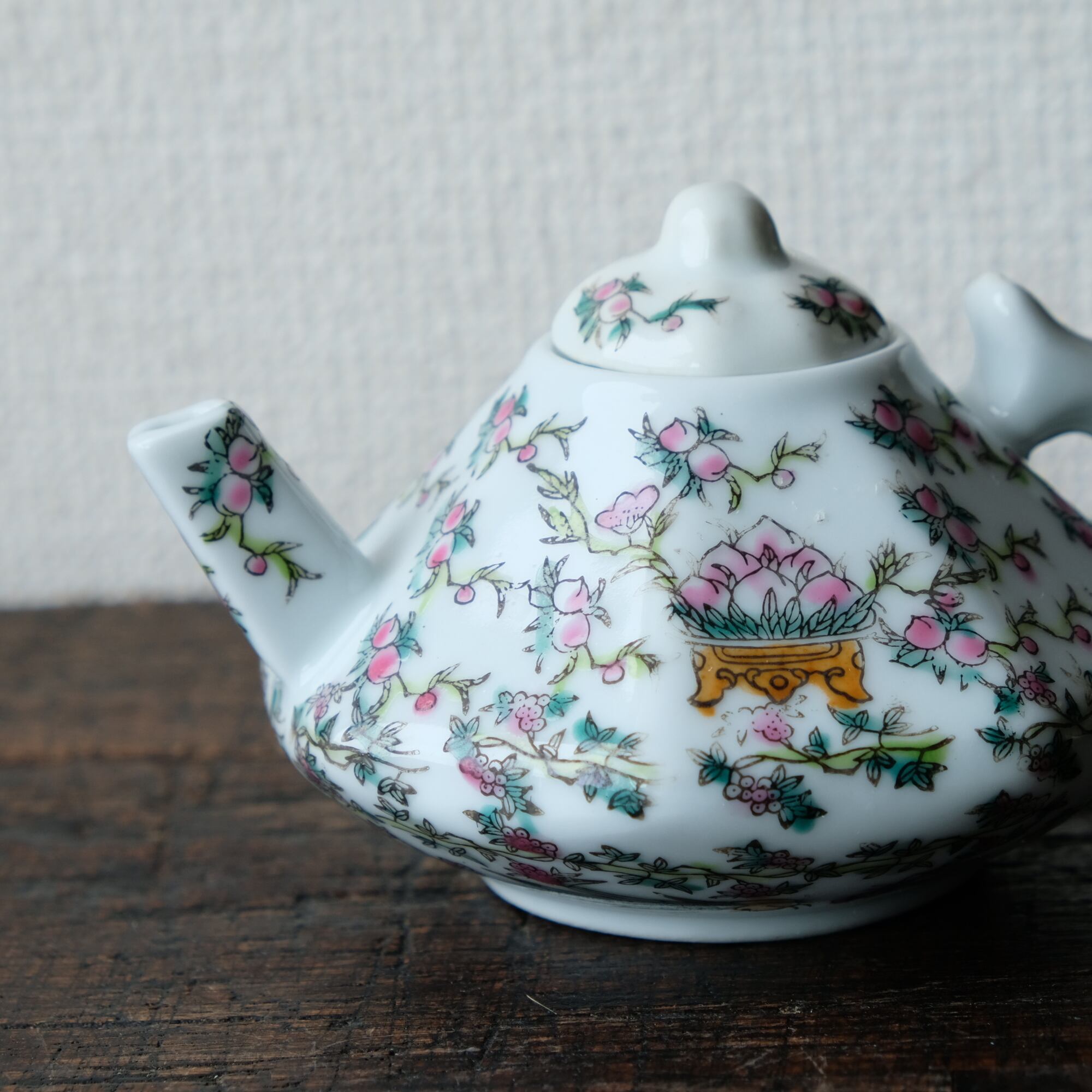 桃尽くし◇中国産 色絵小ぶり急須 茶器 暮らし チャイナレトロ インテリア 骨董好きにも。