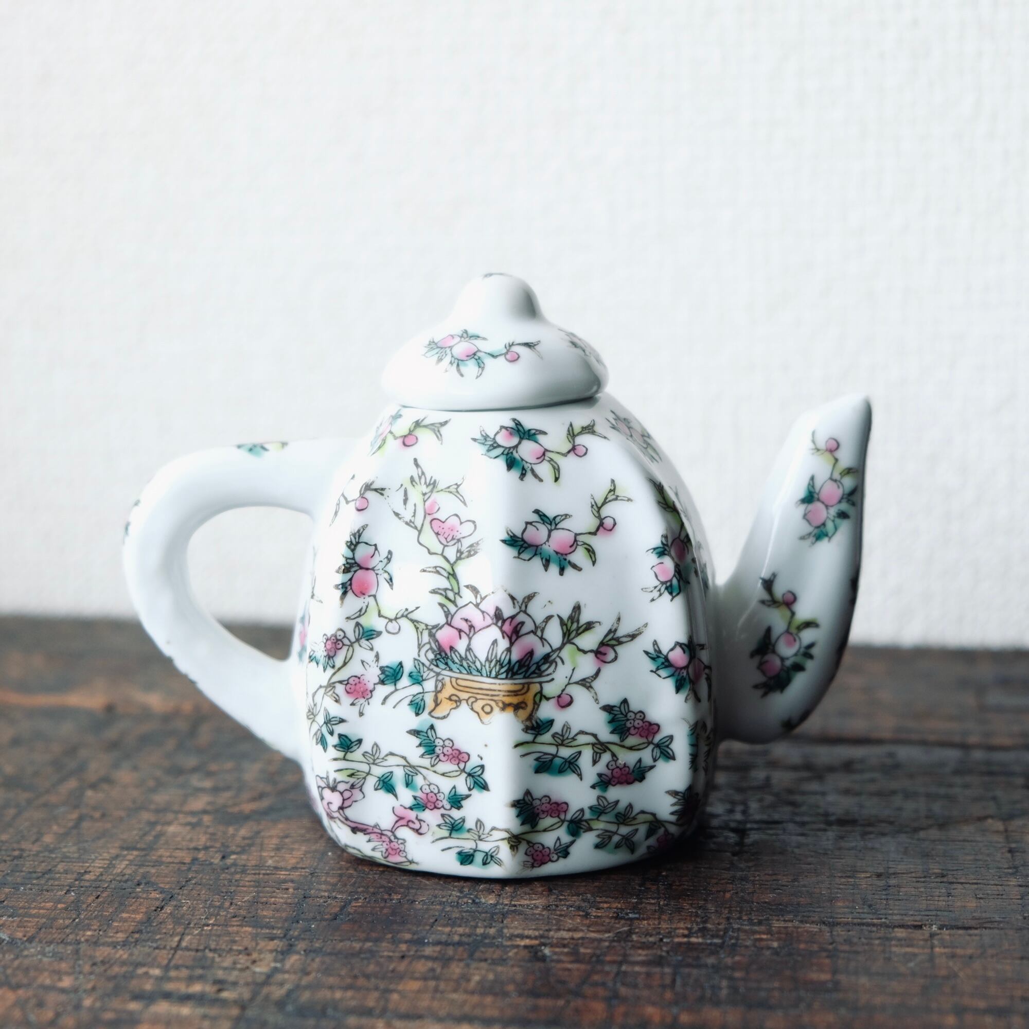 桃尽くし◇中国産 色絵小ぶり急須 茶器 暮らし チャイナレトロ インテリア 骨董好きにも。