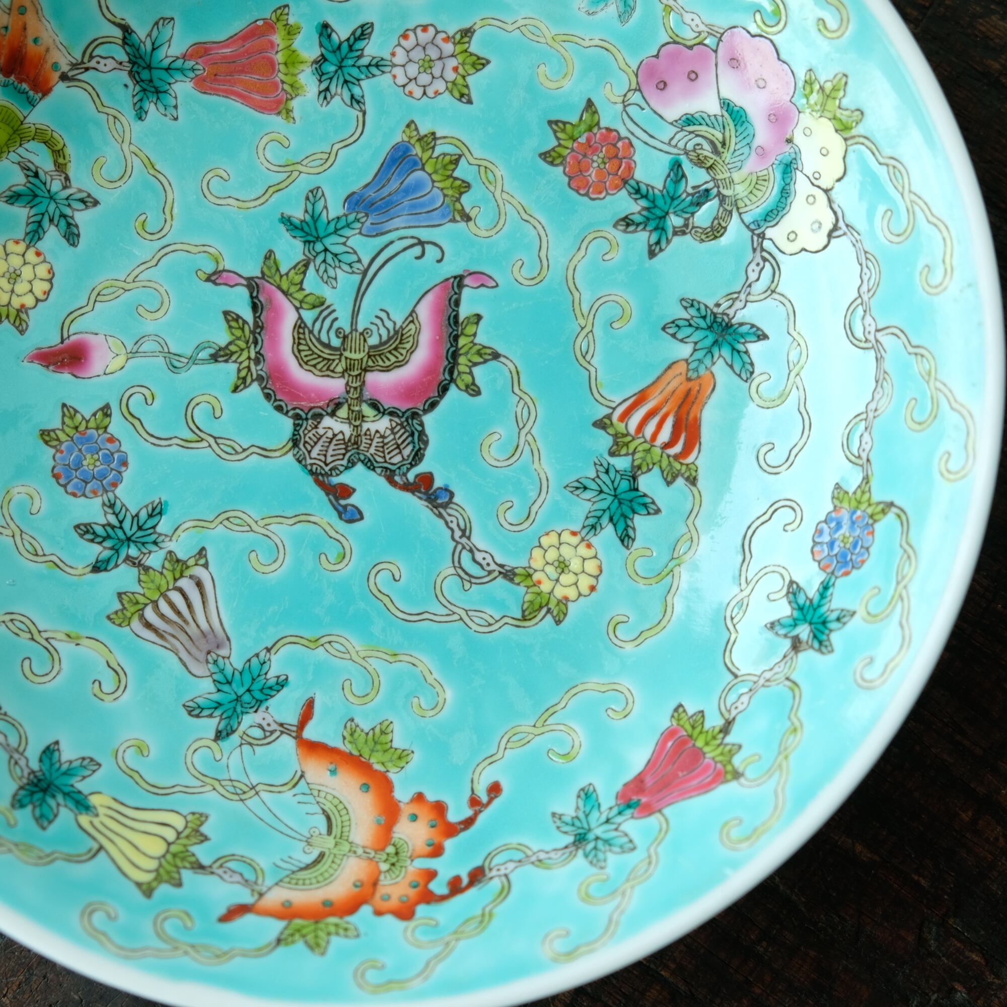 花唐草と蝶々◆中国景徳鎮 色絵深型中皿 器 チャイナレトロ ポップ お皿 シノワズリ