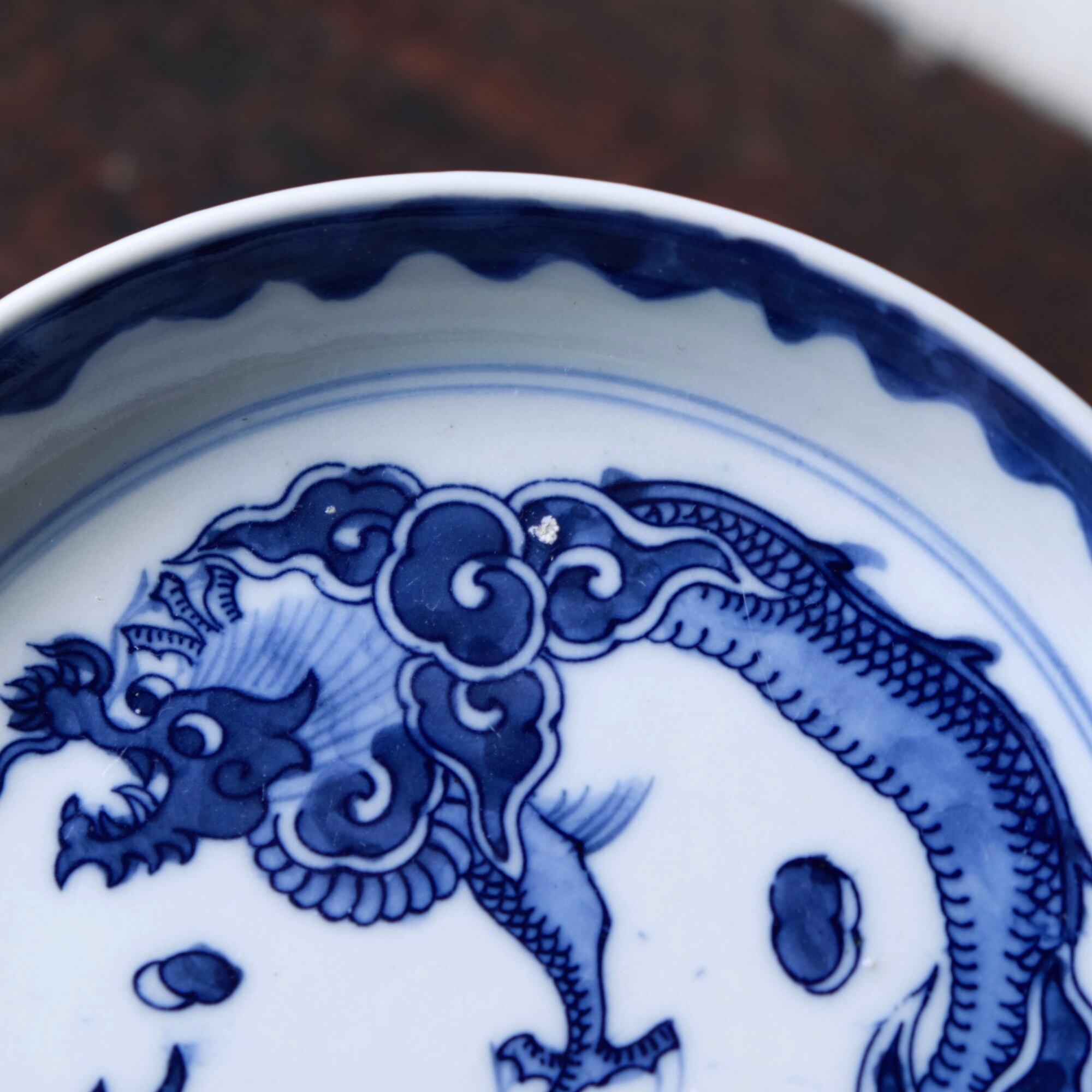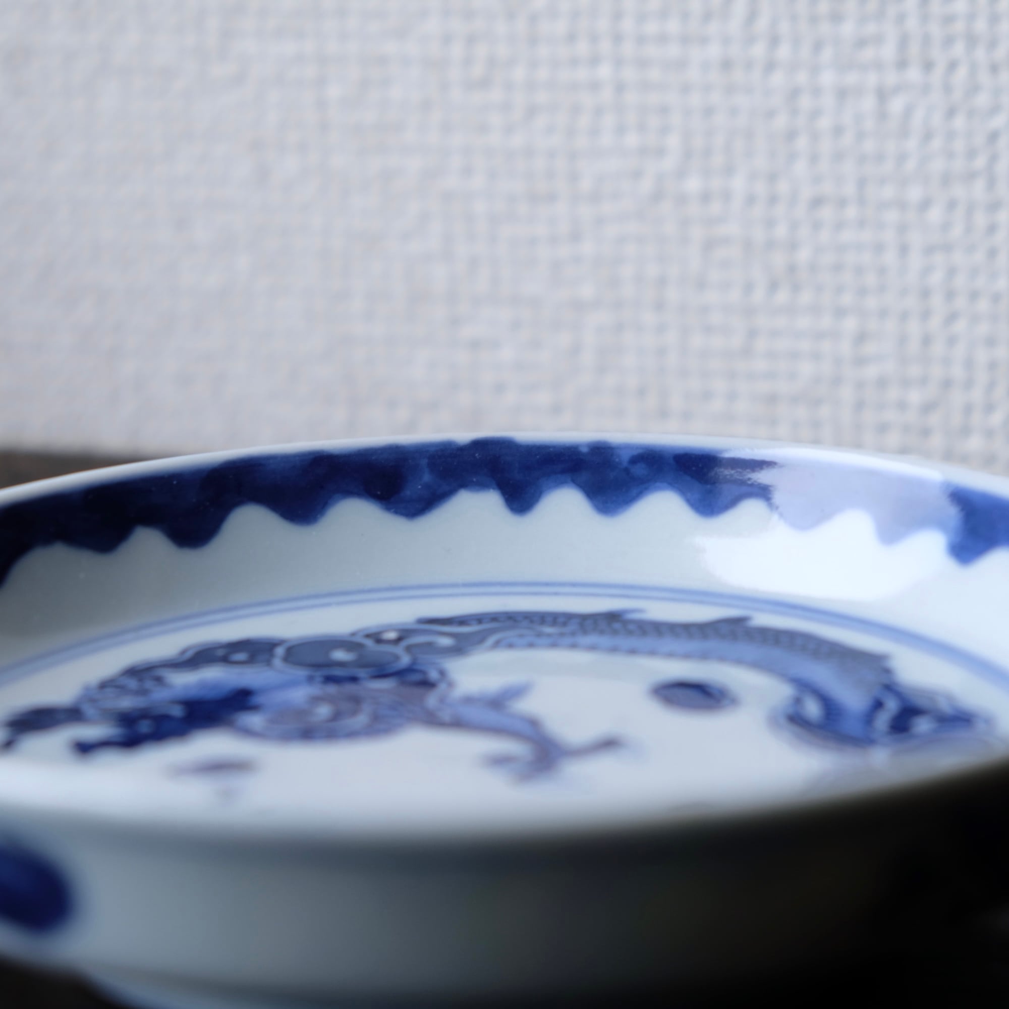 龍と雲◆伊万里 染付五寸中皿 骨董品・antiques 器 丁寧な暮らしに。角福 明治期