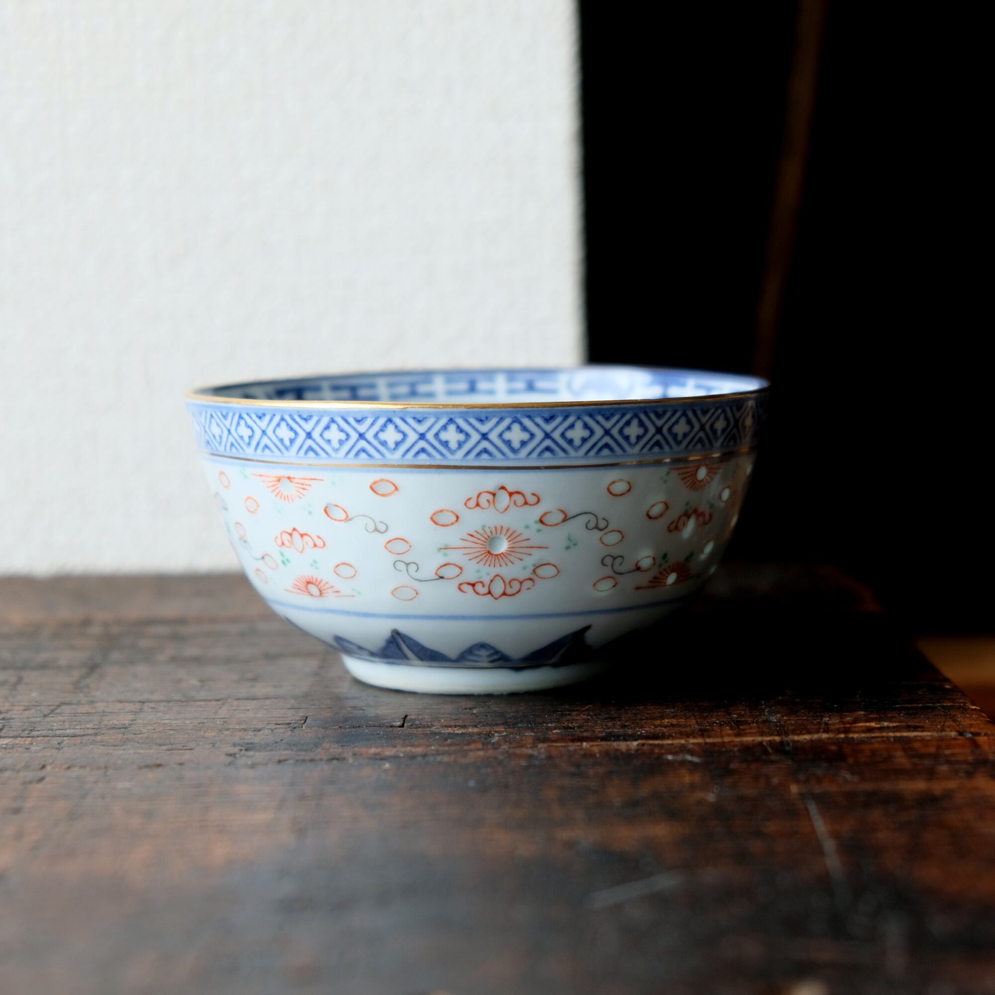 チャイナレトロで可愛い◇見込みに龍。中国景徳鎮 赤絵金彩碗 飯碗 スープ碗 シノワズリ ニュートロ