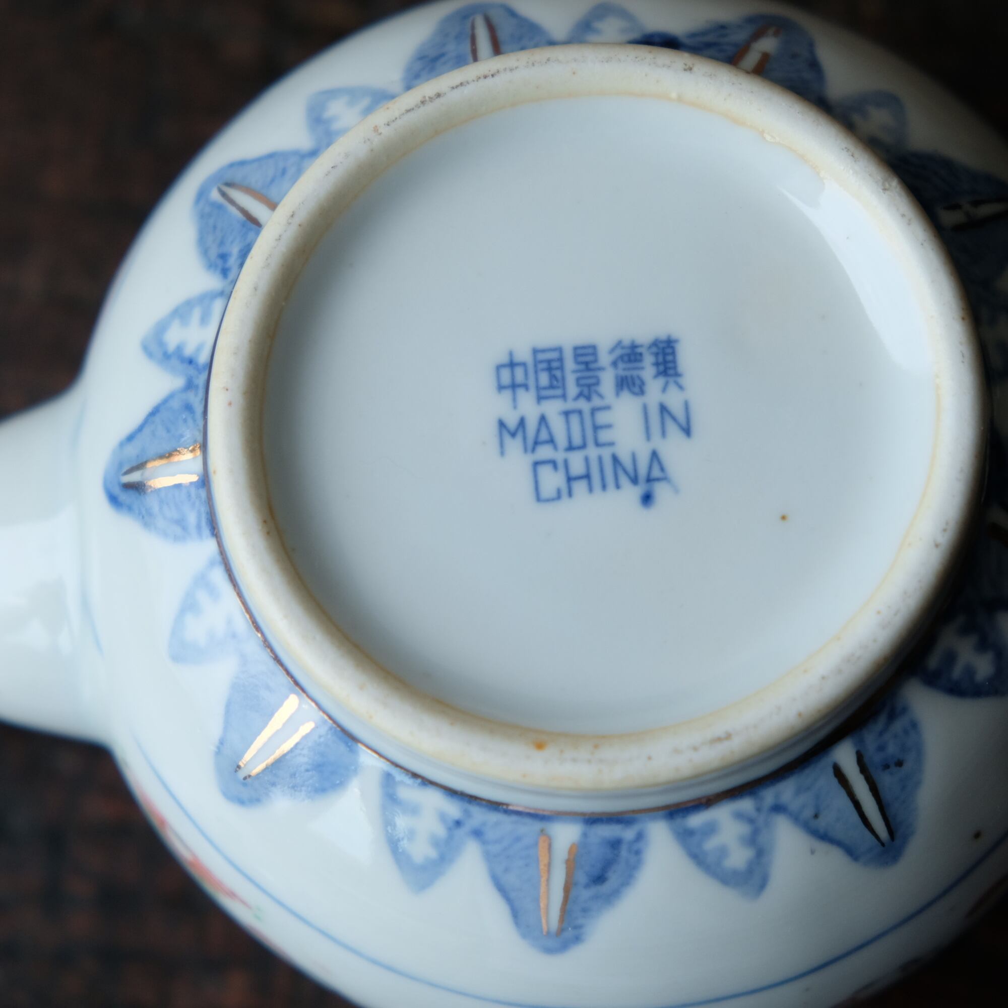 チャイナレトロで可愛い◇中国景徳鎮 蛍焼 赤絵金彩急須 花文様 茶器 シノワズリ #1