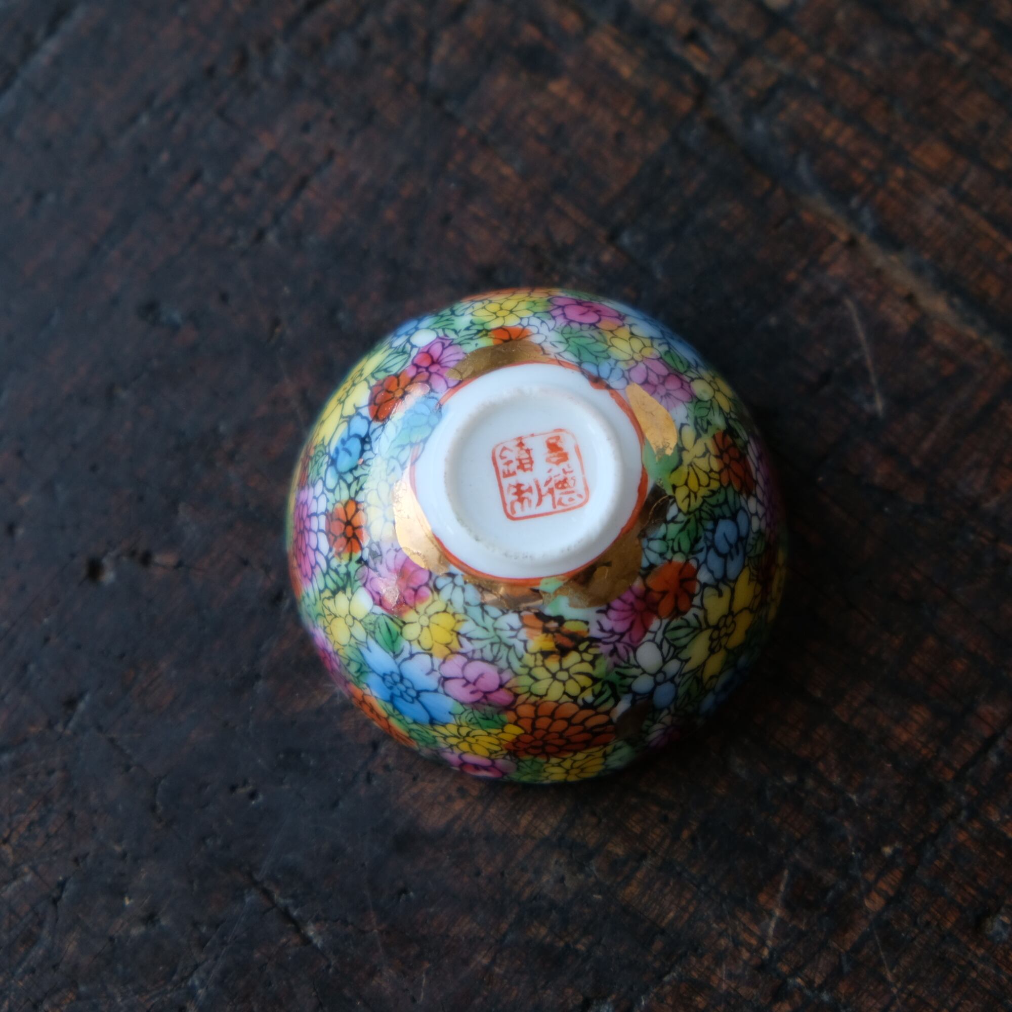 見込みに葡萄◇カラフルな花尽くし。中国景徳鎮 チャイナレトロ 色絵金彩小ぶり猪口 シノワズリ