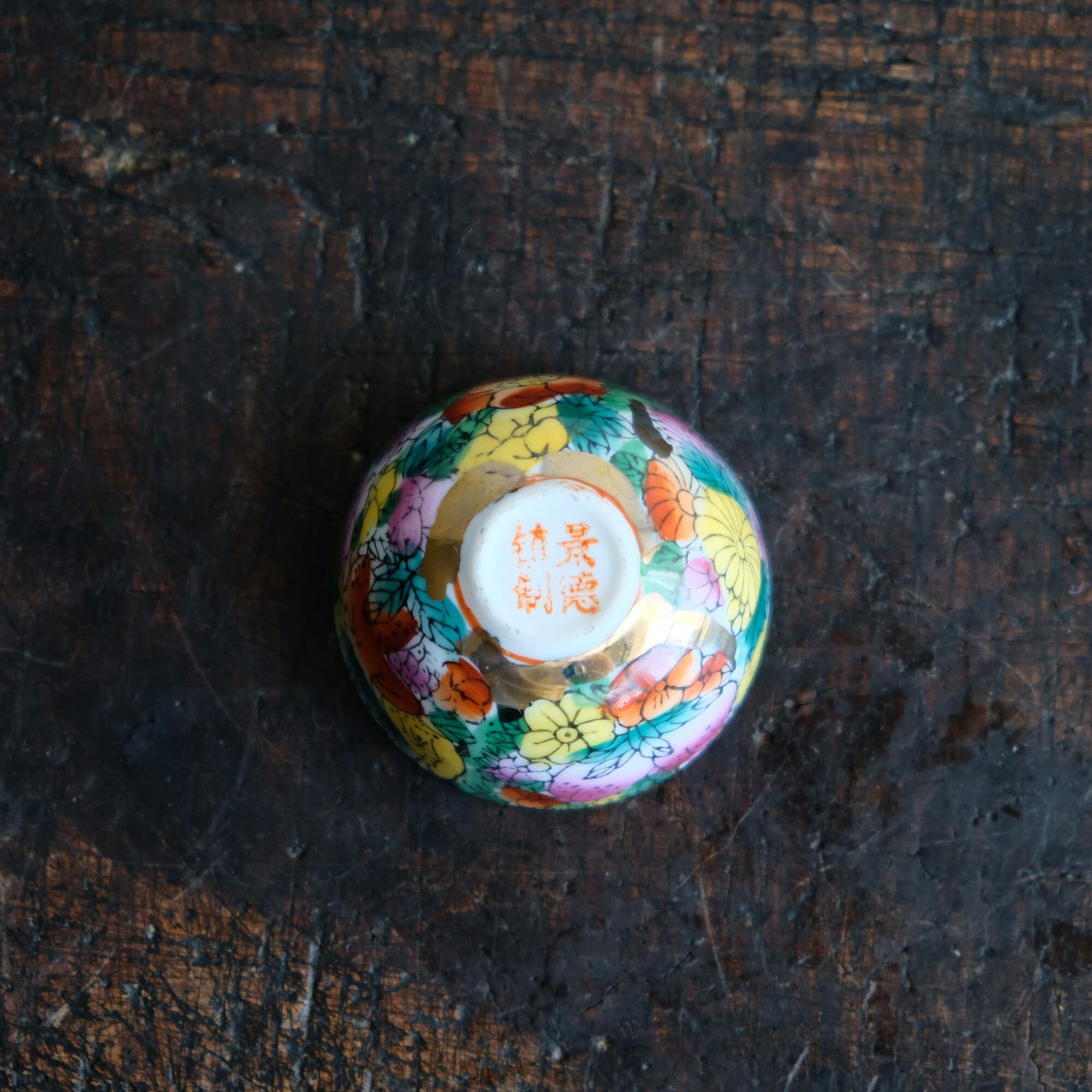 見込みに皇女◆カラフルな花と果実。中国景徳鎮 チャイナレトロ 色絵金彩小ぶり猪口 シノワズリ B