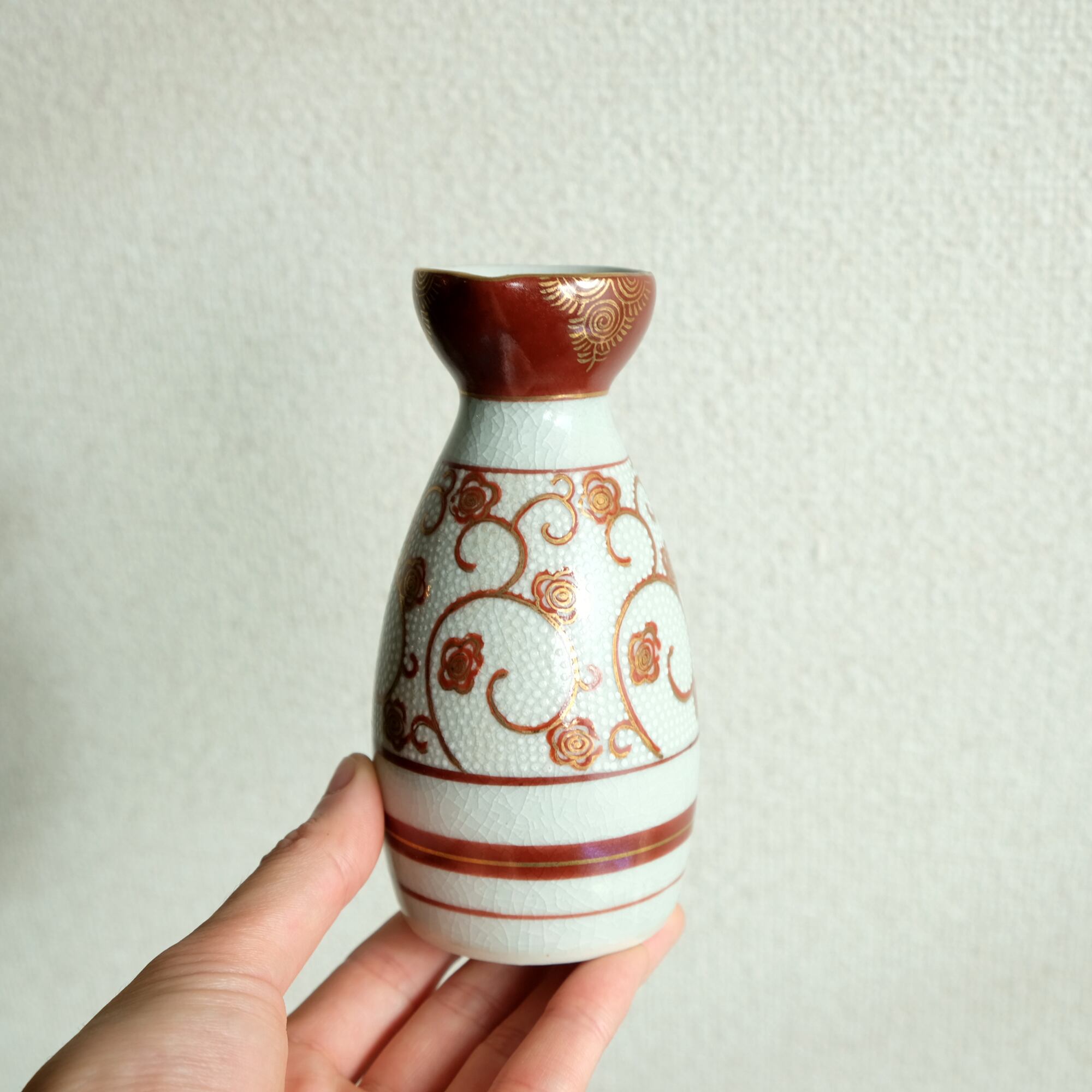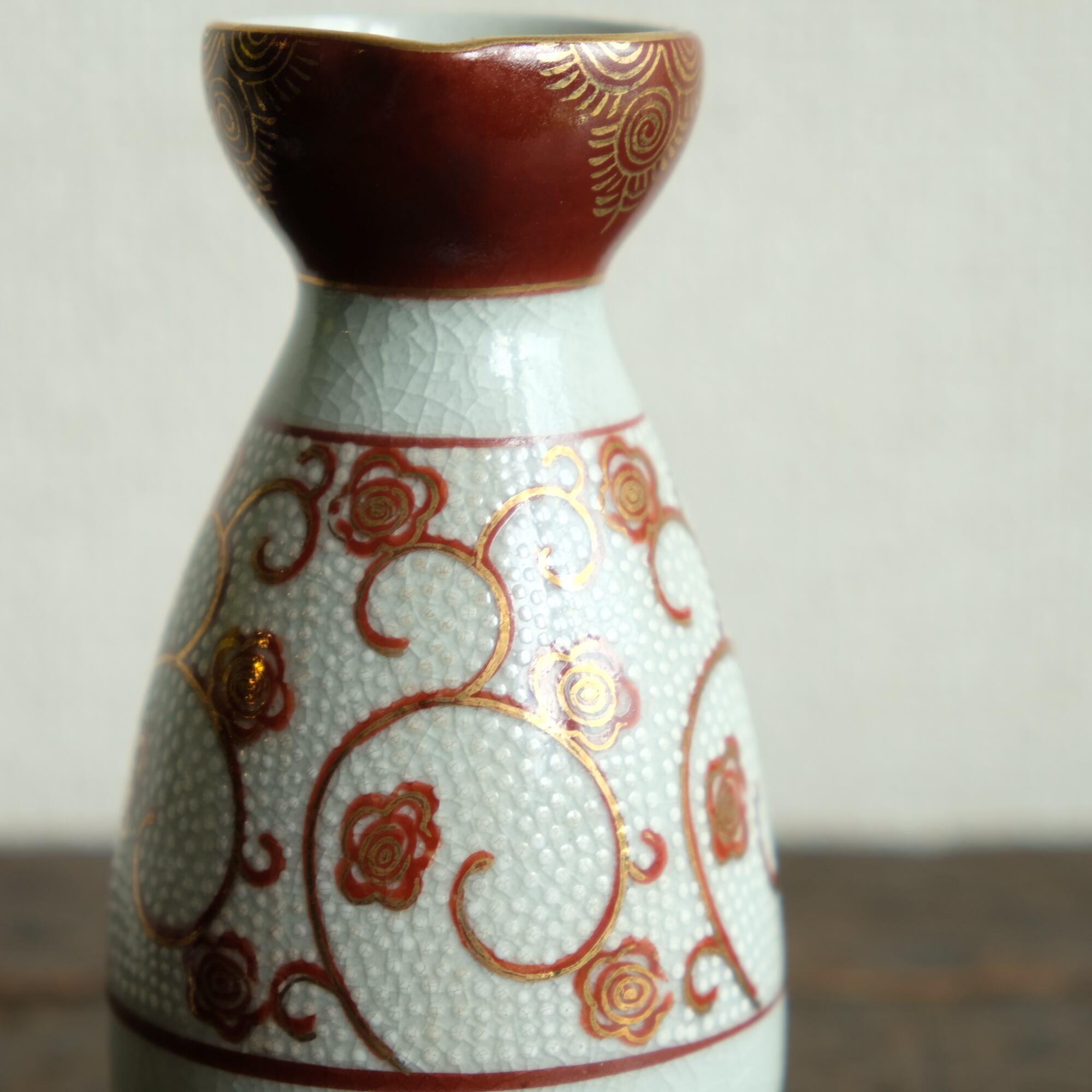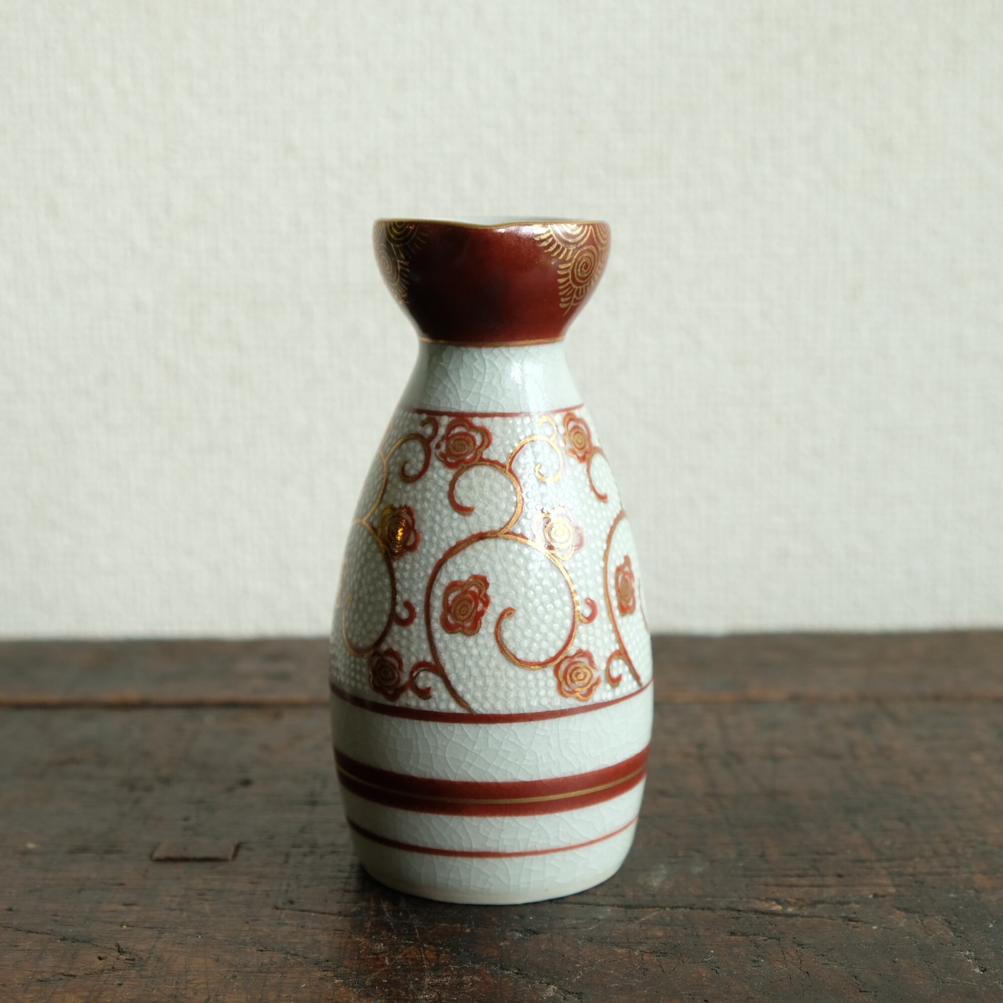 白粒と花唐草で素敵◇九谷焼 白粒金彩徳利 酒器 インテリア 昭和レトロ 骨董好きにも。
