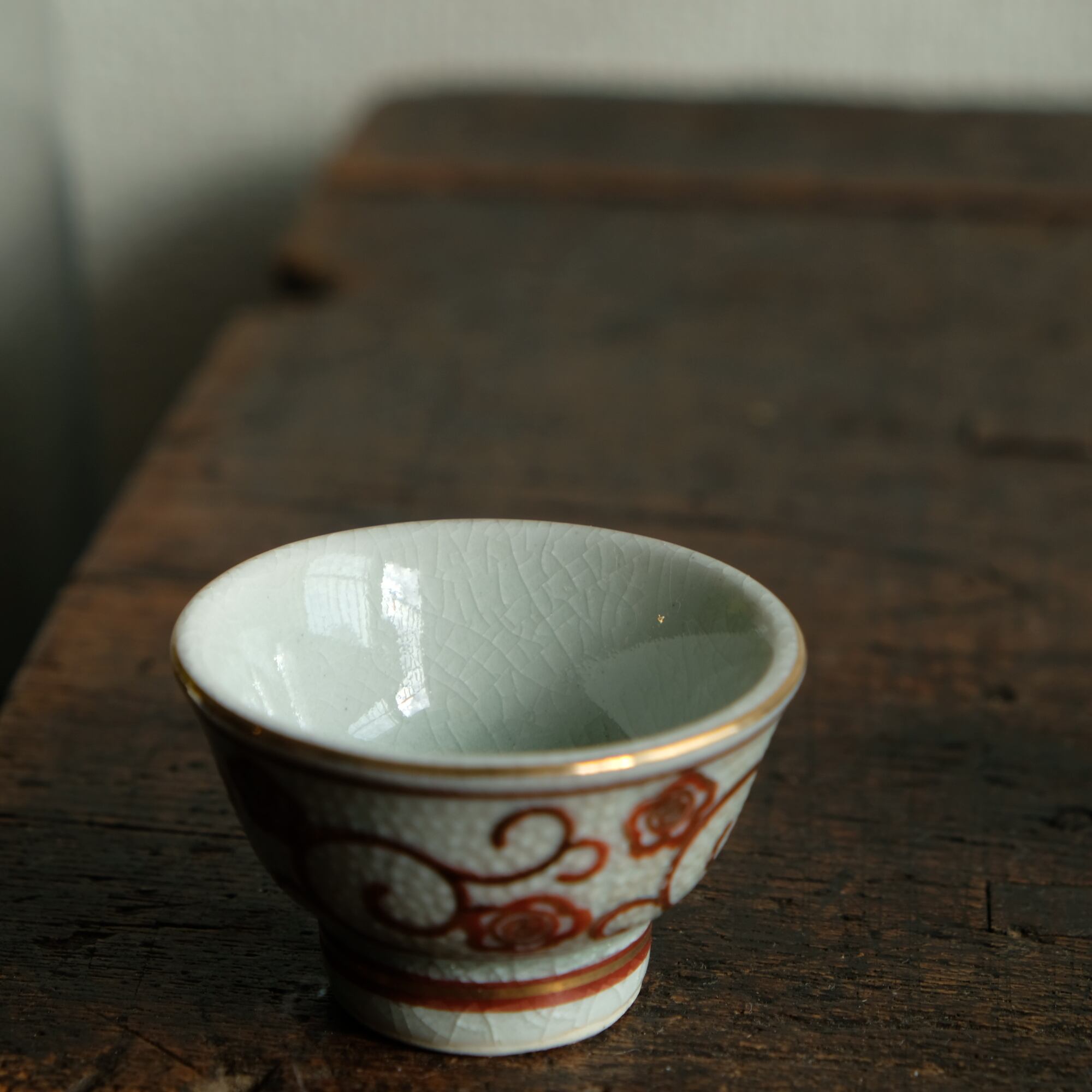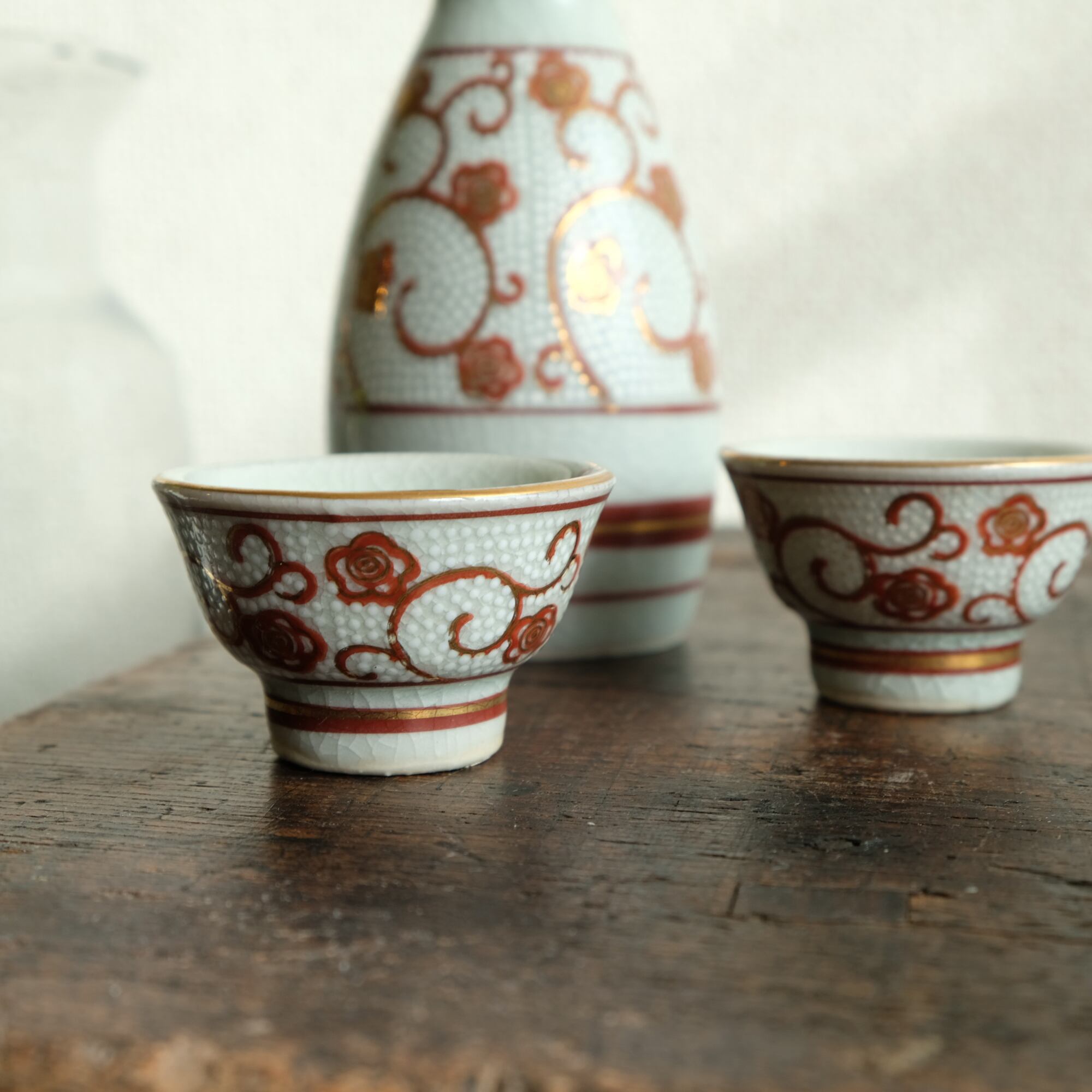 白粒と花唐草で素敵◇九谷焼 白粒金彩猪口 酒器 インテリア 昭和レトロ 骨董好きにも。
