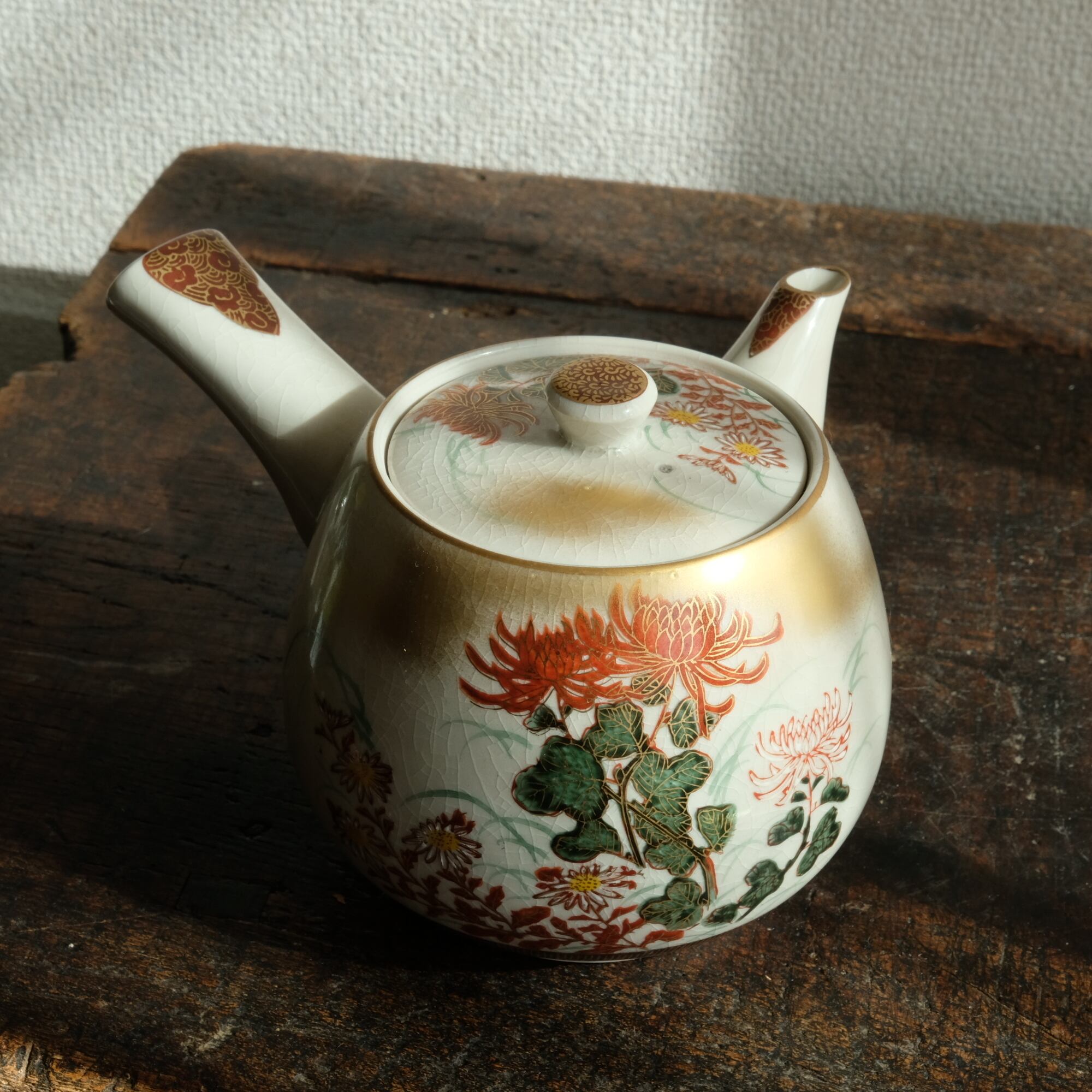 赤い芍薬が素敵◆九谷焼 色絵金彩急須 丁寧な暮らしに。茶器 昭和レトロ 工芸品 暮らしに。