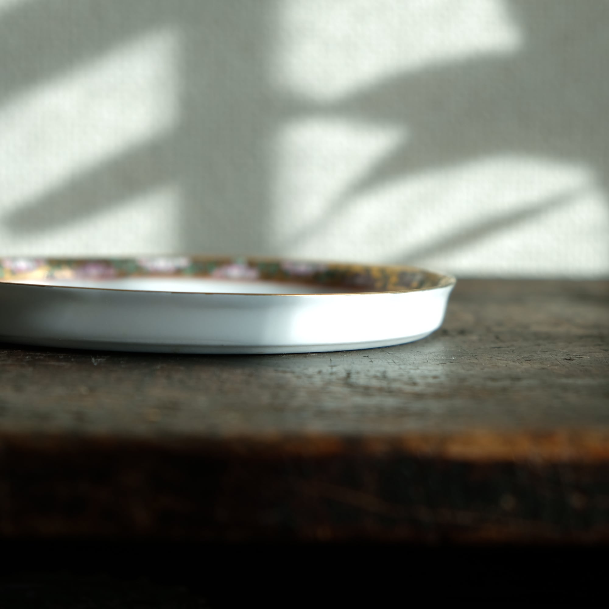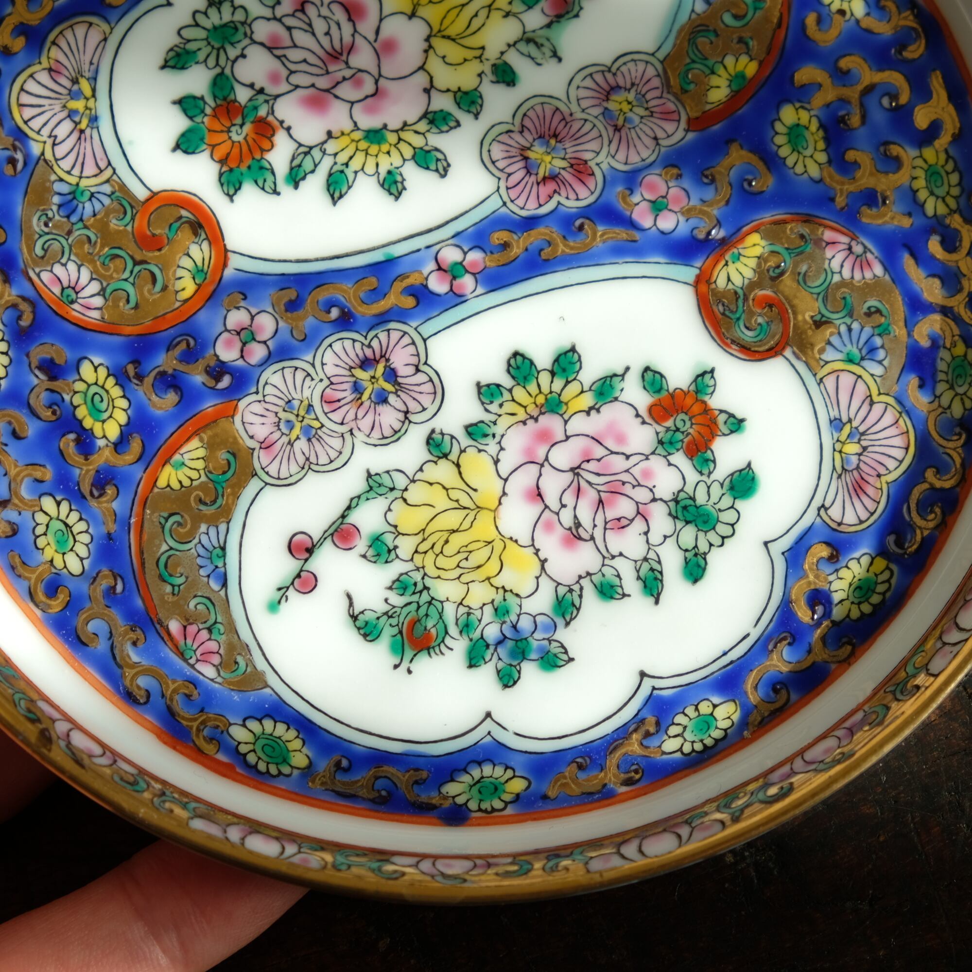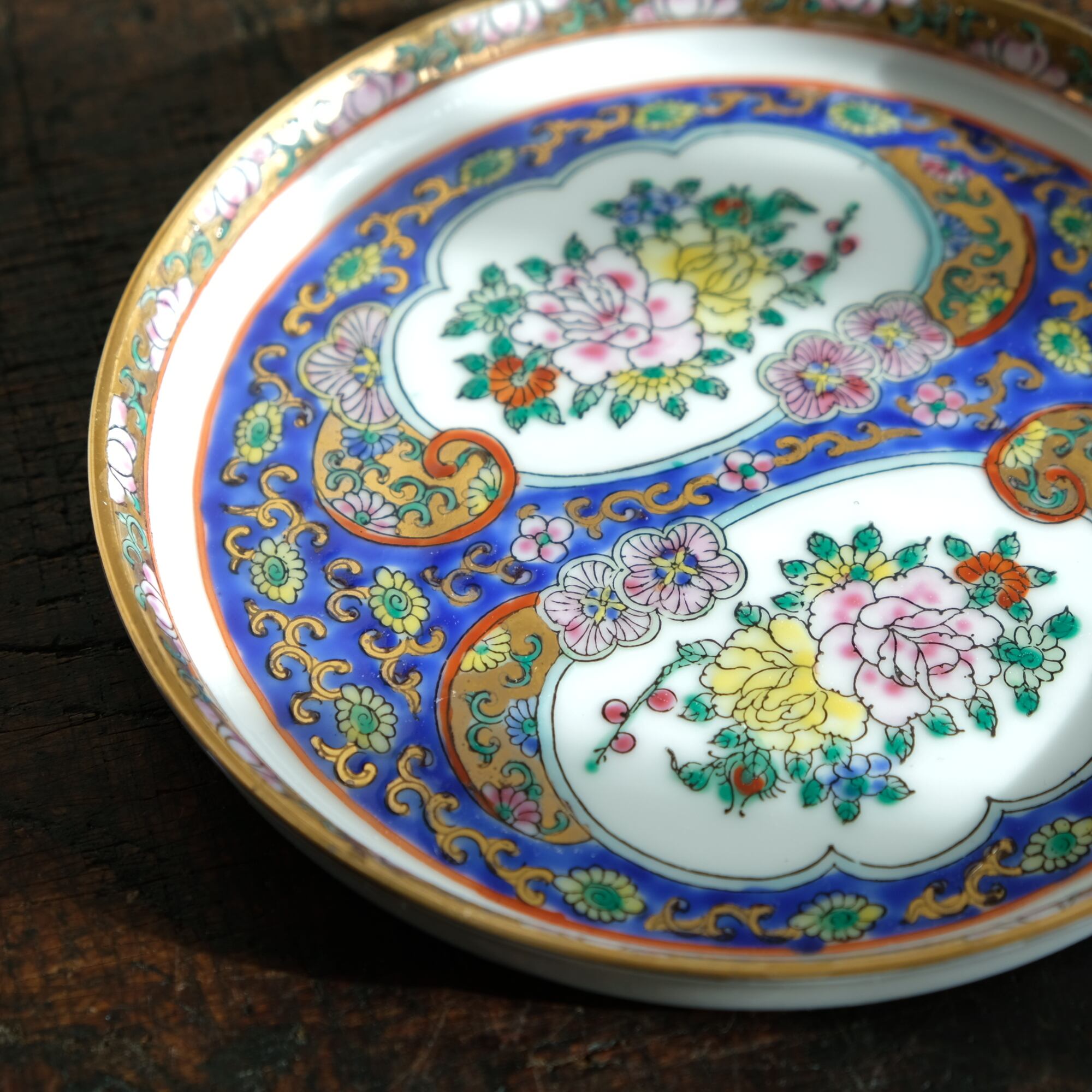 ゴージャスな金の唐草◆中国産 色絵金彩中皿プレート 器 青 チャイナレトロ シノワズリ ブルー #1
