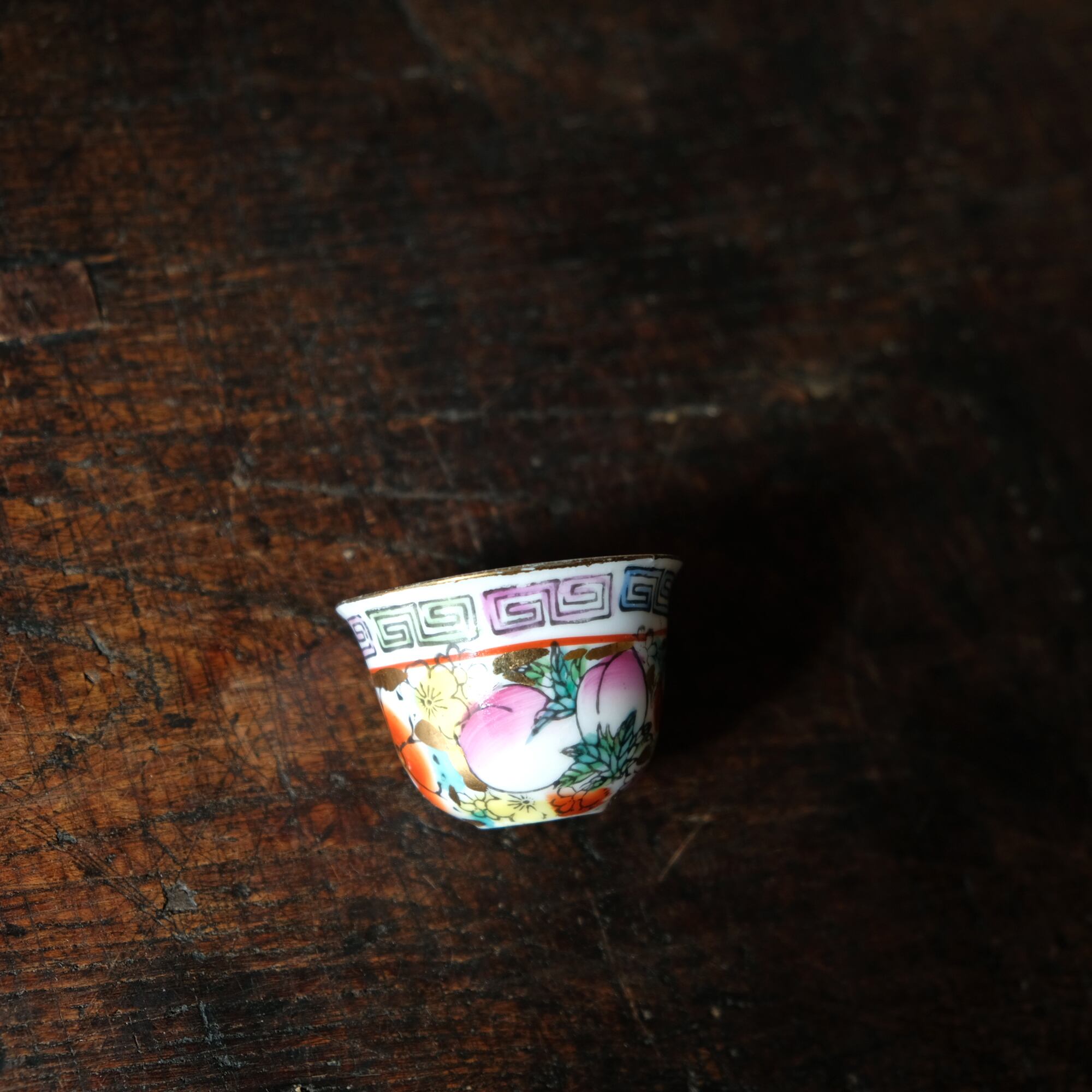カラフルな花と果実◆中国産 色絵金彩小ぶり猪口 茶杯 煎茶茶器 器 シノワズリ