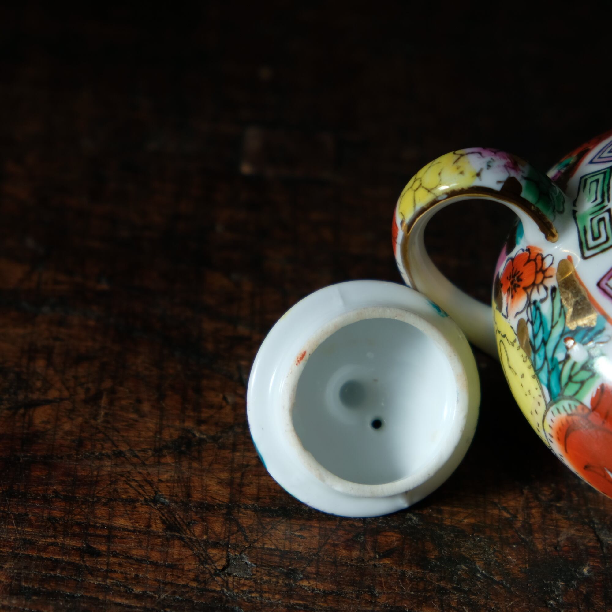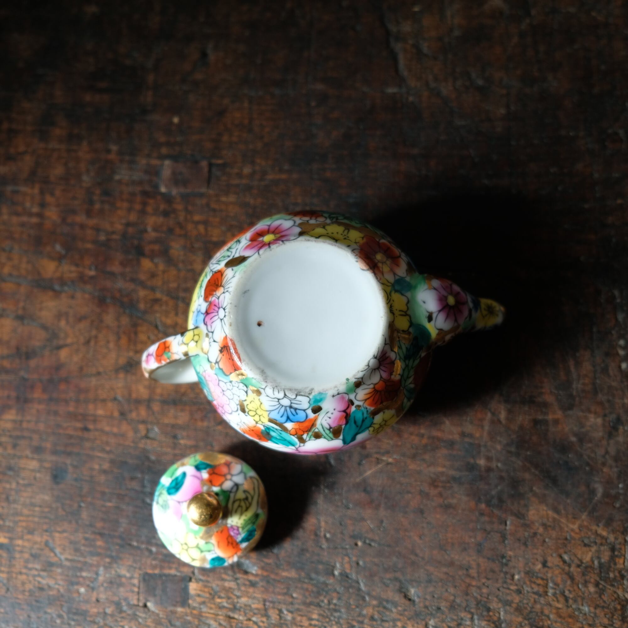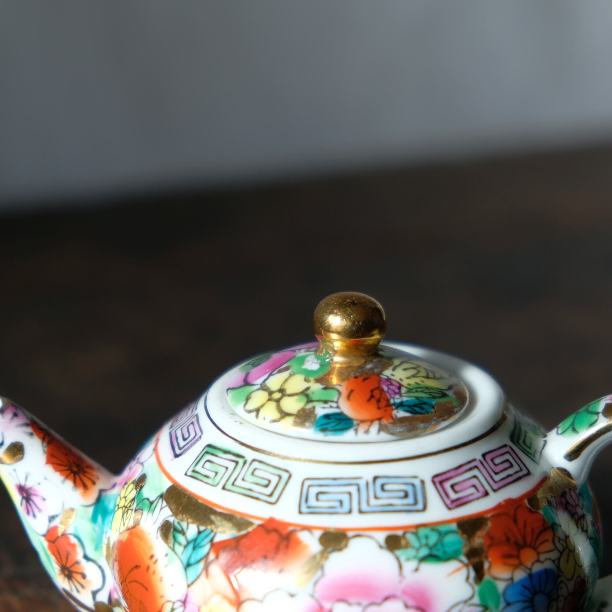 カラフルな花や果実◆中国産 色絵金彩小ぶり急須 煎茶茶器 チャイナレトロ インテリア シノワズリ