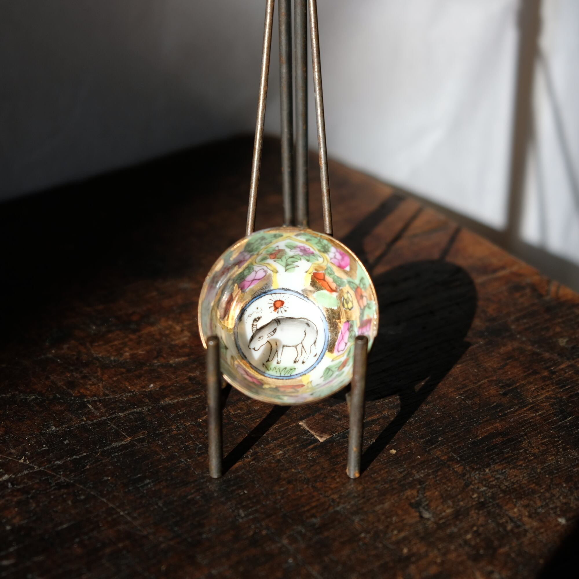 見込みに丑(牛)◆チャイナレトロで可愛い。中国景徳鎮 干支 色絵金彩小ぶり猪口 花尽くし シノワズリ